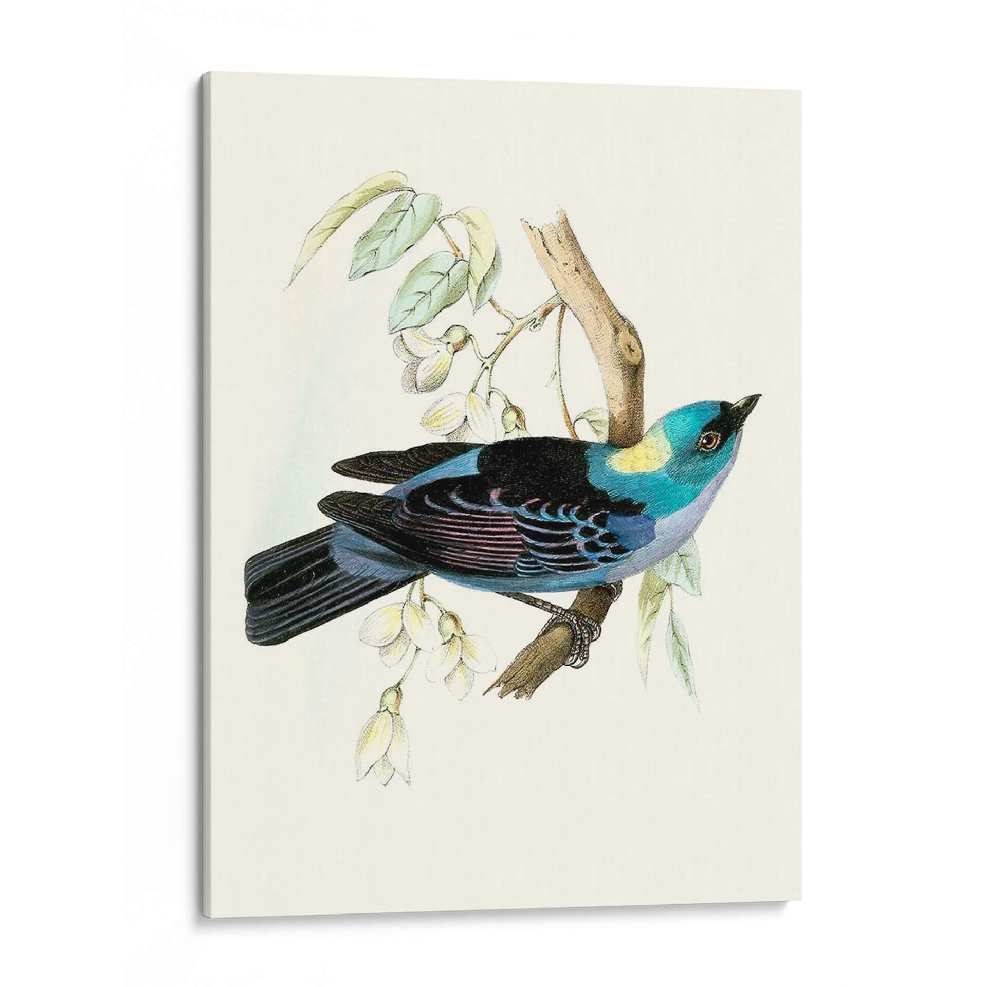 Este exquisito cuadro decorativo, titulado 'En Perch Vii', captura la majestuosidad de la naturaleza con un enfoque detallado en un ave exótica posada en una rama florida. La obra presenta una paleta de colores vibrantes, dominada por azules intensos y negros profundos en el plumaje del ave, contrastando elegantemente con los tonos verdes suaves de las hojas y los delicados pétalos de flores blancas o amarillentas. La composición, que evoca el estilo de las ilustraciones científicas clásicas, se centra en el ave con una precisión que resalta su belleza natural y sus intrincados detalles, como las plumas texturizadas y el brillo en su ojo. El fondo neutro y luminoso permite que el sujeto principal sea el protagonista, creando una sensación de calma y admiración. Este cuadro decorativo es una pieza ideal para añadir un toque de vida y color a cualquier espacio, ya sea una sala de estar moderna, un estudio tranquilo o un dormitorio sereno. Su estilo atemporal y la representación realista pero artística del ave lo convierten en un punto focal encantador que atraerá todas las miradas y generará conversaciones. Transforma tu hogar con esta representación artística que celebra la belleza de la fauna y la flora, aportando una atmósfera de serenidad y elegancia natural a tu decoración.