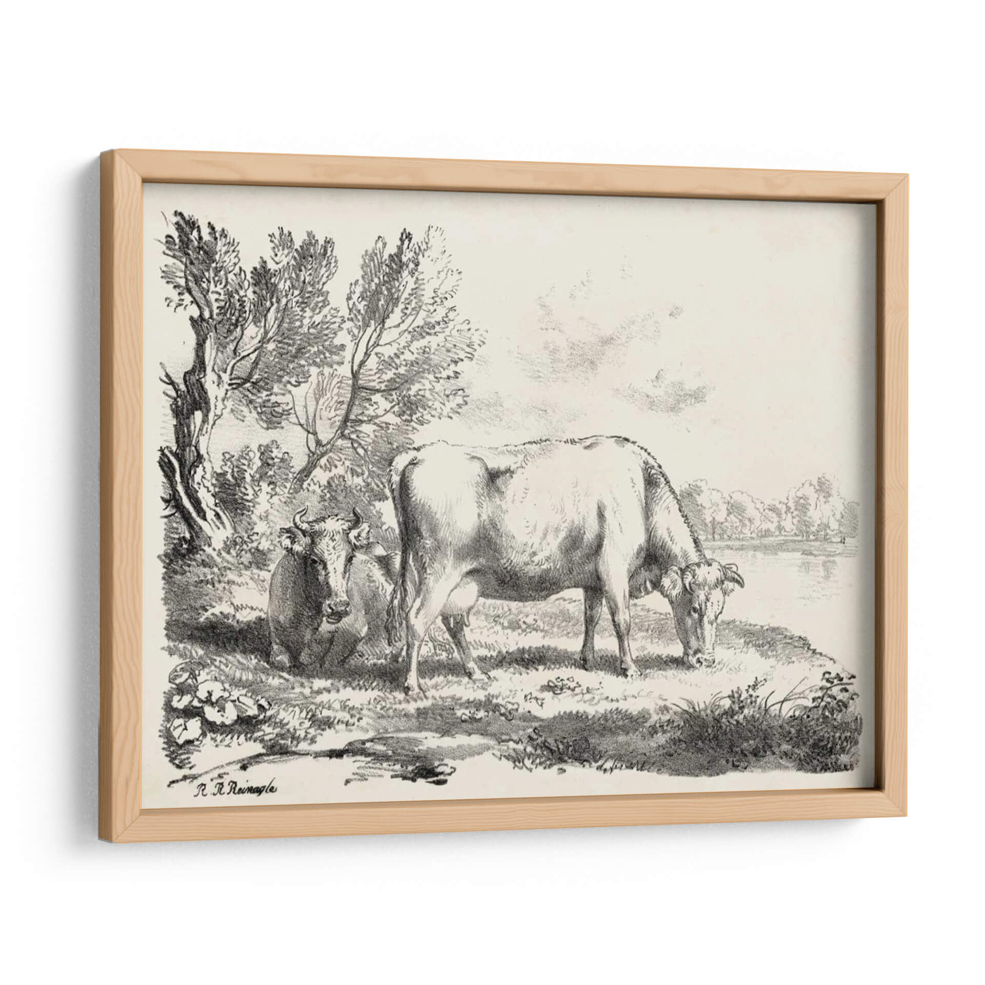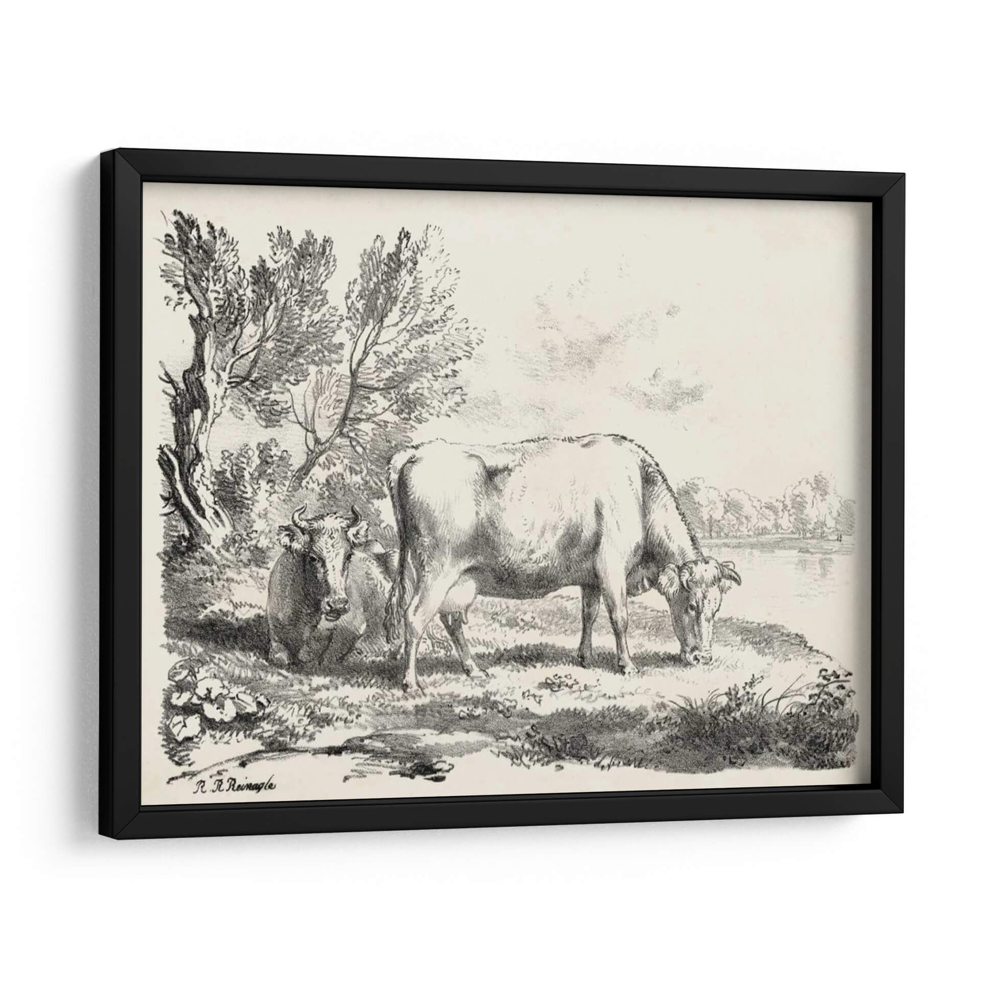 Este encantador cuadro decorativo "Encantos Rurales III" captura la serenidad de la vida campestre con un estilo que evoca la delicadeza del dibujo a lápiz y el grabado clásico. La obra presenta dos vacas en un prado idílico, una pastando tranquilamente junto a un cuerpo de agua y la otra recostada a la sombra de un árbol frondoso. La paleta de colores se centra en una gama de grises y blancos, creando una atmósfera de calma y nostalgia, ideal para espacios que buscan un toque de paz y conexión con la naturaleza. La composición, equilibrada y detallada, invita a la contemplación, resaltando la textura del pasto, las siluetas de los árboles y la forma de los animales con trazos finos y expresivos. Este cuadro decorativo es perfecto para añadir un aire de sofisticación rústica a salones, comedores o incluso estudios y oficinas que deseen un ambiente relajado y estético. Su diseño atemporal lo convierte en una pieza versátil, capaz de complementar tanto decoraciones tradicionales como modernas, aportando una sensación de tranquilidad y belleza natural a cualquier ambiente.