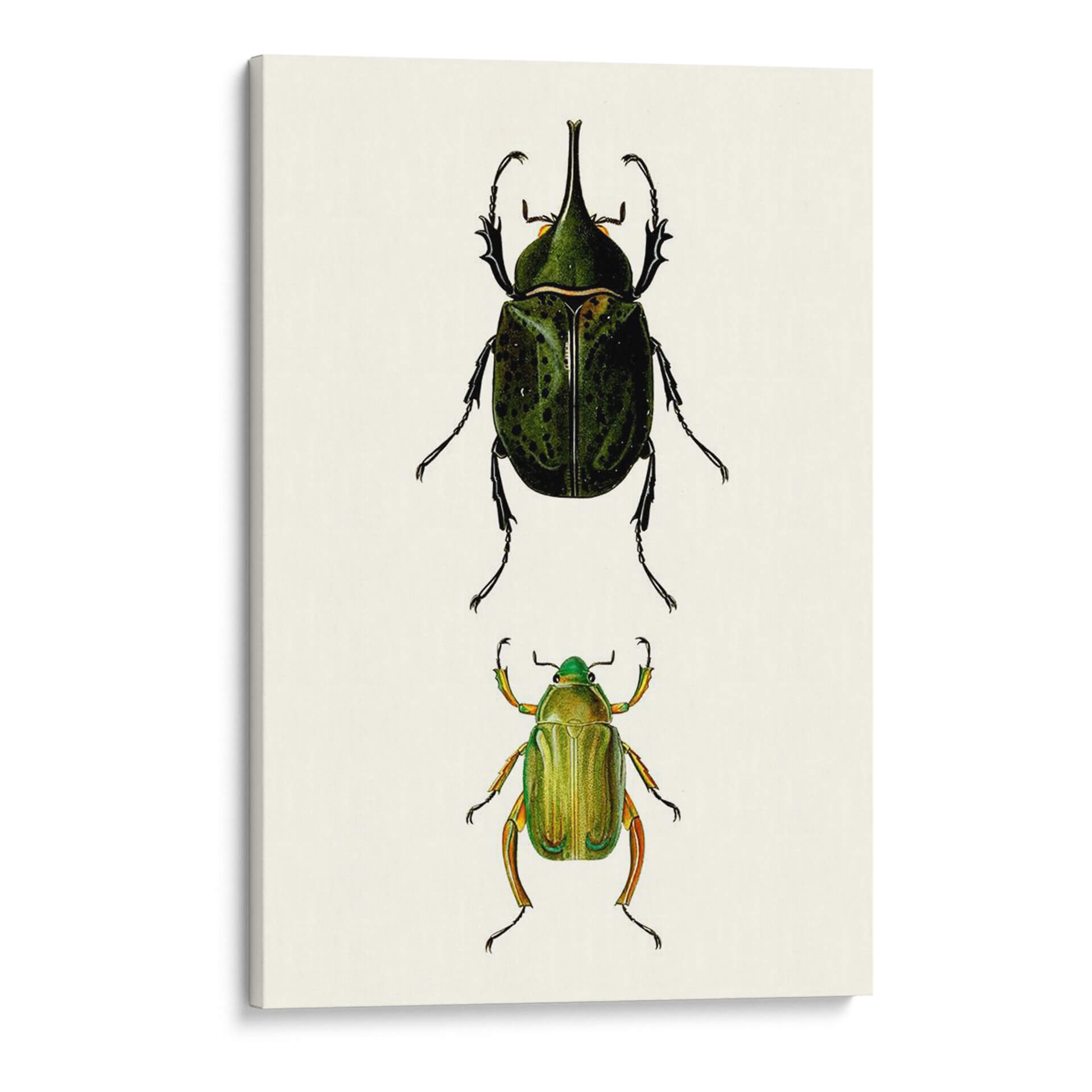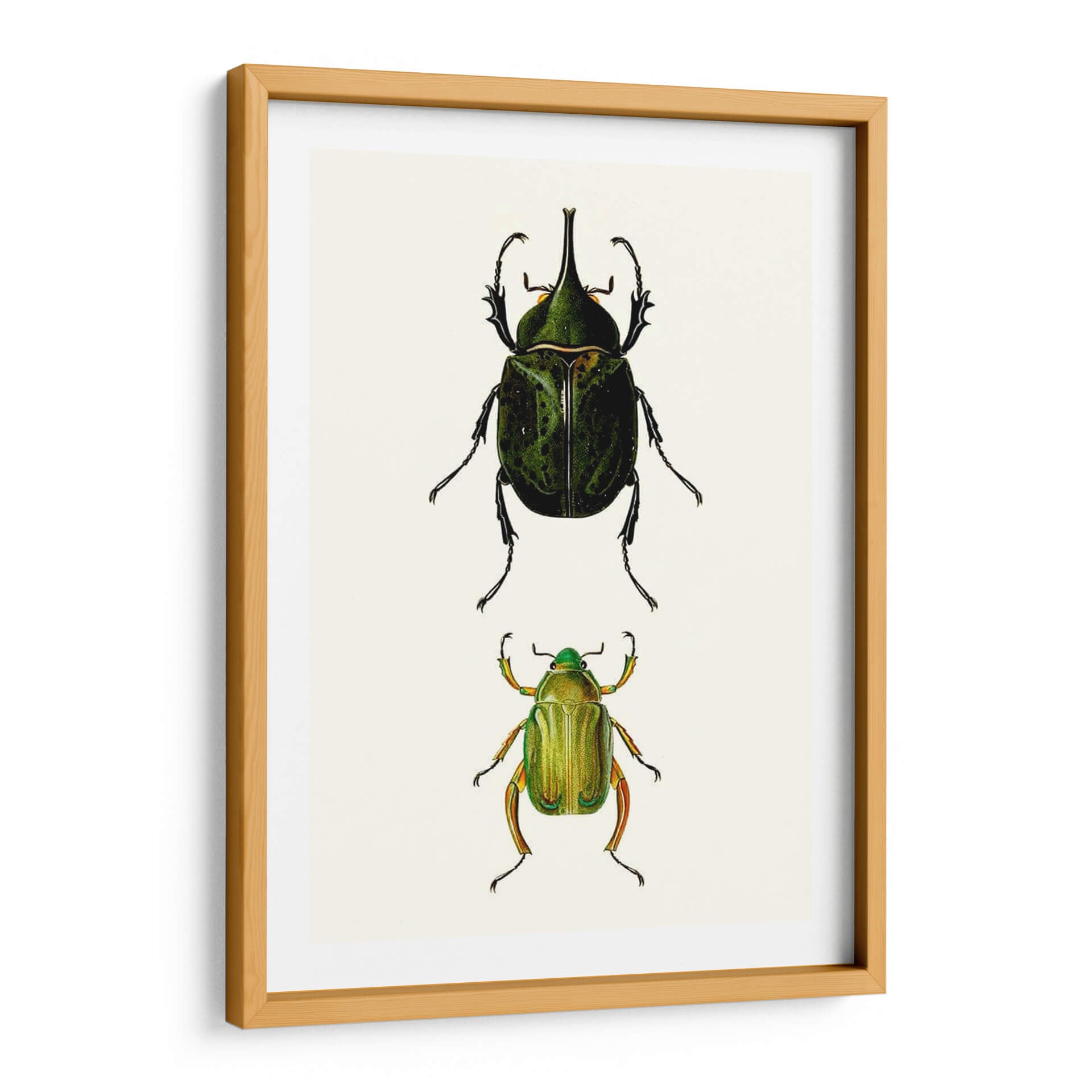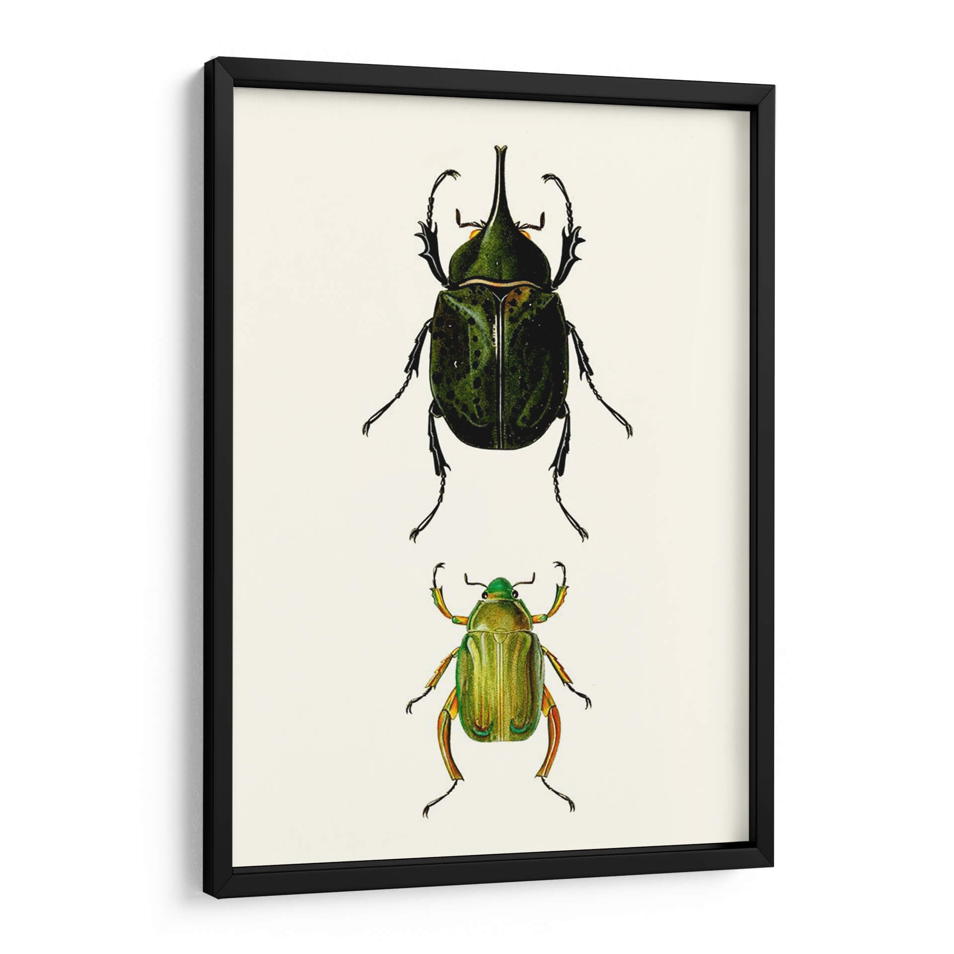 Sumérgete en el fascinante mundo de la entomología con esta cautivadora obra de arte que presenta dos escarabajos detalladamente ilustrados. El diseño, inspirado en grabados clásicos, evoca una sensación de curiosidad científica y apreciación por la naturaleza. La pieza central es un escarabajo robusto de un verde intenso y profundo, con un intrincado patrón en su caparazón y distintivas antenas, acompañado por un segundo escarabajo más pequeño de un vibrante tono verde lima con toques dorados y anaranjados en sus patas. Ambos insectos se presentan sobre un fondo neutro y claro, lo que permite que sus formas y colores resalten con elegancia. Este cuadro decorativo es perfecto para añadir un toque de sofisticación naturalista a cualquier espacio, ya sea una sala de estar moderna, un estudio o incluso una oficina. Su estilo retro y educativo lo convierte en una elección ideal para amantes de la ciencia, la historia natural o simplemente para aquellos que buscan una decoración de pared única y con carácter. La composición clara y simétrica de los insectos asegura una armonía visual que complementará diversos estilos decorativos, desde el clásico hasta el contemporáneo, aportando un aire de descubrimiento y belleza orgánico. Una pieza que invita a la contemplación y celebra la maravilla del mundo natural.