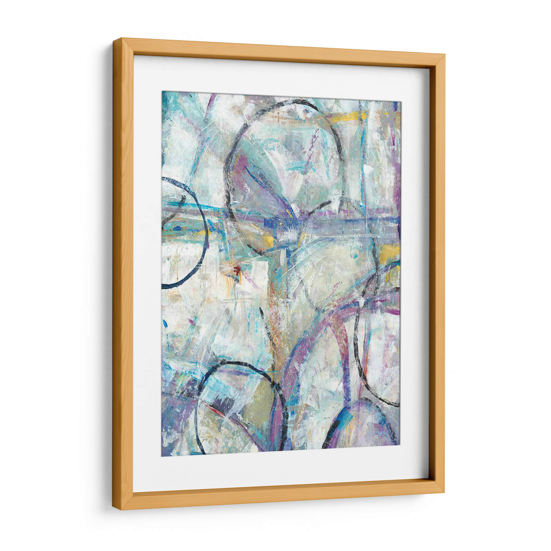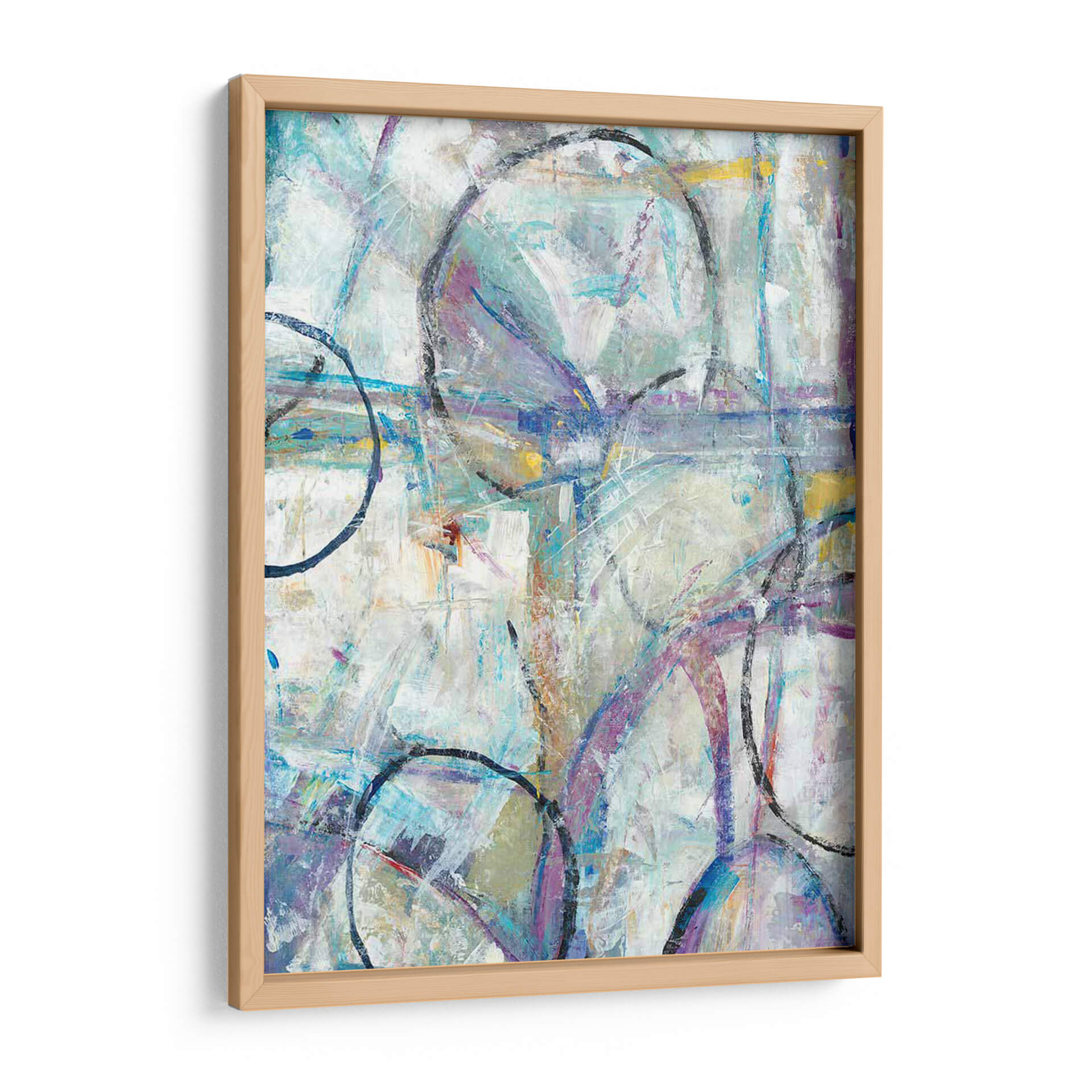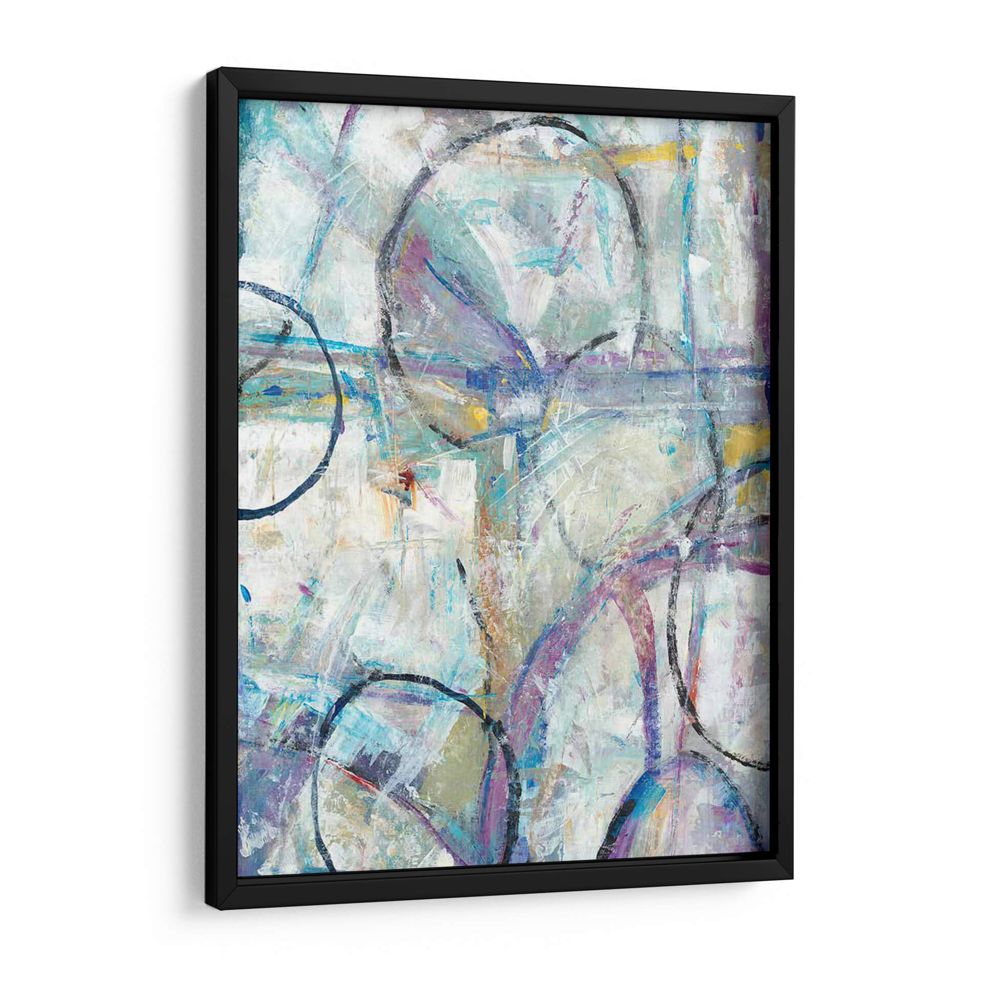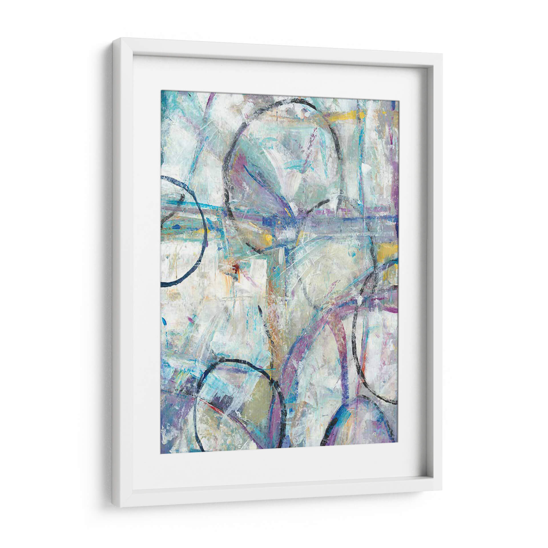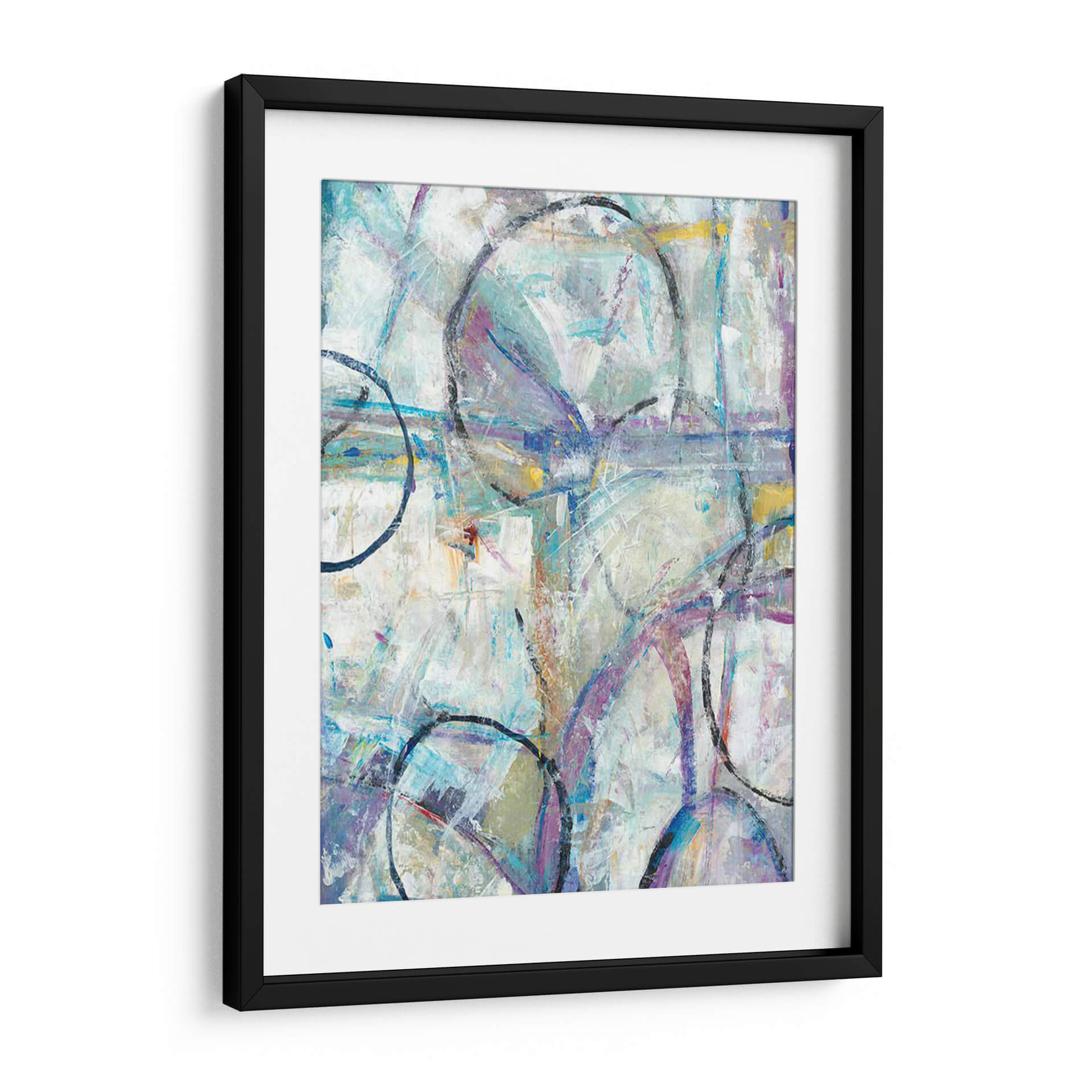 Sumérgete en la dinámica composición de "Escape II" de Tim O'Toole, una obra abstracta que invita a la contemplación y la interpretación personal. Este cuadro decorativo despliega una paleta de colores etérea, dominada por tonos fríos de azul y lavanda, sutilmente realzados por toques cálidos de amarillo y ocre. Las pinceladas gestuales y la superposición de formas, incluyendo círculos audaces y líneas entrelazadas, crean una sensación de movimiento y profundidad, evocando una atmósfera de escape o transición. La textura visual es rica, sugiriendo un proceso de creación espontáneo y expresivo. "Escape II" es una pieza versátil, ideal para infundir energía y sofisticación en espacios modernos, salas de estar, oficinas o cualquier lugar donde se desee un punto focal contemporáneo y estimulante. Su naturaleza abstracta permite que dialogue con una variedad de estilos decorativos, desde el minimalista hasta el ecléctico, añadiendo un toque de arte contemporáneo y personalidad a tu hogar u oficina. Descubre la belleza de la abstracción y permite que esta obra inspire tu día a día.
