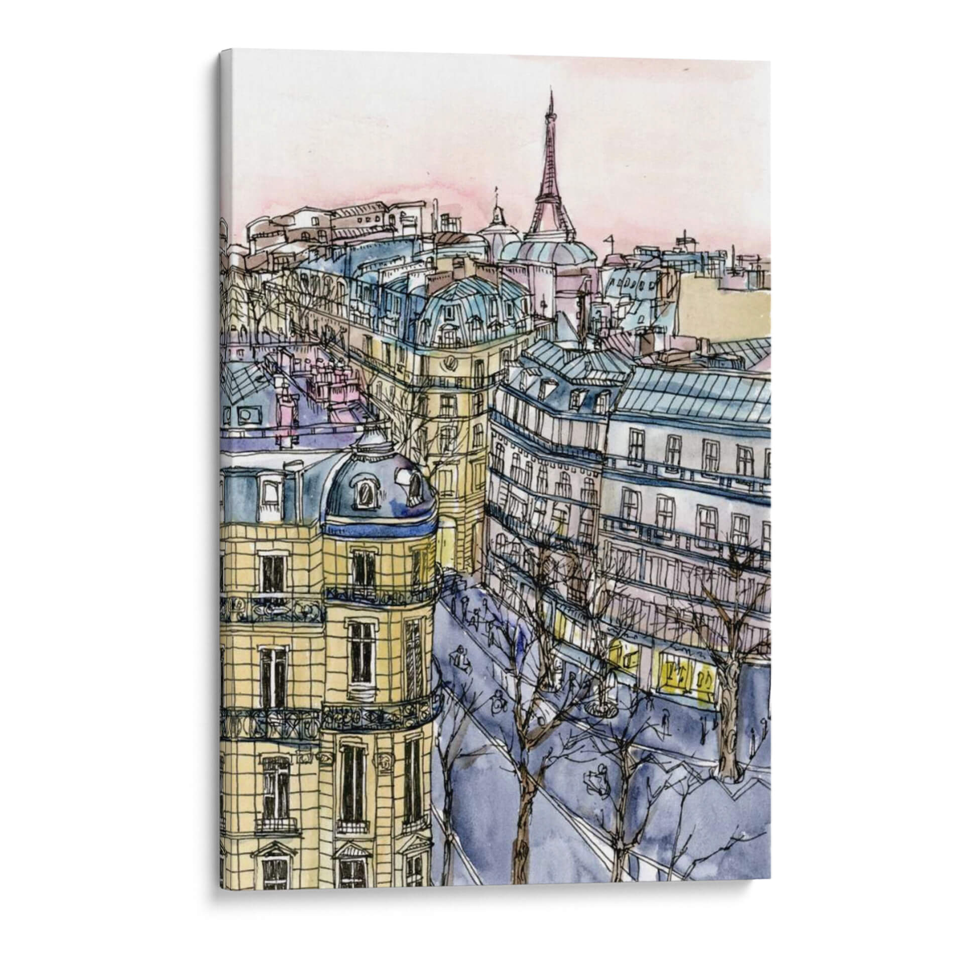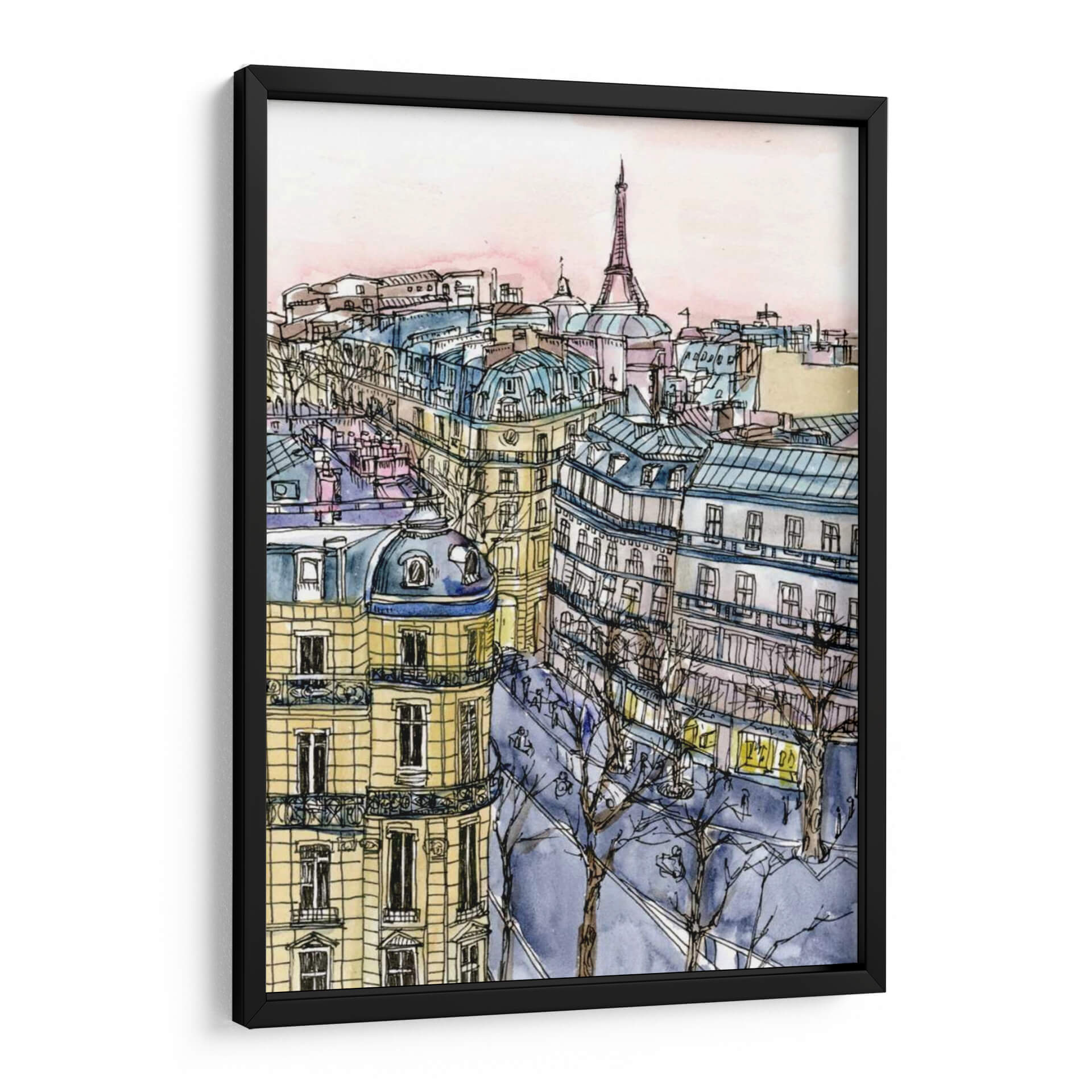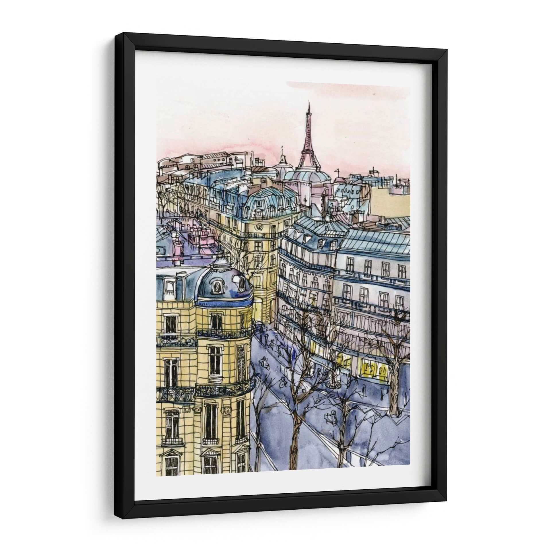 Sumérgete en la atmósfera parisina con "Escena De La Ciudad Ix", una obra de arte cautivadora de Melissa Wang. Esta pieza captura la esencia de un día en la capital francesa a través de una perspectiva única y evocadora. La paleta de colores, dominada por tonos azules y ocres cálidos, se complementa con un cielo suavemente rosado, creando una sensación de serenidad y nostalgia. Los detalles arquitectónicos de los edificios haussmanianos, con sus tejados inclinados y balcones de hierro forjado, cobran vida con trazos audaces de tinta, mientras que las siluetas de los árboles despojados añaden un toque melancólico, sugiriendo la belleza de la ciudad en cualquier estación. La icónica Torre Eiffel se alza sutilmente en el horizonte, anclando la composición y evocando el espíritu inconfundible de París. Este cuadro decorativo es perfecto para quienes desean infundir a sus hogares u oficinas un aire de sofisticación europea y un toque de encanto bohemio. Imagina este vibrante paisaje urbano en tu sala de estar, aportando un punto de conversación y un viaje visual diario. "Escena De La Ciudad Ix" es más que una simple imagen; es una invitación a soñar despierto con las calles de París, una ventana a un mundo de arte y elegancia que transformará cualquier espacio.