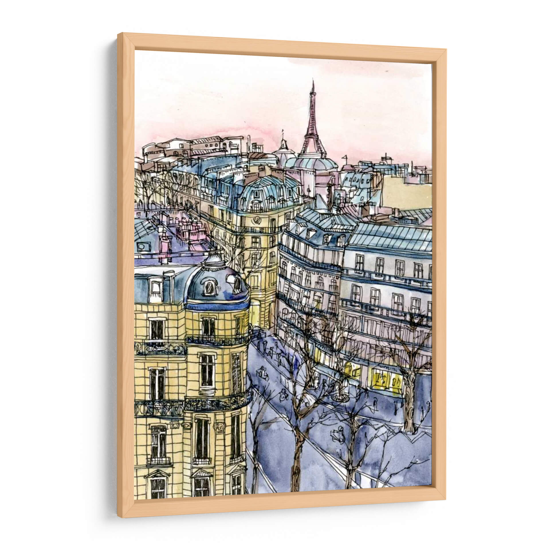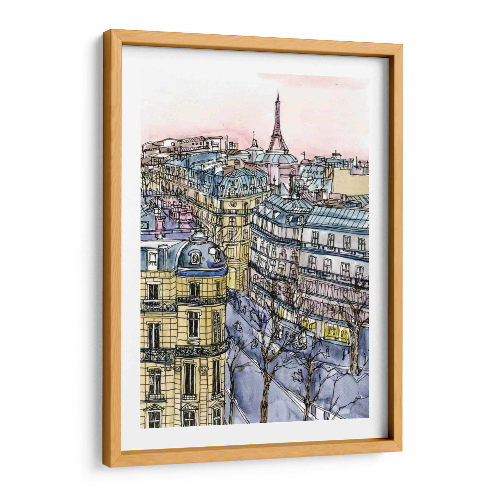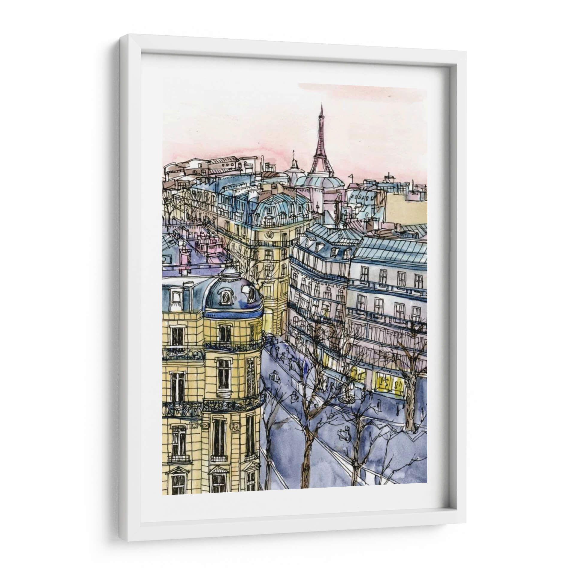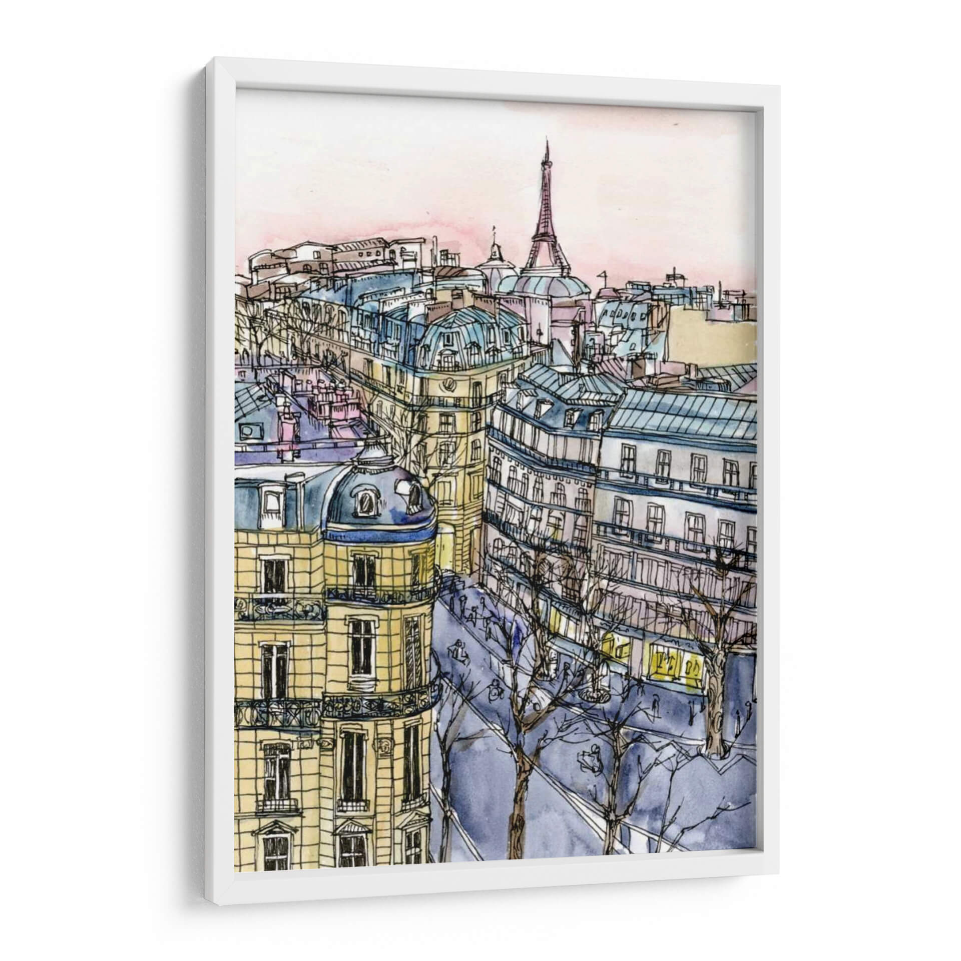 Sumérgete en la atmósfera parisina con "Escena De La Ciudad Ix", una obra de arte cautivadora de Melissa Wang. Esta pieza captura la esencia de un día en la capital francesa a través de una perspectiva única y evocadora. La paleta de colores, dominada por tonos azules y ocres cálidos, se complementa con un cielo suavemente rosado, creando una sensación de serenidad y nostalgia. Los detalles arquitectónicos de los edificios haussmanianos, con sus tejados inclinados y balcones de hierro forjado, cobran vida con trazos audaces de tinta, mientras que las siluetas de los árboles despojados añaden un toque melancólico, sugiriendo la belleza de la ciudad en cualquier estación. La icónica Torre Eiffel se alza sutilmente en el horizonte, anclando la composición y evocando el espíritu inconfundible de París. Este cuadro decorativo es perfecto para quienes desean infundir a sus hogares u oficinas un aire de sofisticación europea y un toque de encanto bohemio. Imagina este vibrante paisaje urbano en tu sala de estar, aportando un punto de conversación y un viaje visual diario. "Escena De La Ciudad Ix" es más que una simple imagen; es una invitación a soñar despierto con las calles de París, una ventana a un mundo de arte y elegancia que transformará cualquier espacio.