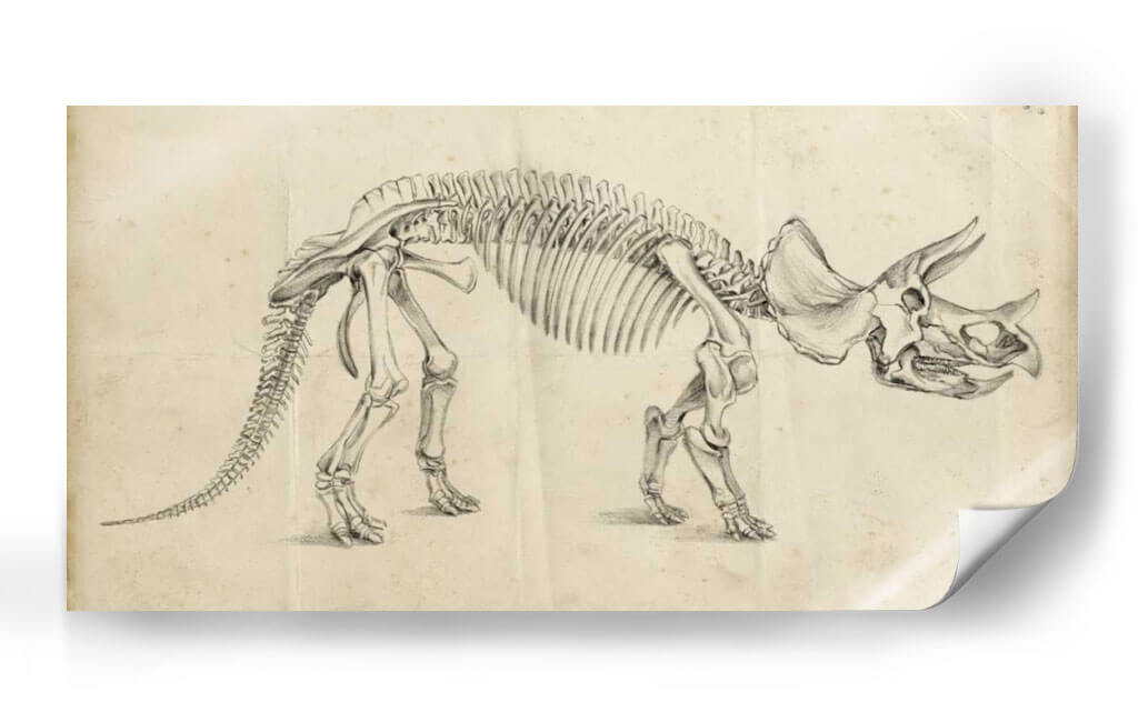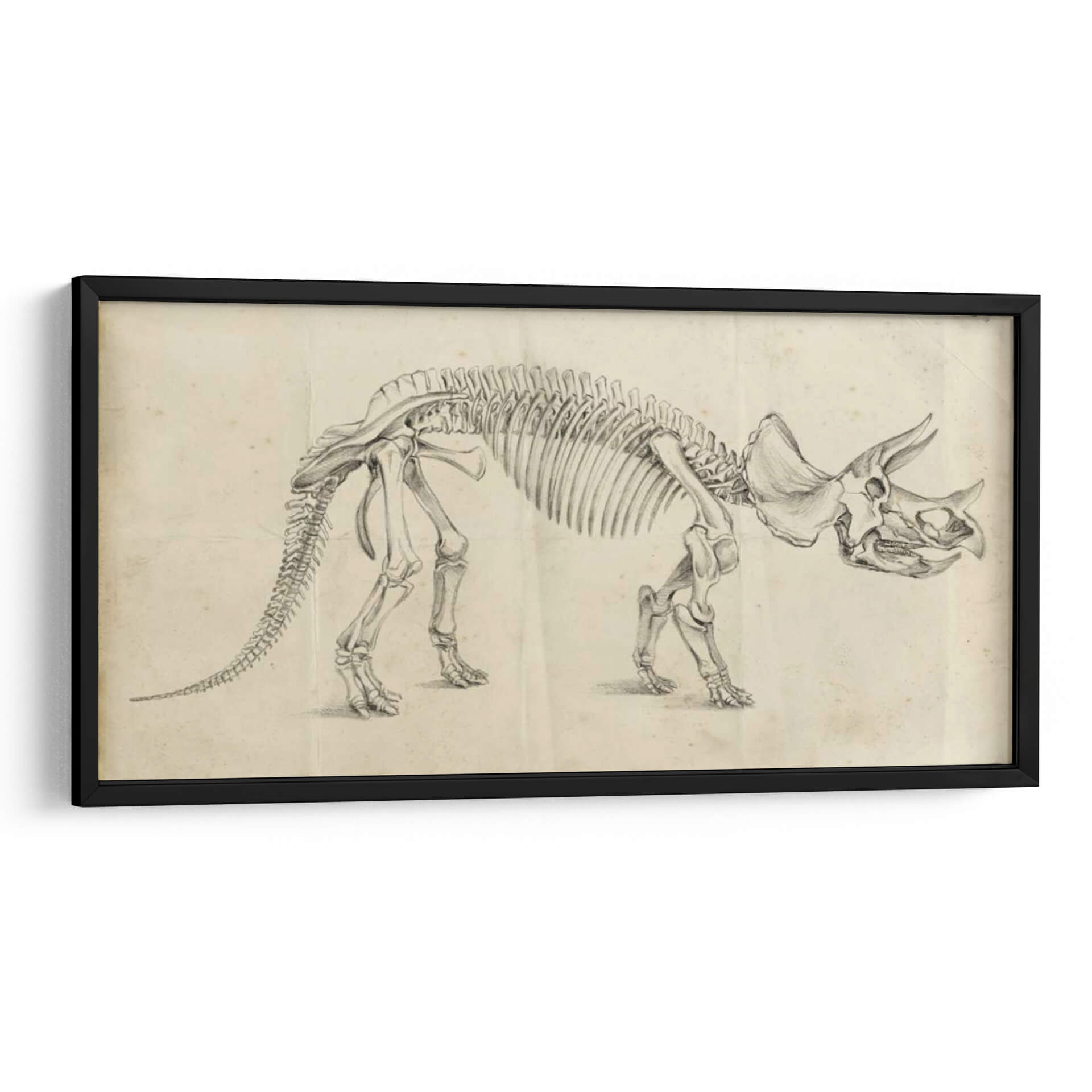 Sumérgete en la fascinación de la prehistoria con este cautivador cuadro decorativo de un esqueleto de dinosaurio, inspirado en estudios científicos y la detallada obra de Ethan Harper. "Estudio De Dinosaurios Ii" presenta una representación meticulosa y artística de la anatomía de un triceratops, ejecutada con un estilo que evoca los dibujos clásicos de historia natural. La paleta de colores sepia y beige, junto con las sutiles texturas de papel antiguo, confiere a la pieza una atmósfera nostálgica y académica, perfecta para quienes aprecian la ciencia y el arte combinados. Este cuadro es ideal para añadir un toque de elegancia intelectual a tu estudio, oficina o sala de estar. Su diseño detallado sirve como un punto de conversación, invitando a la contemplación sobre la vida antigua y la majestuosidad de estas criaturas extintas. Transforma tu espacio en un santuario de conocimiento y estilo con esta obra única que combina la precisión científica con la belleza artística, aportando una perspectiva histórica y un aire distintivo a cualquier decoración moderna o clásica. Un elemento decorativo que inspira curiosidad y admiración.