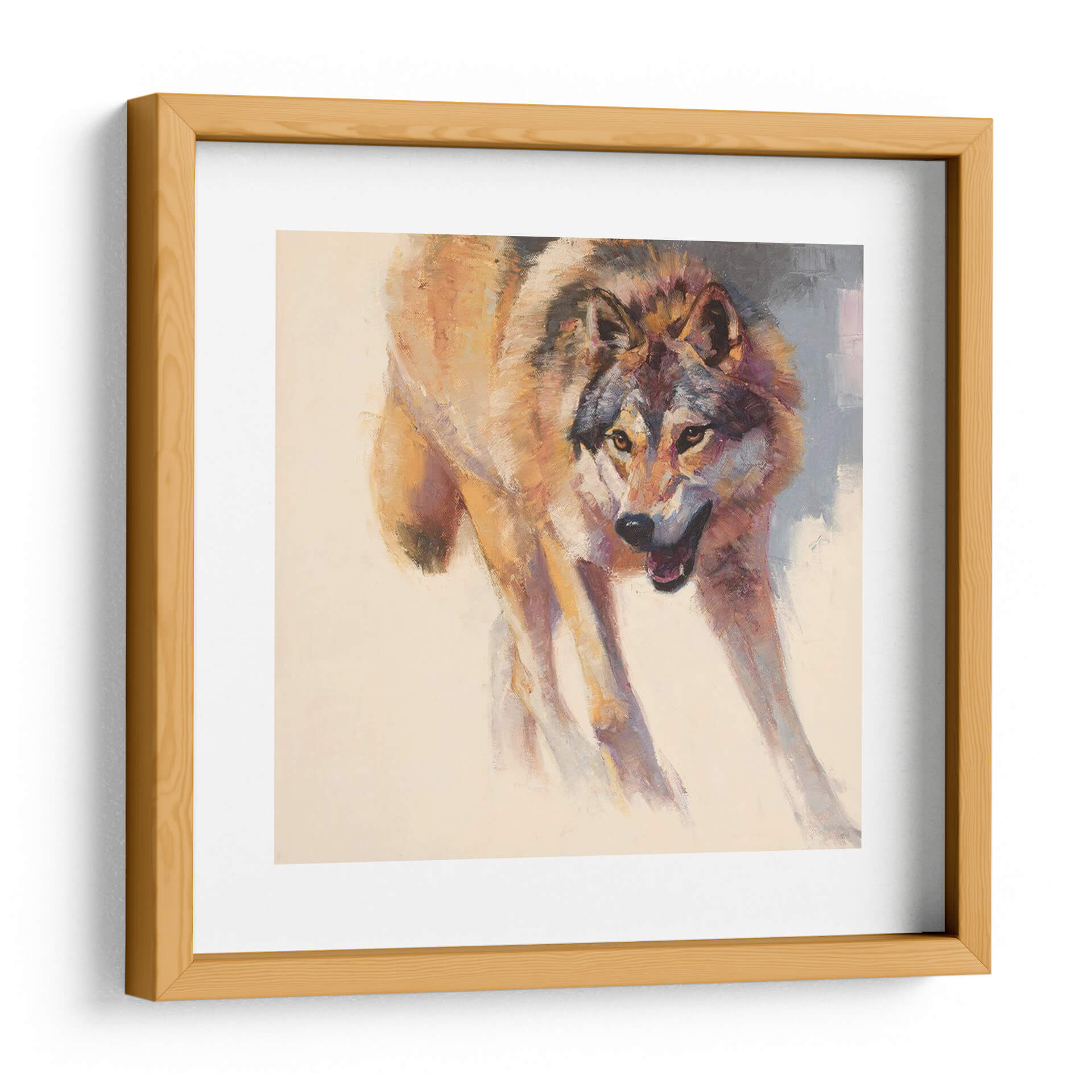 Sumérgete en la fuerza indómita de la naturaleza con "Estudio De Lobos IV", una cautivadora obra de arte de Julie T. Chapman. Esta pieza vibrante captura la esencia de un lobo en movimiento, con pinceladas audaces y una paleta de colores cálidos que van desde ocres y dorados hasta sutiles toques de púrpura y azul grisáceo en el fondo. La composición dinámica enfoca la mirada penetrante del lobo, transmitiendo una sensación de poder, inteligencia y conexión salvaje. Es una adición perfecta para aquellos que buscan infundir sus espacios con una energía primaria y un toque de la majestuosidad de la vida silvestre. Ideal para salones modernos, estudios o cualquier lugar donde se desee un punto focal que evoque la naturaleza y la fuerza. Este cuadro decorativo no es solo una imagen, sino una expresión artística que invita a la reflexión sobre la libertad y el instinto. Añade un toque de carácter y sofisticación a tu decoración con esta impresionante representación del lobo.