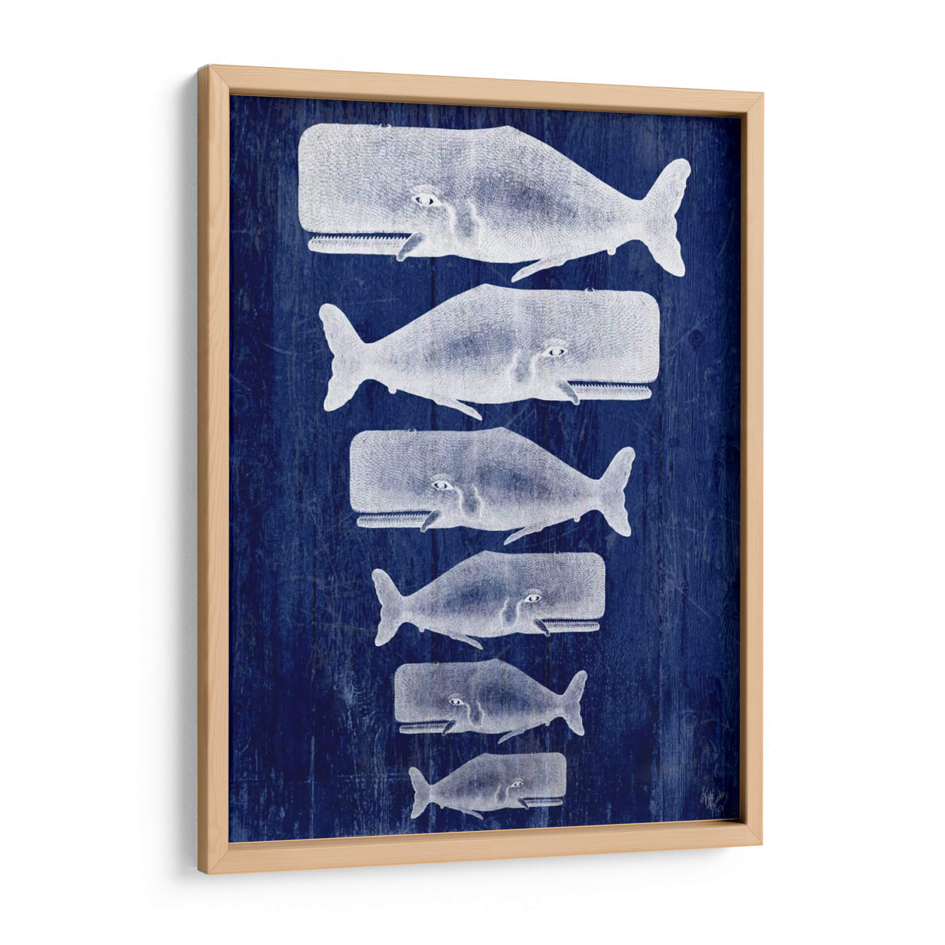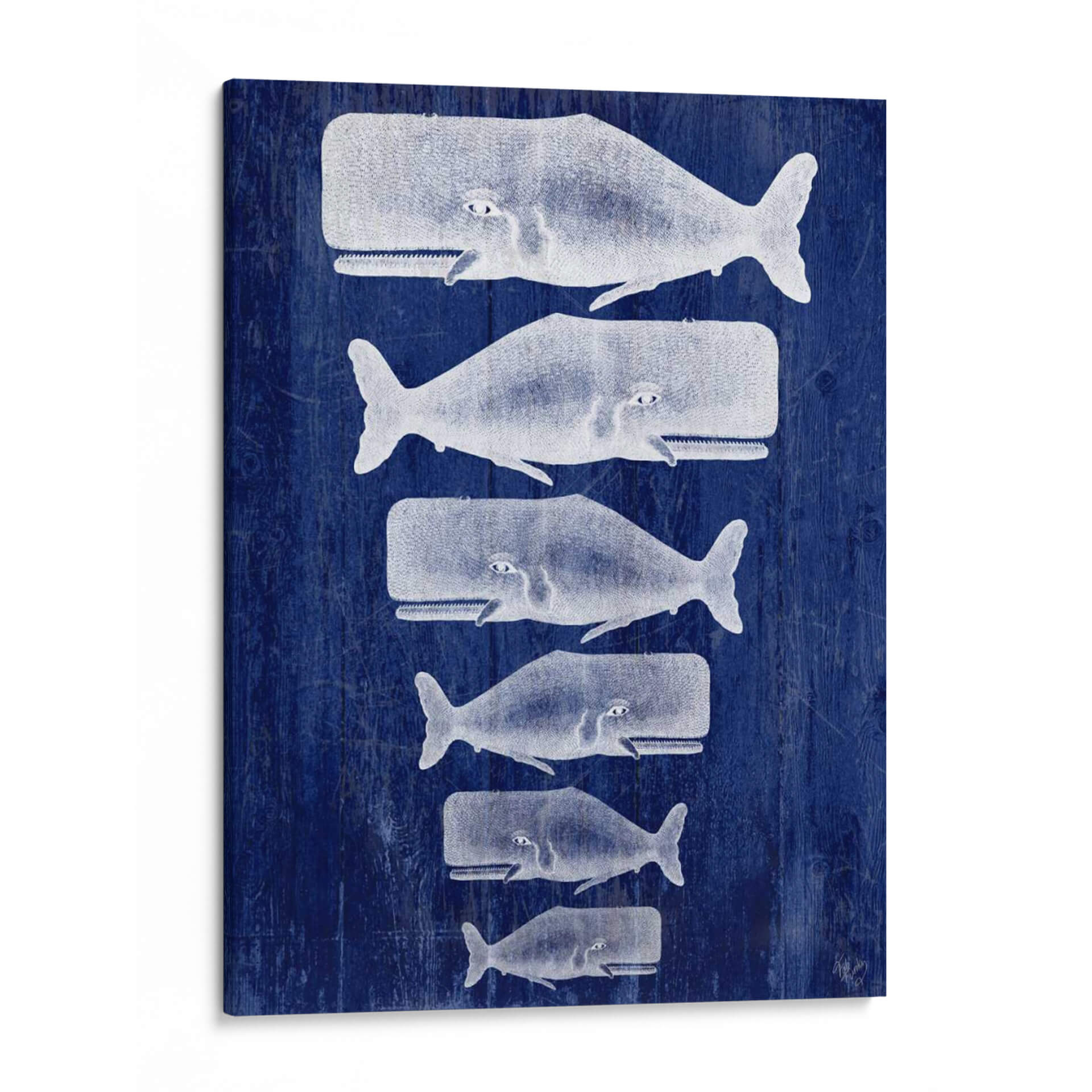 Sumérgete en la serenidad del océano con este cautivador cuadro decorativo que presenta una familia de ballenas blancas sobre un fondo azul intenso y texturizado. La obra 'Familia Ballena Blanco En Azul', del artista Fab Funky, evoca una sensación de calma y conexión con la naturaleza, ideal para quienes buscan añadir un toque de tranquilidad y estilo marino a sus espacios. La composición vertical, con las ballenas dispuestas una debajo de la otra en orden de tamaño, crea una dinámica visual interesante y armónica. Los tonos contrastantes de blanco y azul, junto con la textura que simula madera envejecida, aportan profundidad y carácter a la pieza. Este cuadro es perfecto para salones, dormitorios o incluso estudios, aportando una atmósfera de paz y sofisticación. Su estilo, que combina elementos realistas con una presentación gráfica, lo convierte en una adición versátil a diversas decoraciones, desde la costera hasta la moderna. Incorpore la majestuosidad del mar en su hogar y cree un ambiente acogedor y lleno de inspiración con esta hermosa representación artística.