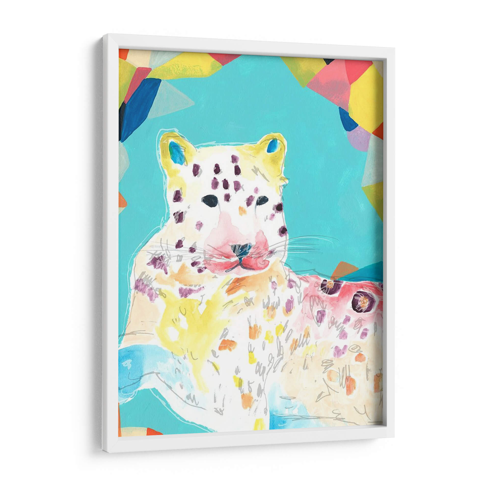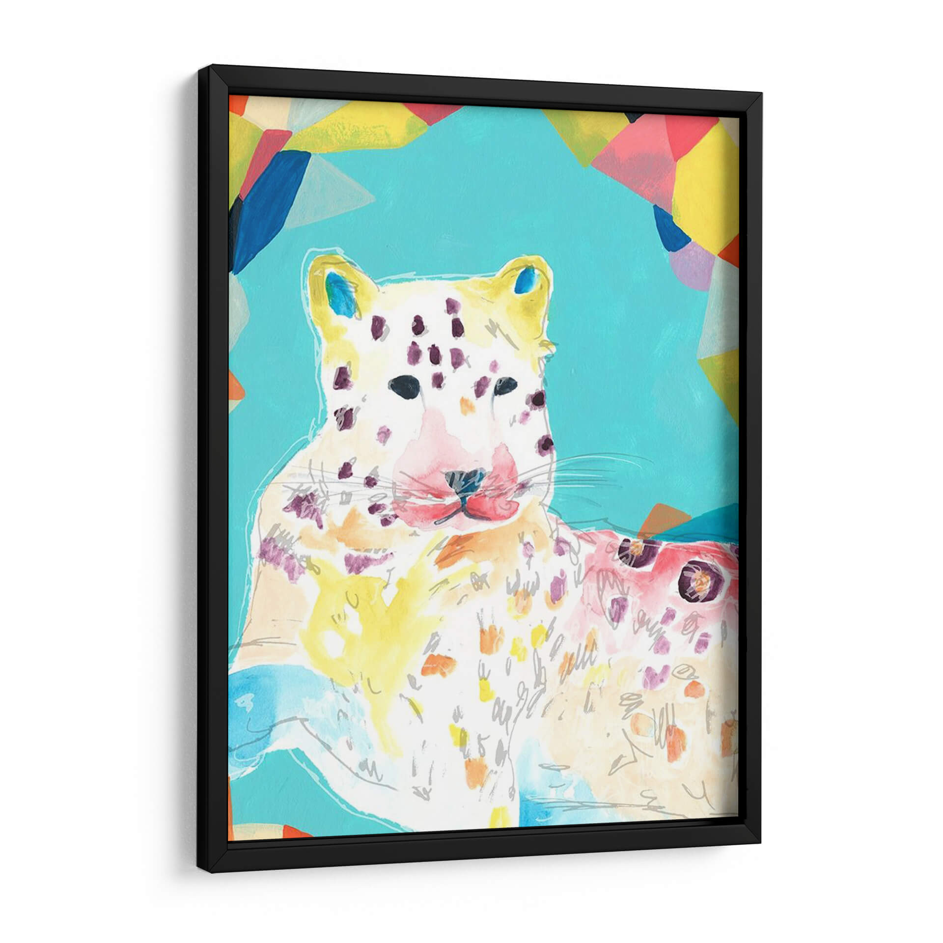 Celebra la vida salvaje con "Fiesta Safari Iv", una obra vibrante del artista June Erica Vess. Este cuadro decorativo captura la esencia juguetona y enérgica de un leopardo, presentado a través de trazos audaces y una paleta de colores alegre. El fondo, dominado por un azul cerúleo, se complementa con formas geométricas abstractas en tonos de amarillo, rosa, azul y naranja, creando un contraste dinámico y moderno. La figura del leopardo, representada con trazos sueltos y acuarelados, combina el blanco y el amarillo pálido con manchas en tonos morados y rosados, transmitiendo una sensación de movimiento y espontaneidad. Ideal para añadir un toque de color y personalidad a cualquier estancia, desde una sala de estar contemporánea hasta una oficina creativa o un dormitorio juvenil. "Fiesta Safari Iv" no es solo una pieza decorativa, sino una invitación a la alegría y la vitalidad, perfecta para quienes buscan arte que despierte emociones y dialogue con espacios modernos y llenos de vida. Este cuadro es una excelente opción para quienes aprecian el arte contemporáneo con influencias pop y abstractas, y desean infundir energía positiva en su hogar u oficina. Las pinceladas visibles y la composición lúdica hacen de esta obra un punto focal cautivador que inspira conversaciones y eleva el espíritu.