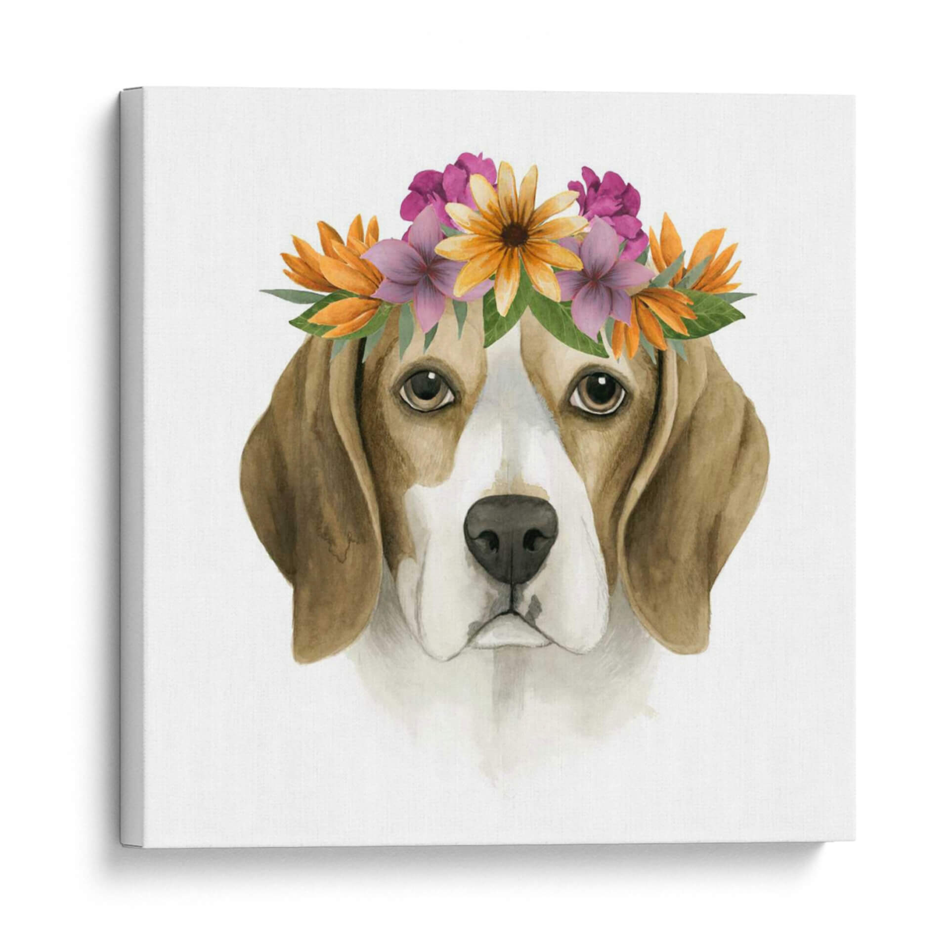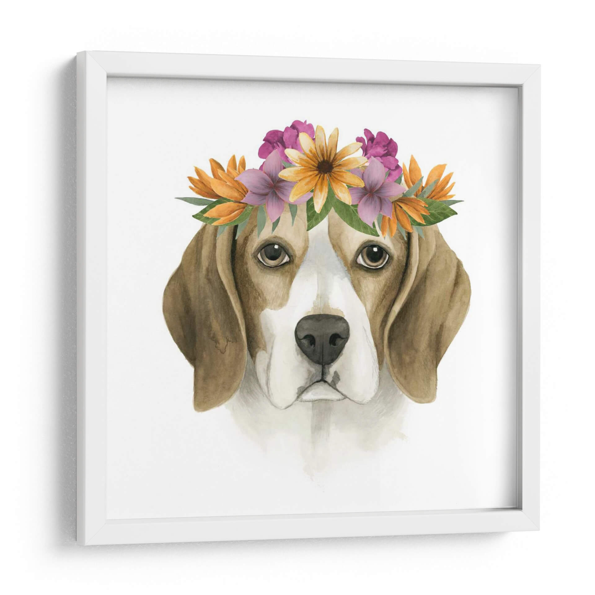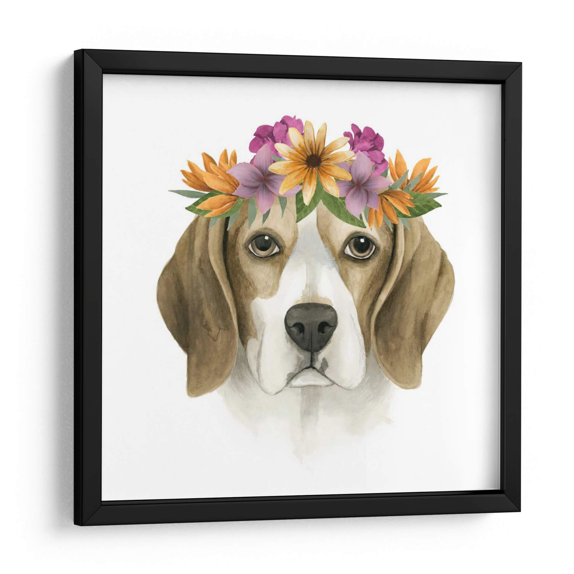 Embellece tu hogar con "Flor Crown Pup IV", una obra de arte cautivadora de Grace Popp que presenta un entrañable beagle adornado con una vibrante corona de flores. Esta pieza, ejecutada con una delicada técnica de acuarela, captura la dulzura y la inocencia de un perro amado, realzado por un tocado floral en tonos anaranjados, púrpuras y amarillos que añade un toque de alegría y color. La mirada directa del cachorro invita a la conexión emocional, mientras que la composición centrada y el fondo neutro aseguran que la obra sea el punto focal de cualquier habitación. Ideal para amantes de los animales, entusiastas de la decoración floral o cualquiera que busque añadir una dosis de calidez y personalidad a su espacio. Este cuadro decorativo es perfecto para salones, dormitorios, estudios o incluso como un alegre toque en una guardería. Su estilo artístico, que combina realismo con un toque etéreo, lo convierte en una pieza versátil capaz de complementar una amplia gama de estilos decorativos, desde el rústico y bohemio hasta el moderno y escandinavo. Transforma tu pared en un lienzo de emociones positivas y belleza natural con esta encantadora obra de arte.