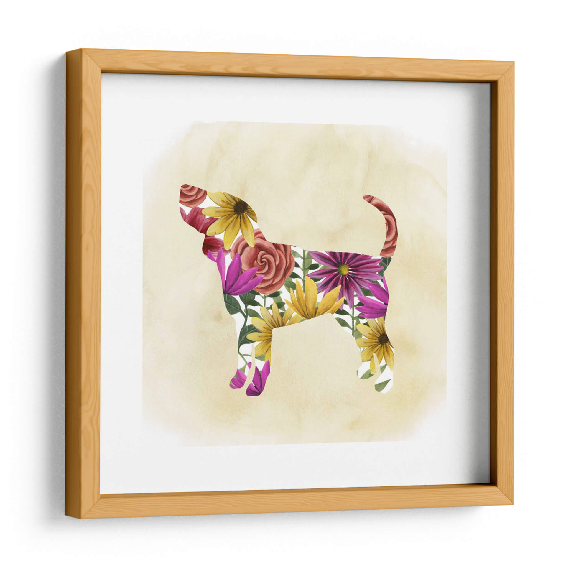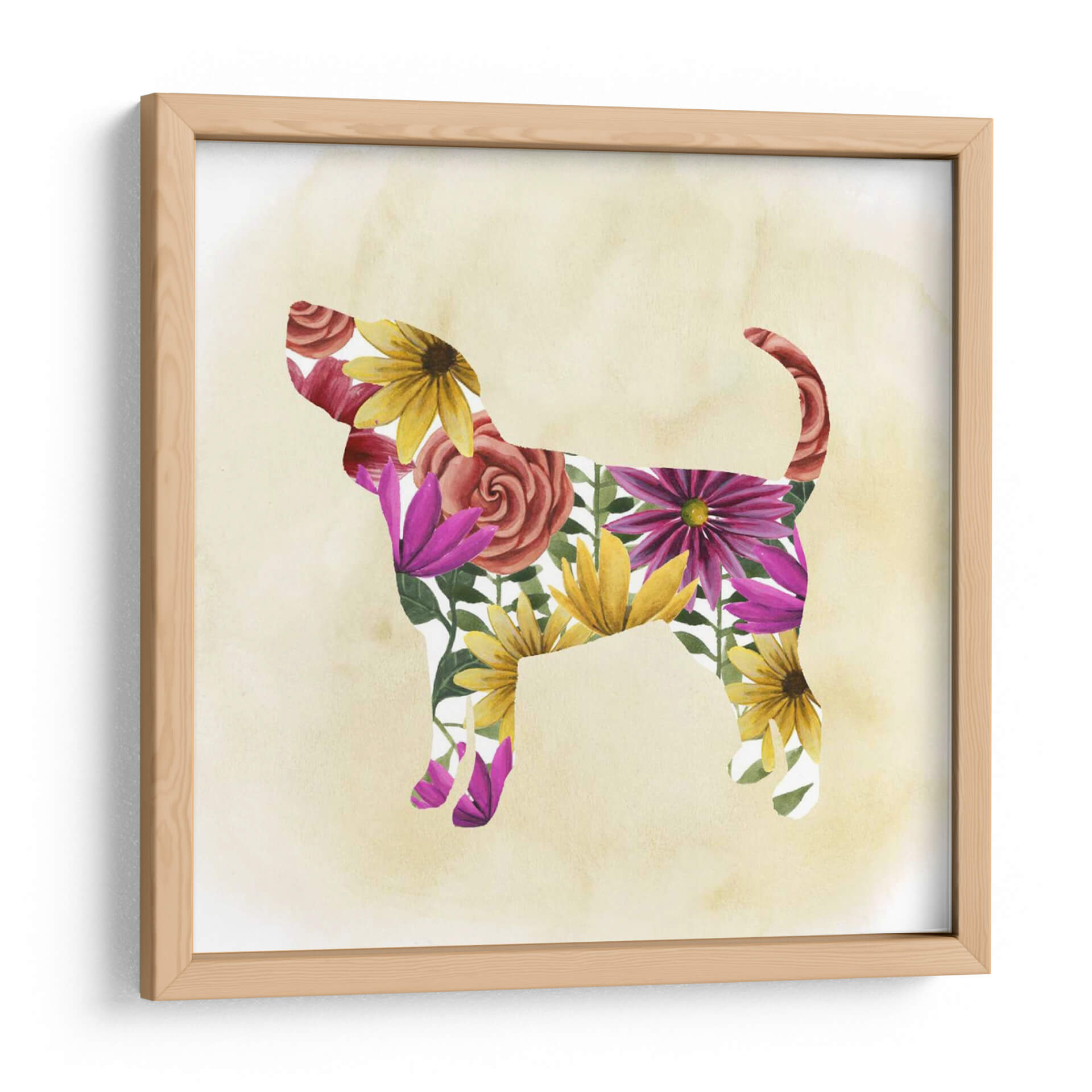 Dale vida a tus espacios con "Flor Power Pup IV", una obra de arte vibrante y juguetona del artista Grace Popp. Este cuadro decorativo captura la silueta de un perro, inteligentemente compuesto por un exuberante arreglo floral. Las flores, en tonos de rosa intenso, amarillo brillante y púrpura vibrante, se entrelazan creando una textura visual rica y alegre. El fondo, con sus sutiles matices acuarelados en tonos beige y ocre, complementa a la perfección la explosión de color de las flores, aportando una sensación de calidez y serenidad. El estilo es una fusión encantadora de figurativo y floral, donde la forma animal cobra vida a través de la delicadeza de la naturaleza. La composición es equilibrada, presentando al perro en una pose curiosa y amigable. Esta pieza es ideal para añadir un toque de vitalidad y encanto a cualquier habitación, desde una sala de estar moderna hasta una habitación infantil o una oficina creativa. "Flor Power Pup IV" no es solo una decoración; es una celebración de la vida, la naturaleza y la alegría de tener una mascota, evocando sentimientos de felicidad y conexión. Perfecta para amantes de los perros y entusiastas del arte botánico que buscan una pieza única y llena de personalidad.