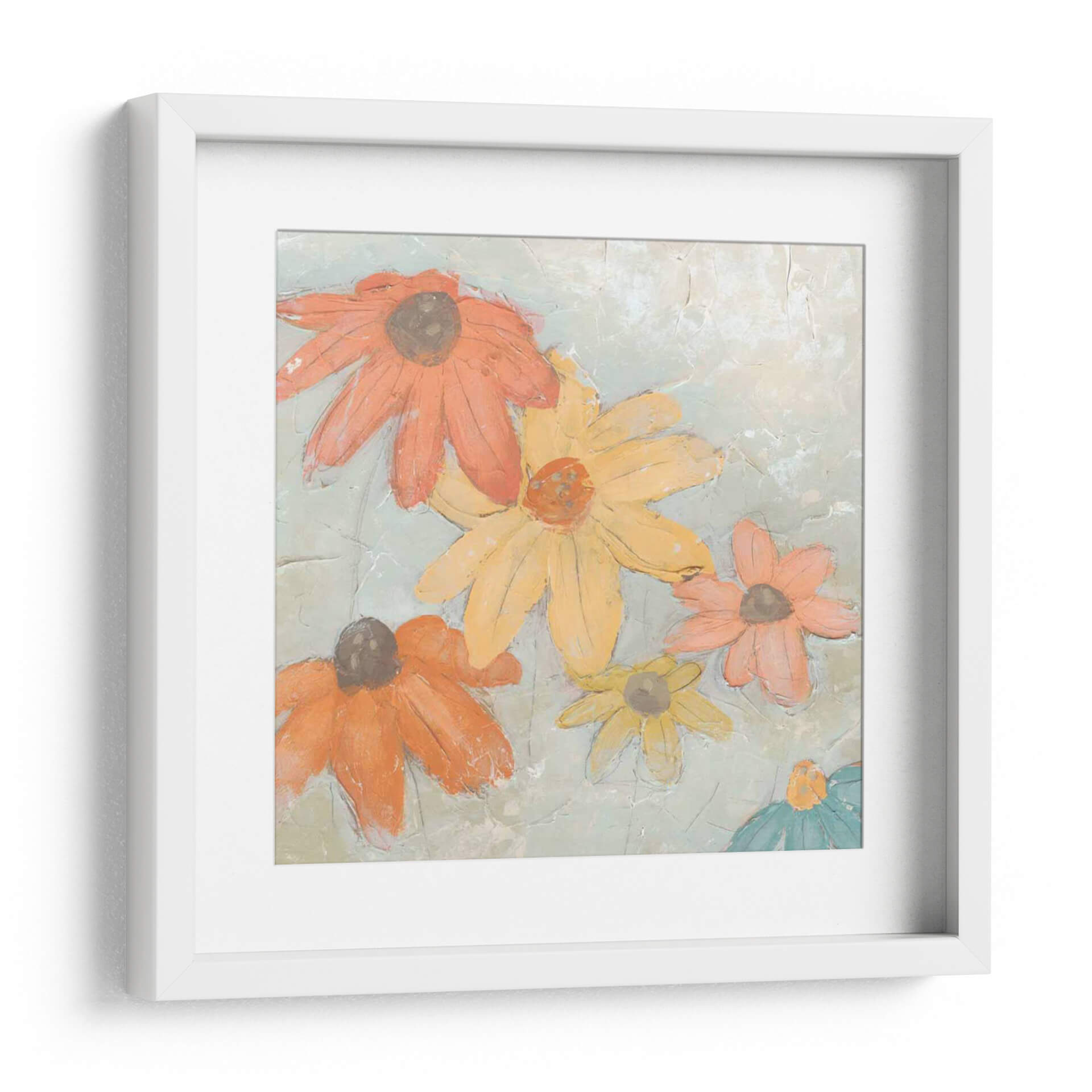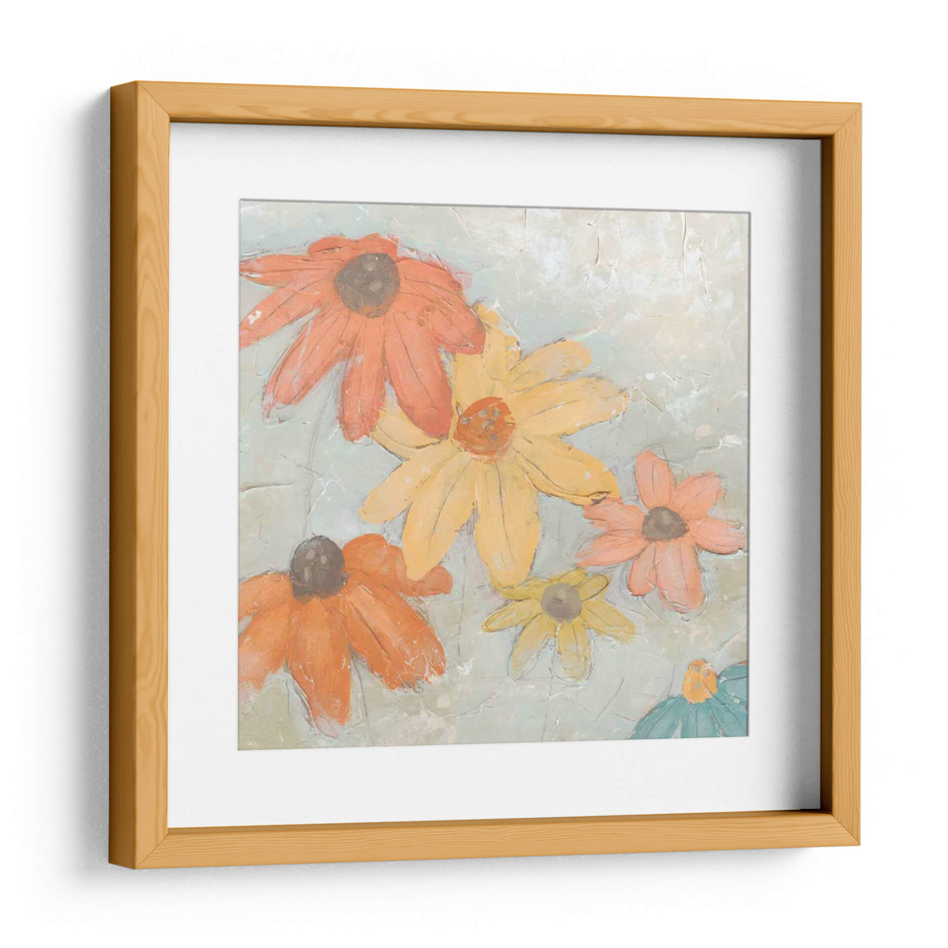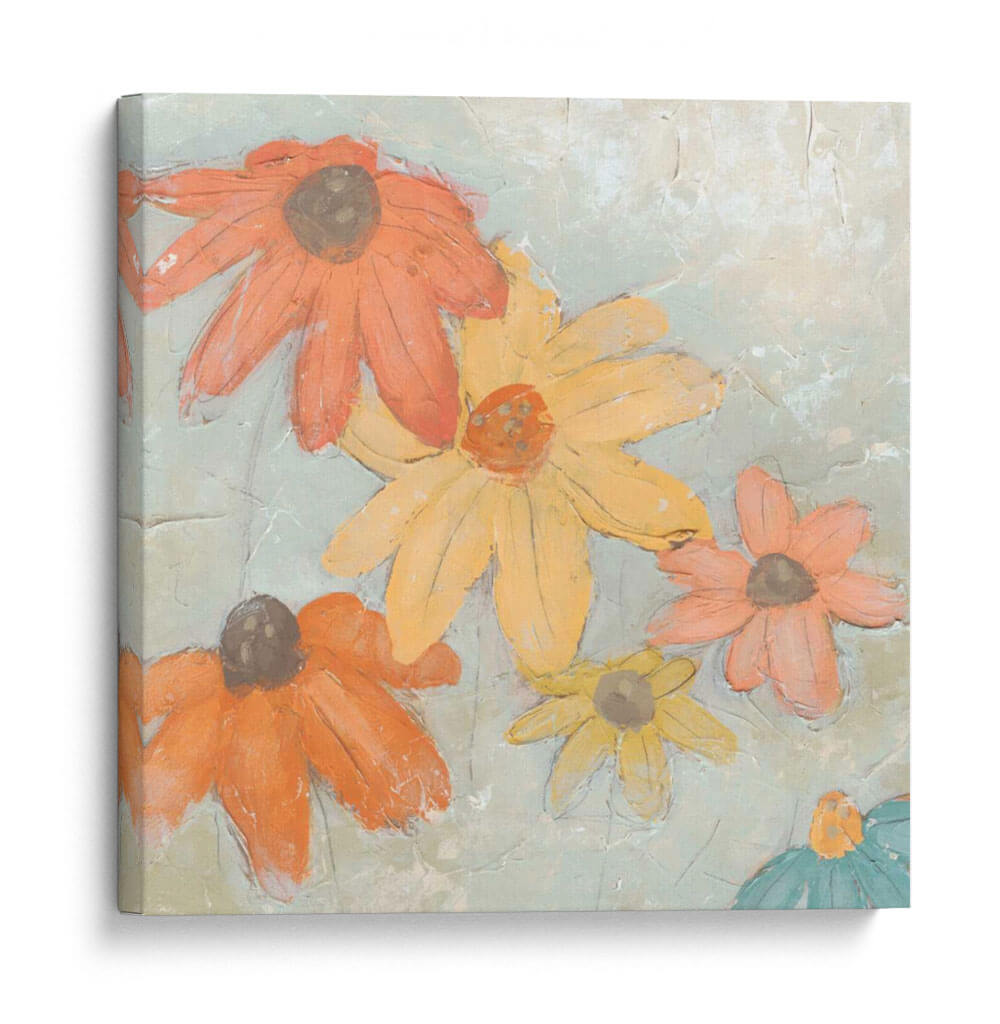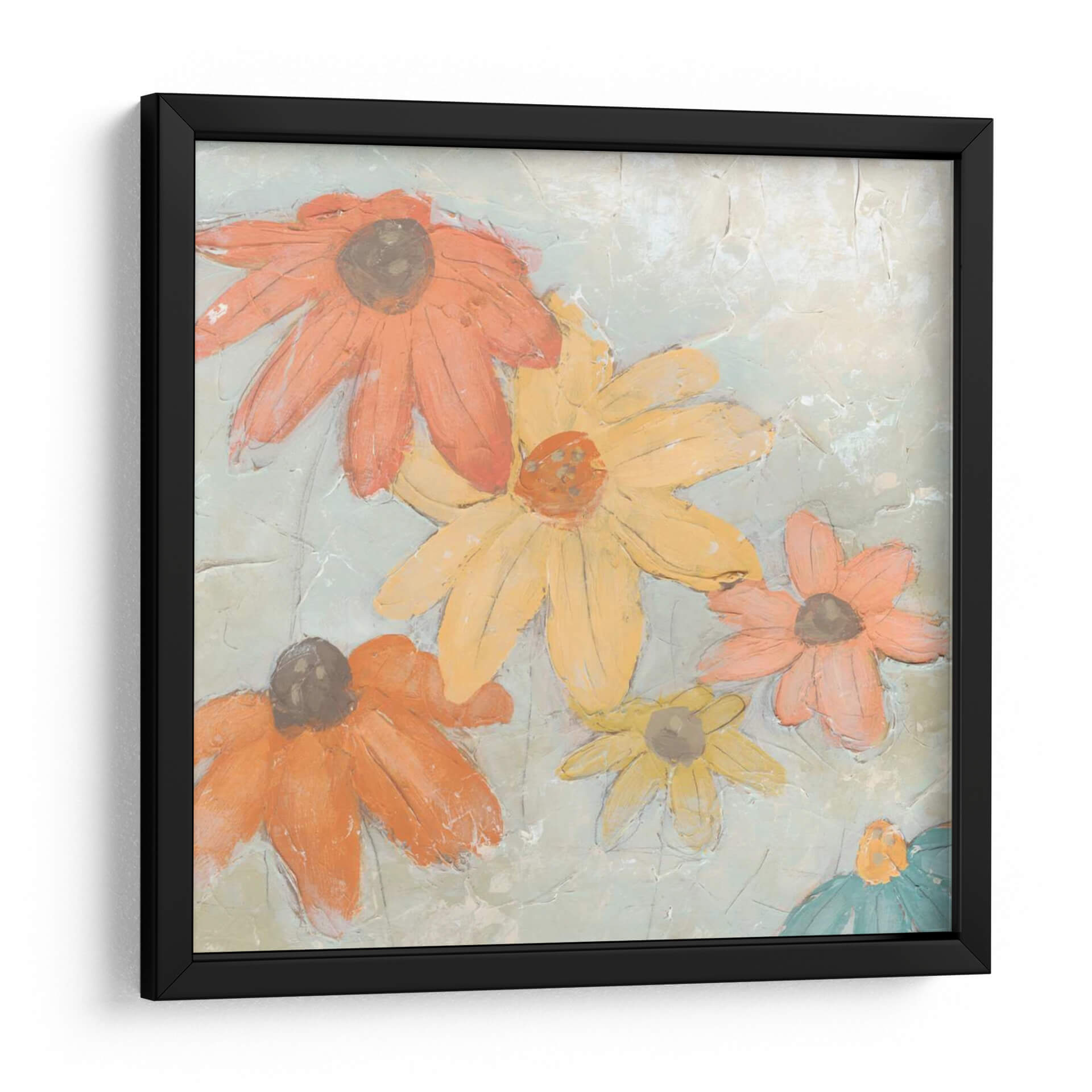 Sumérgete en la serenidad primaveral con "Floral Fresco II", una obra de arte que captura la delicadeza de las flores en plena floración. Este cuadro decorativo presenta un grupo de margaritas estilizadas en tonos cálidos de naranja, amarillo y rosa pálido, contrastando suavemente con un fondo texturizado en tonos aguamarina y grises sutiles. La técnica pictórica evoca un estilo impresionista moderno, con pinceladas sueltas que dan vida a los pétalos y centros oscuros de las flores, creando una sensación de movimiento y frescura. La composición, aunque centrada en la naturaleza, posee una cualidad abstracta que permite múltiples interpretaciones y una adaptación versátil a diversos estilos decorativos. Ideal para añadir un toque de color y alegría a tu sala de estar, dormitorio o cualquier espacio que necesite un respiro de vitalidad natural. "Floral Fresco II" no es solo una pieza de decoración, es una invitación a la contemplación y a la apreciación de la belleza efímera de las flores, aportando calma y un ambiente acogedor a tu hogar. Su diseño vibrante pero equilibrado lo convierte en el punto focal perfecto para interiores contemporáneos, rústicos o bohemios, transmitiendo una energía positiva y un encanto artístico único. Descubre la expresividad de June Erica Vess y transforma tu entorno con este hermoso cuadro decorativo floral.