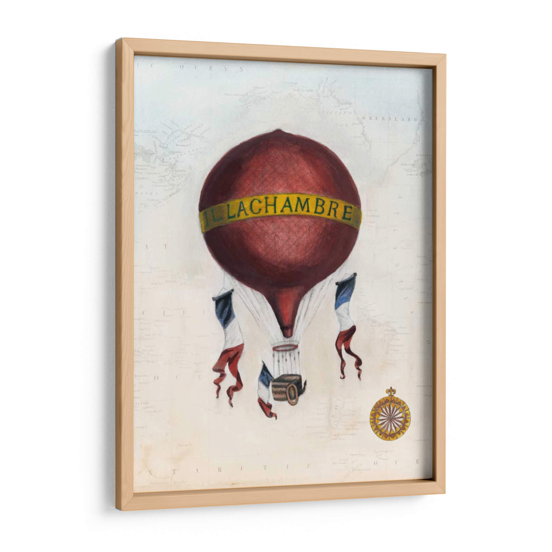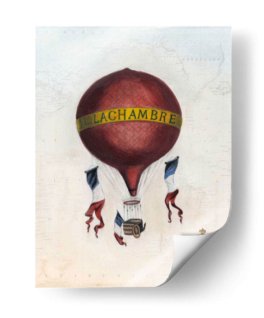 Embárquese en un viaje visual con "Globos de Aire Caliente Vintage III" de Naomi McCavitt, una obra de arte que evoca la era dorada de la exploración y la aventura. Este cuadro decorativo presenta un globo aerostático de color rojo intenso, adornado con una banda amarilla que ostenta la palabra "LLACHAMBRE", evocando un aire de misterio y descubrimiento. Las banderas francesas que ondean sutilmente en las cuerdas del globo añaden un toque histórico y patriótico a la composición. El fondo, un mapa antiguo descolorido, transporta al espectador a una época de viajes transoceánicos y descubrimientos geográficos, creando una atmósfera de nostalgia y maravilla. La paleta de colores, dominada por tonos cálidos y terrosos con acentos de rojo vibrante y amarillo, confiere a la obra una sensación de calidez y profundidad. El estilo detallado y ligeramente texturizado de la ilustración, junto con su composición centrada en el globo, atrae la mirada y fomenta la contemplación. Este cuadro es ideal para añadir un toque de encanto vintage y un sentido de aventura a cualquier espacio, ya sea una sala de estar, un estudio o una oficina. "Globos de Aire Caliente Vintage III" no es solo una pieza decorativa, sino una invitación a soñar y explorar los horizontes desconocidos, convirtiéndose en un punto focal cautivador que inspira conversaciones y admiración.