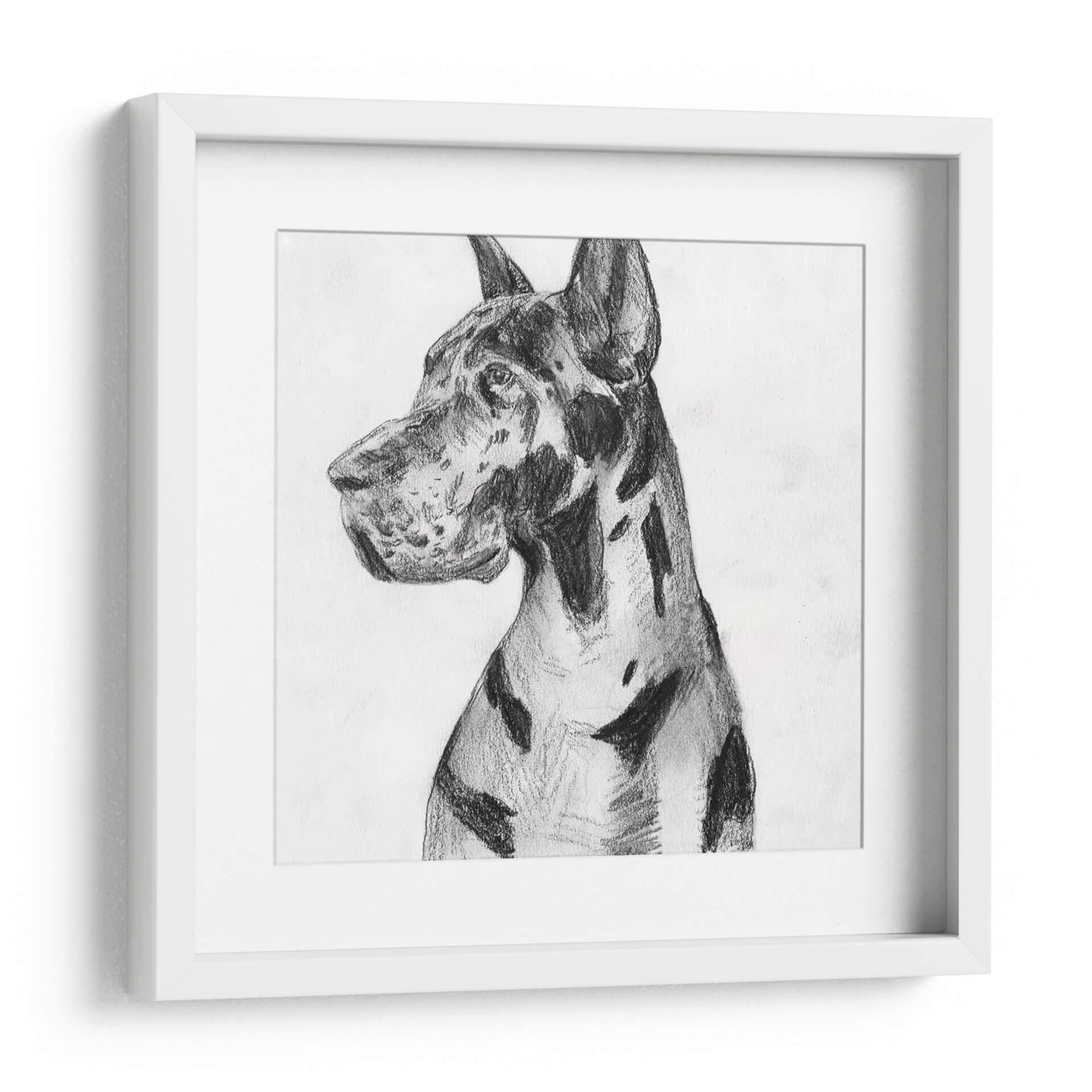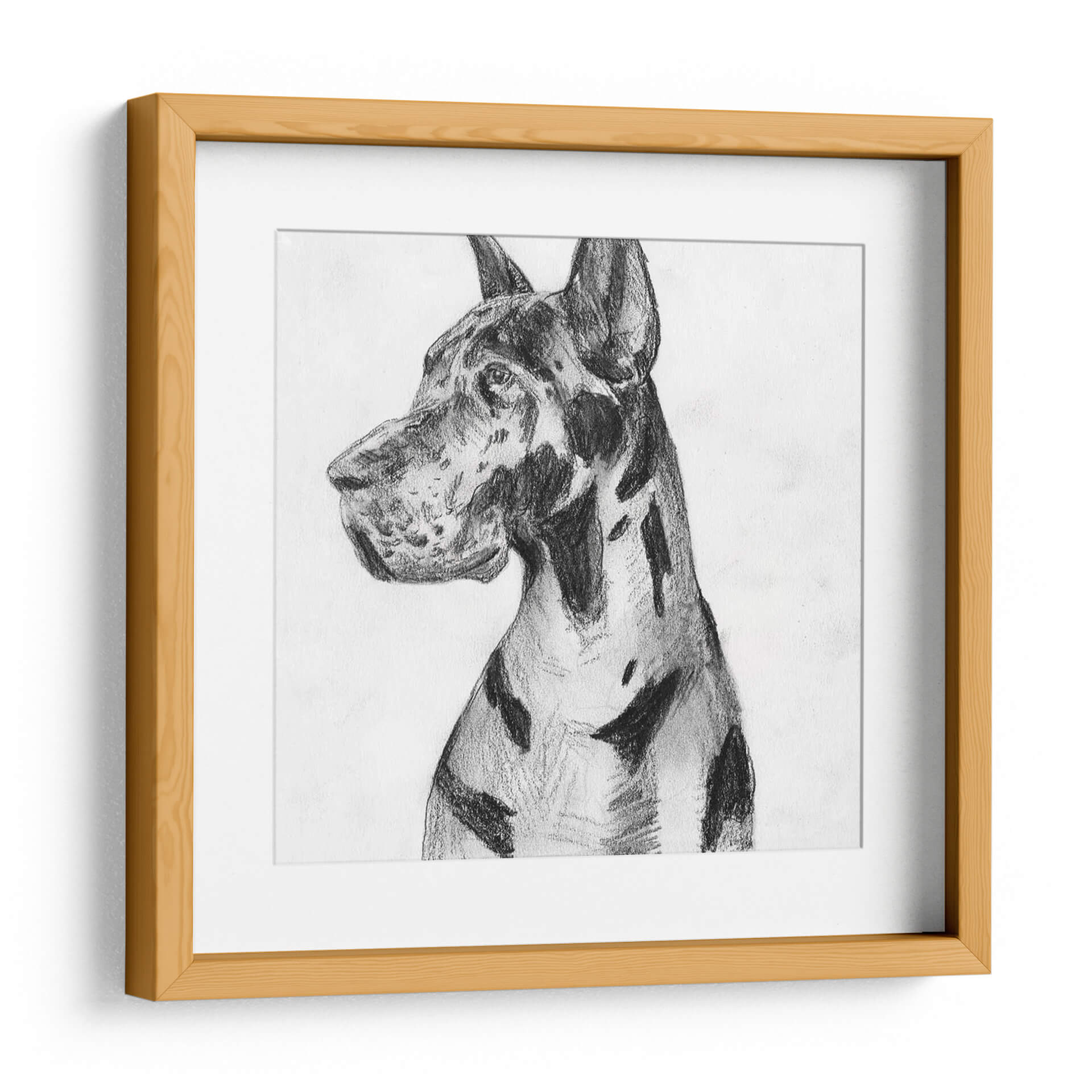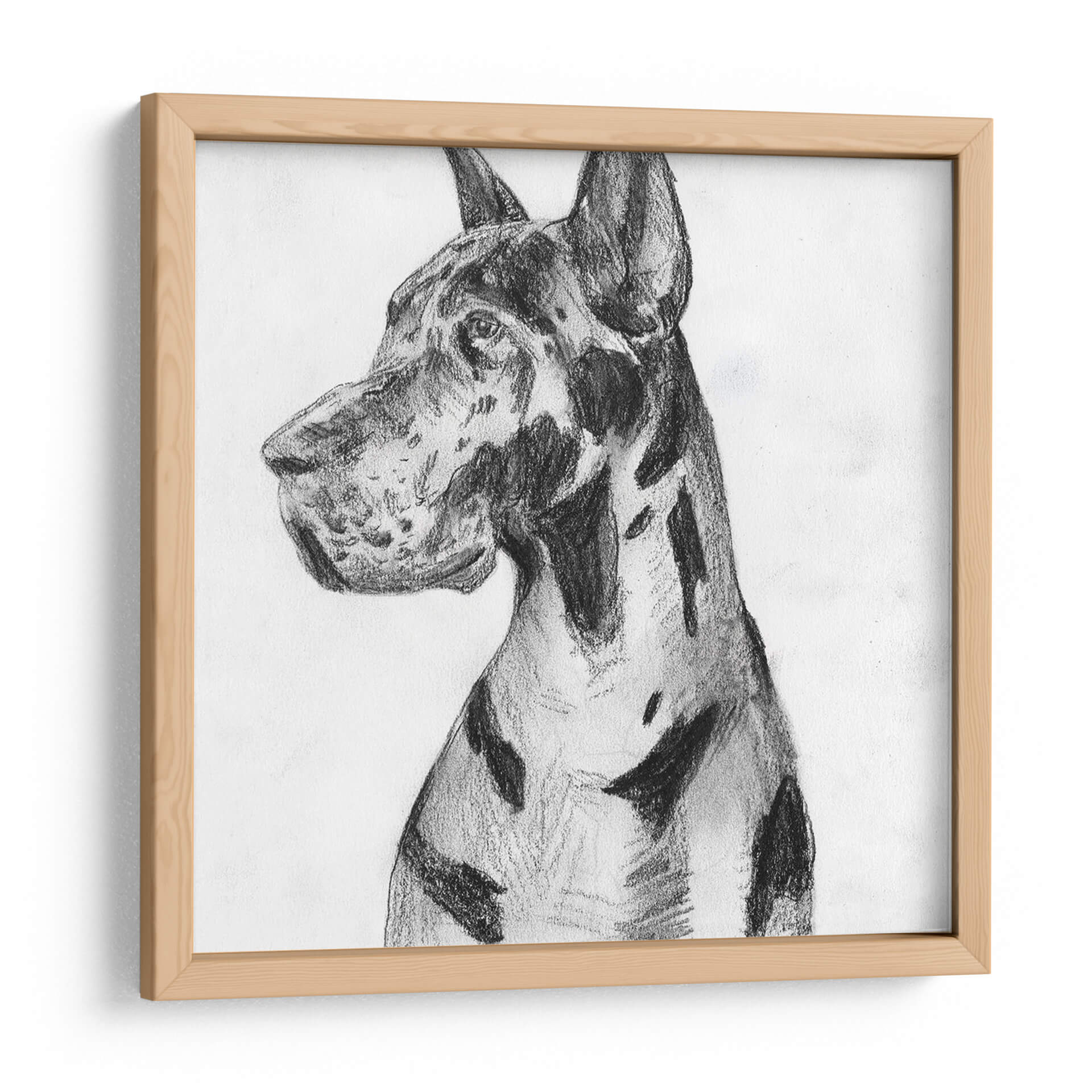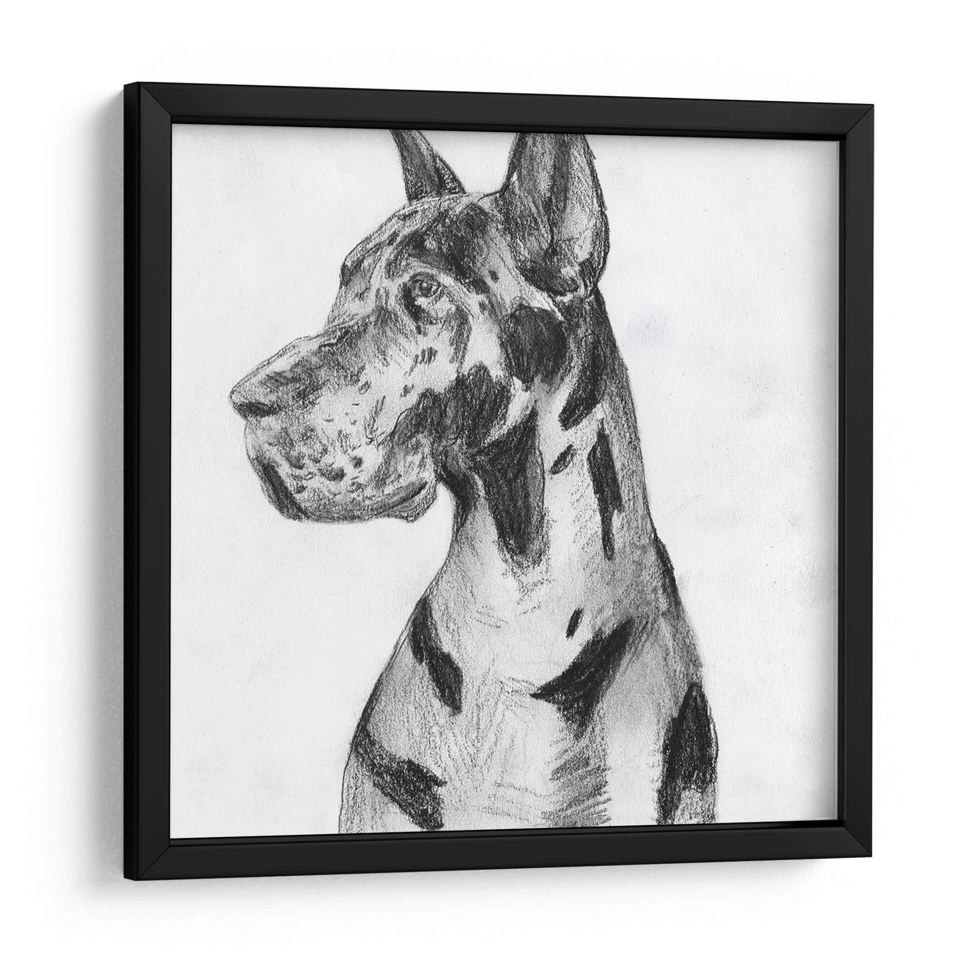 Captura la nobleza y la presencia imponente de un Gran Danés con este exquisito cuadro decorativo de Melissa Wang. La obra maestra, realizada con la técnica del carboncillo o lápiz sobre papel, presenta un detallado retrato del perro en un primer plano, destacando la expresividad de su mirada y la textura de su pelaje atigrado. Los trazos precisos y el juego de luces y sombras crean una atmósfera de profundidad y realismo, invitando a contemplar la majestuosidad del animal. Los tonos predominantemente blancos y negros, con sus características manchas oscuras, otorgan una elegancia atemporal que se adapta a cualquier estilo decorativo, desde el moderno hasta el clásico. Este retrato es ideal para los amantes de los perros, especialmente de esta raza icónica, y para quienes buscan una pieza de arte que transmita calma, lealtad y sofisticación. Añade un toque de carácter y calidez a tu sala de estar, estudio u oficina con esta impresionante representación artística. Un cuadro decorativo que celebra la belleza animal y la maestría del artista.