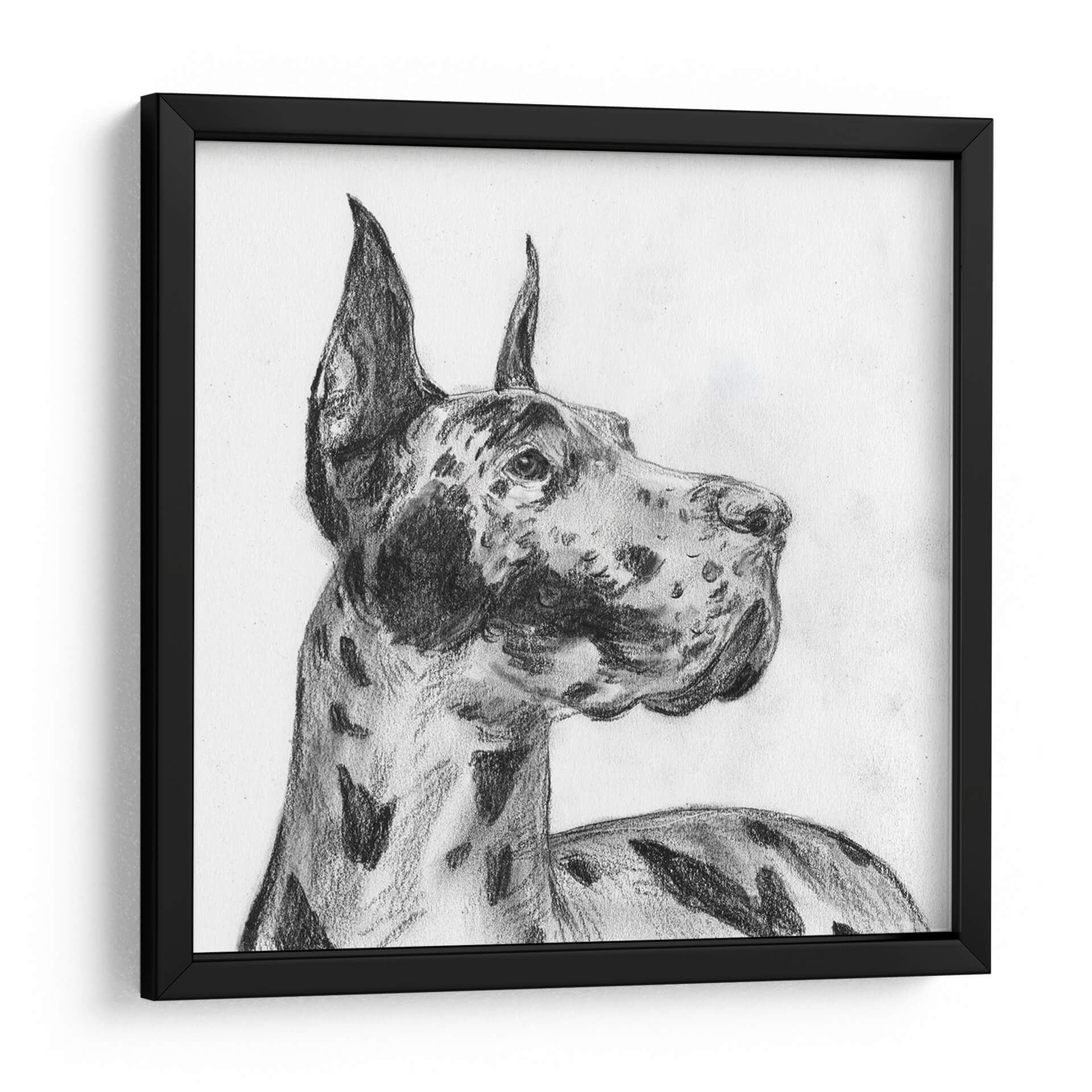 Captura la elegancia majestuosa y el espíritu noble con este impresionante cuadro decorativo de un Gran Danés. Realizado con una técnica de lápiz magistral por la artista Melissa Wang, este retrato realista evoca una sensación de calma y presencia imponente. Los detalles en blanco y negro resaltan la textura del pelaje moteado y la mirada profunda del can, transmitiendo una conexión emocional instantánea. Su composición, centrada en la cabeza y el cuello del perro, crea un punto focal dinámico y a la vez sereno, ideal para espacios que buscan un toque de sofisticación y carácter. Este cuadro decorativo es perfecto para los amantes de los animales, especialmente para aquellos admiradores de la raza Gran Danés, aportando calidez y personalidad a cualquier estancia. Ya sea en una sala de estar moderna, un estudio acogedor o una oficina, esta obra de arte en blanco y negro se integra armoniosamente, ofreciendo una pieza de conversación única y atemporal. Añade un toque de arte figurativo realista y la lealtad incondicional de este magnífico animal a tu decoración.