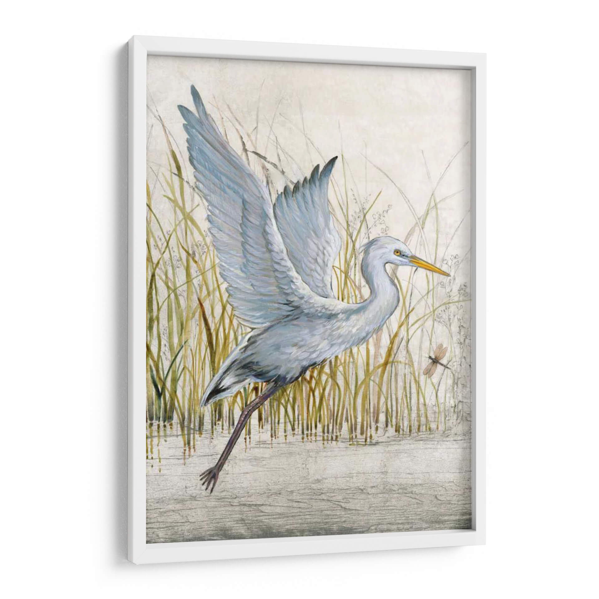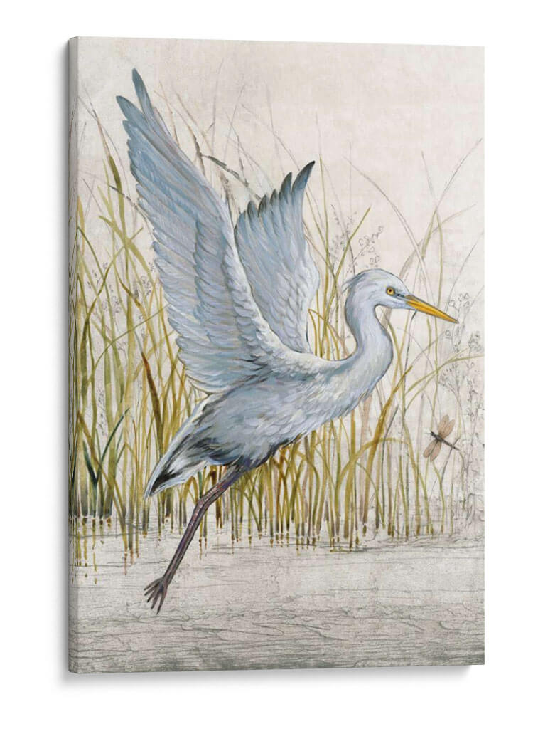 Sumérgete en la serenidad del "Heron Sanctuary I", una obra maestra de Tim O'Toole que captura la etérea elegancia de la naturaleza. Este cuadro decorativo presenta una garza de plumaje azul pálido, con sus alas desplegadas en un momento de gracia, enmarcada por un entorno de juncos dorados y aguas tranquilas. La paleta de colores se centra en tonos suaves y terrosos, con sutiles toques de amarillo en el pico de la garza y el vuelo de una libélula cercana, creando una atmósfera de paz y armonía. El estilo pictórico, reminiscentes de la acuarela o el gouache, aporta una textura delicada y una sensación de movimiento sutil, invitando a la contemplación. "Heron Sanctuary I" es ideal para añadir un toque de calma y sofisticación a cualquier espacio, ya sea un dormitorio que busca ser un refugio de paz, una sala de estar donde se anhela una conexión con la naturaleza, o una oficina que necesita un foco de serenidad. Este cuadro decorativo no solo embellece tu pared, sino que también transporta tu mente a un santuario natural, ofreciendo un escape visual y emocional. Su composición equilibrada y la delicadeza de sus trazos lo convierten en una adición perfecta para quienes valoran la belleza sutil y la tranquilidad en su decoración.