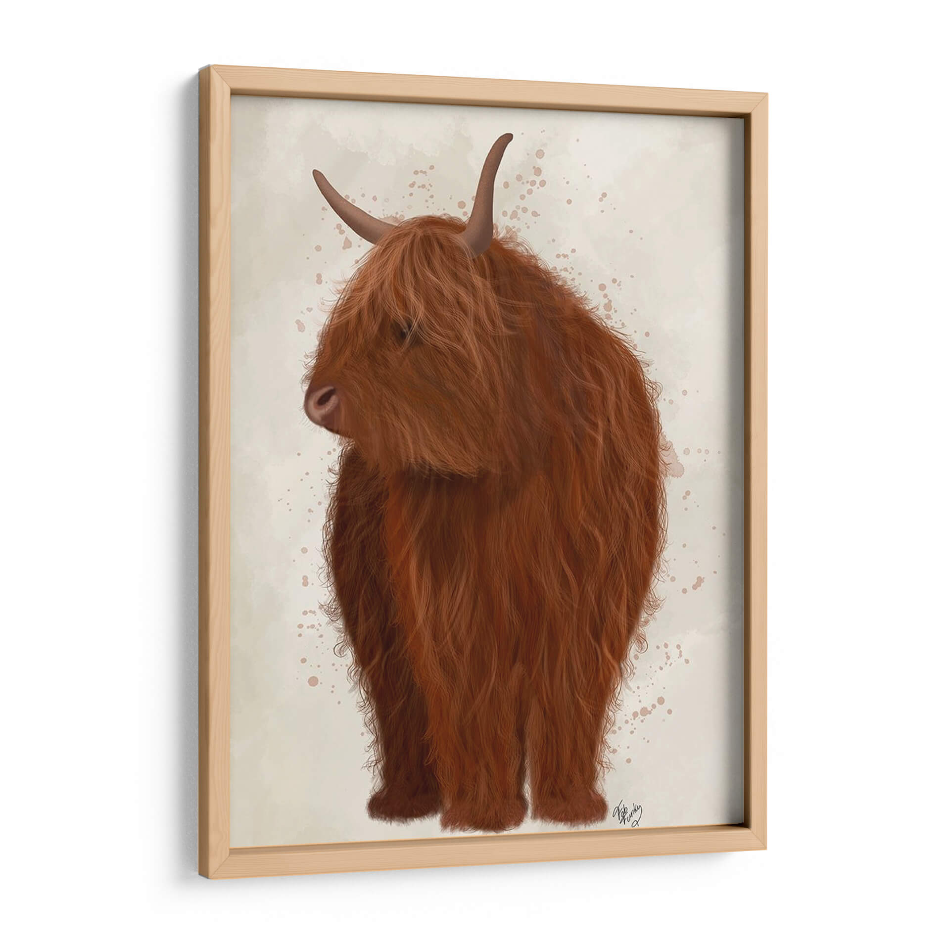 Este cuadro decorativo de una vaca de las Highlands captura la majestuosidad rústica y el encanto terroso de estas icónicas criaturas. La obra presenta un primer plano detallado de una vaca Highland con su característico pelaje largo y marrón rojizo, y sus imponentes cuernos. El fondo, de un tono beige suave y salpicado con delicadas manchas de acuarela en tonos rosados y marrones, crea una atmósfera sutil y elegante que permite que la figura del animal sea el foco principal. El estilo artístico combina elementos realistas en el rendering del pelaje con toques de acuarela en el fondo, resultando en una pieza contemporánea con un aire clásico. Es ideal para añadir un toque de calidez y personalidad a salones, comedores o espacios rústicos y de estilo granja. La expresión serena del animal y la paleta de colores cálidos invitan a la contemplación y aportan una sensación de conexión con la naturaleza. Este cuadro es perfecto para los amantes de los animales, la vida rural o para quienes buscan una pieza de arte única que despierte conversaciones y añada carácter a su hogar.
