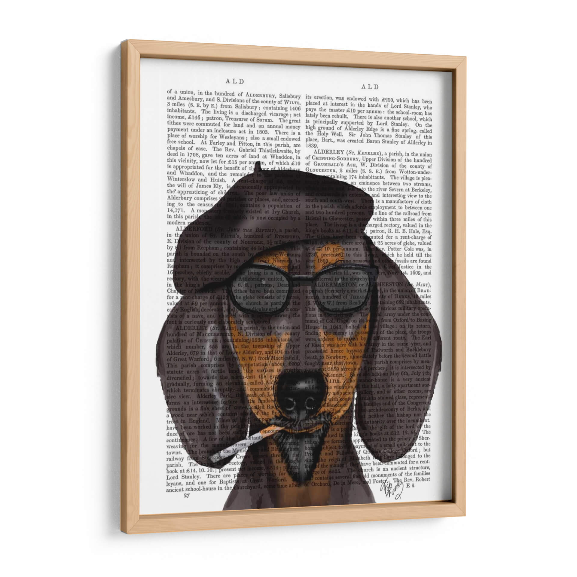 Este cautivador cuadro decorativo presenta un Dachshund de estilo "hipster" con un collar llamativo, enmarcado por un texto antiguo que evoca una sensación de nostalgia y sofisticación. La obra combina a la perfección el encanto del mundo animal con un toque vintage, creando una pieza única que aportará personalidad a cualquier espacio. Los tonos neutros del fondo de texto y el pelaje del perro, junto con los sutiles acentos de color del accesorio, hacen que esta obra sea increíblemente versátil, ideal para salones modernos, estudios eclécticos o incluso como un punto focal inesperado en una oficina. La expresión serena del perro y el contraste con el contexto histórico del texto invitan a la reflexión y a la admiración, convirtiendo este cuadro en mucho más que una simple decoración; es una declaración de estilo y un guiño a la cultura pop. Perfecto para amantes de los perros y apasionados del arte con un sentido del humor refinado, este "Dachshund Hipster" transformará tus paredes en una galería de arte personal y llena de carácter.