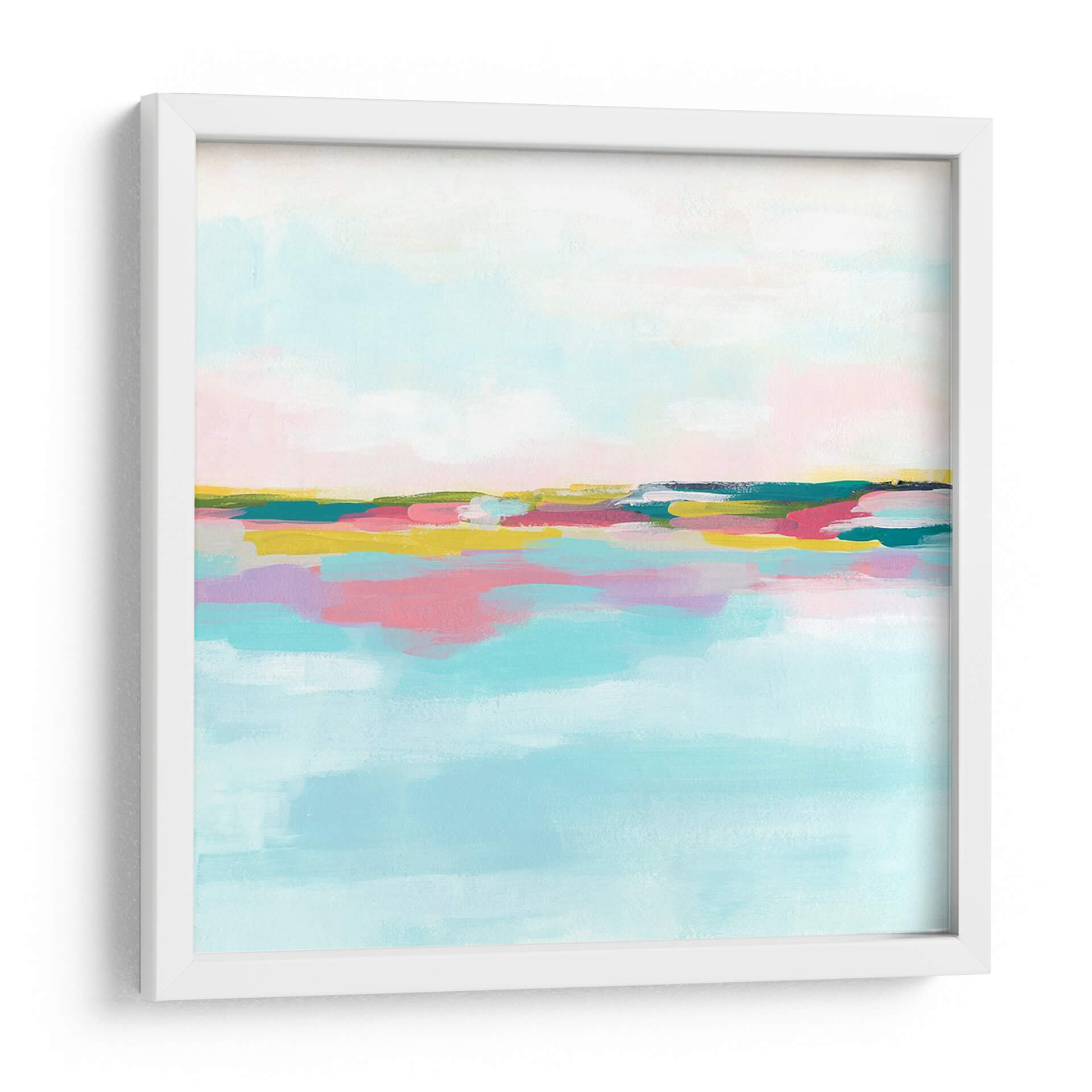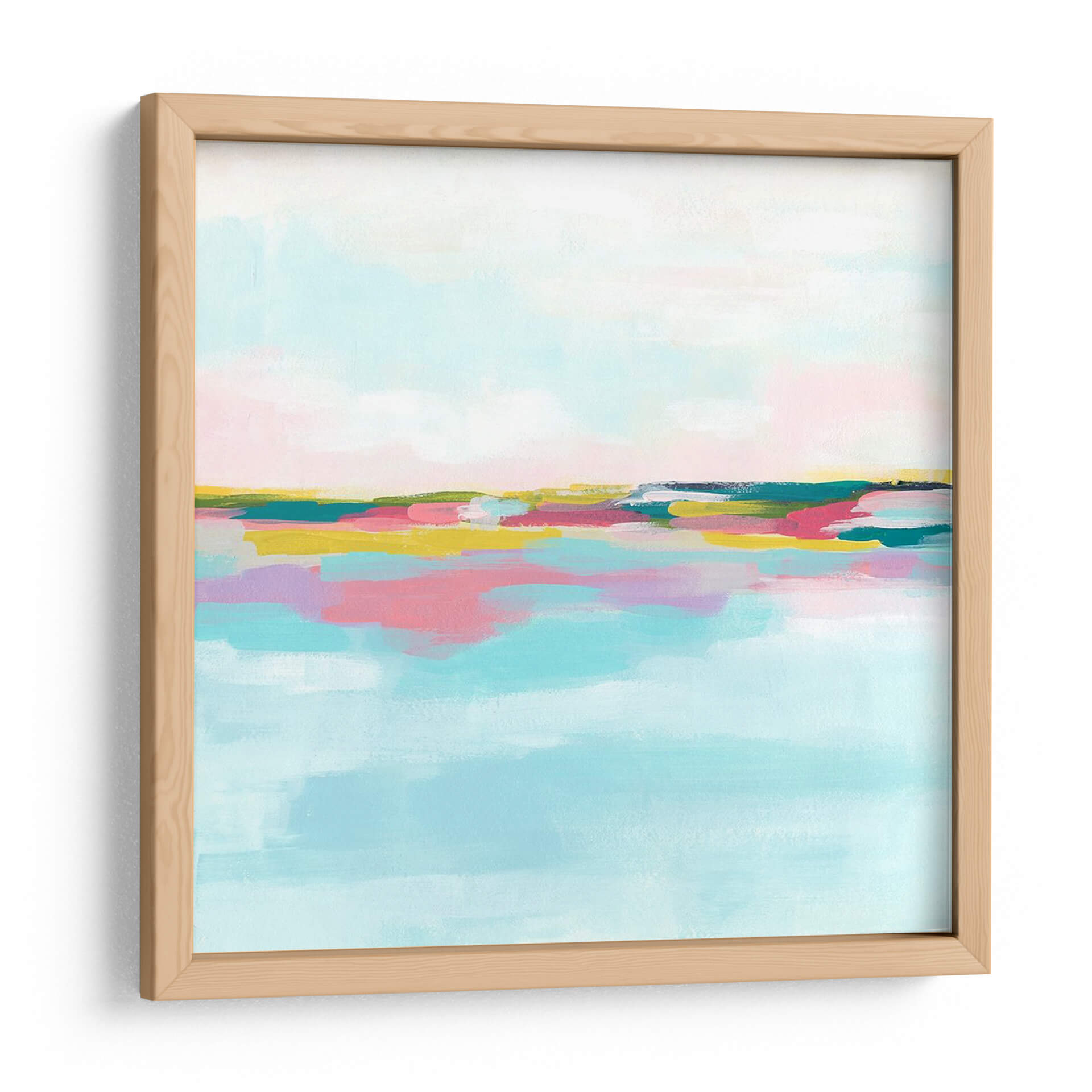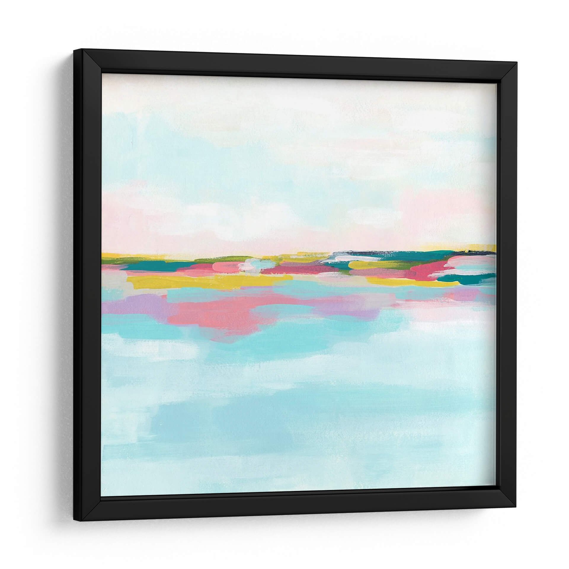 Transforma tu espacio con el cautivador cuadro decorativo "Horizonte Del Arco Iris I" de June Erica Vess. Esta obra de arte abstracto evoca la serenidad de un amanecer o atardecer etéreo, con pinceladas delicadas que fusionan tonos pastel de azul cielo, rosa suave, lavanda y toques vibrantes de amarillo y verde. La composición horizontal, sutilmente dividida, sugiere un paisaje liminal entre el cielo y la tierra, o quizás un reflejo en aguas tranquilas. Es una pieza que infunde calma y optimismo, perfecta para añadir un toque de color suave y sofisticación a cualquier habitación. Ideal para salones, dormitorios o espacios de trabajo que busquen un ambiente relajante y moderno. Este cuadro decorativo abstracto es una invitación a la contemplación, aportando una atmósfera de paz y belleza sutil. Su paleta de colores armoniosa lo convierte en un complemento versátil para diversas decoraciones, desde la escandinava hasta la contemporánea.