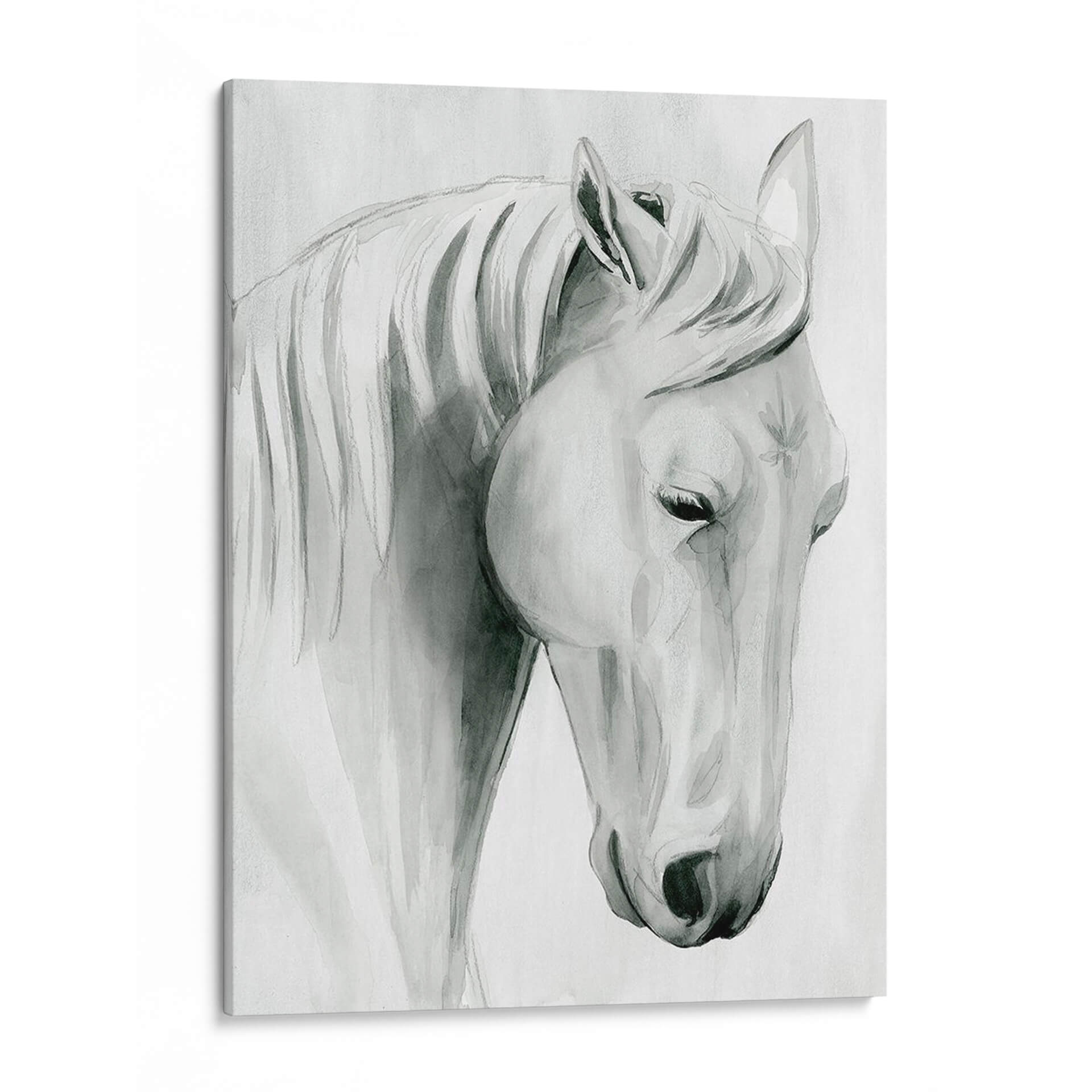 Sumérgete en la elegancia serena del cuadro decorativo "Horse Whisper II" de Grace Popp. Esta cautivadora obra de arte captura la esencia de un caballo con una delicadeza excepcional, utilizando una paleta de grises y blancos que evoca calma y sofisticación. La técnica de acuarela, con sus trazos fluidos y translúcidos, dota a la pieza de una ligereza etérea, haciendo que la figura del caballo parezca emerger suavemente del fondo. La composición se centra en el perfil del animal, resaltando la nobleza de su cabeza y la suavidad de su crin. La expresión introspectiva del caballo sugiere una conexión profunda y silenciosa, invitando a la contemplación. "Horse Whisper II" es ideal para añadir un toque de distinción y tranquilidad a cualquier espacio, ya sea una sala de estar moderna, un dormitorio sereno o una oficina que busque un ambiente de paz y concentración. Este cuadro decorativo no es solo una pieza de arte, sino una ventana a la belleza y la fuerza de la naturaleza, fusionada con la sensibilidad contemporánea de Grace Popp, perfecta para quienes aprecian el arte minimalista y evocador.