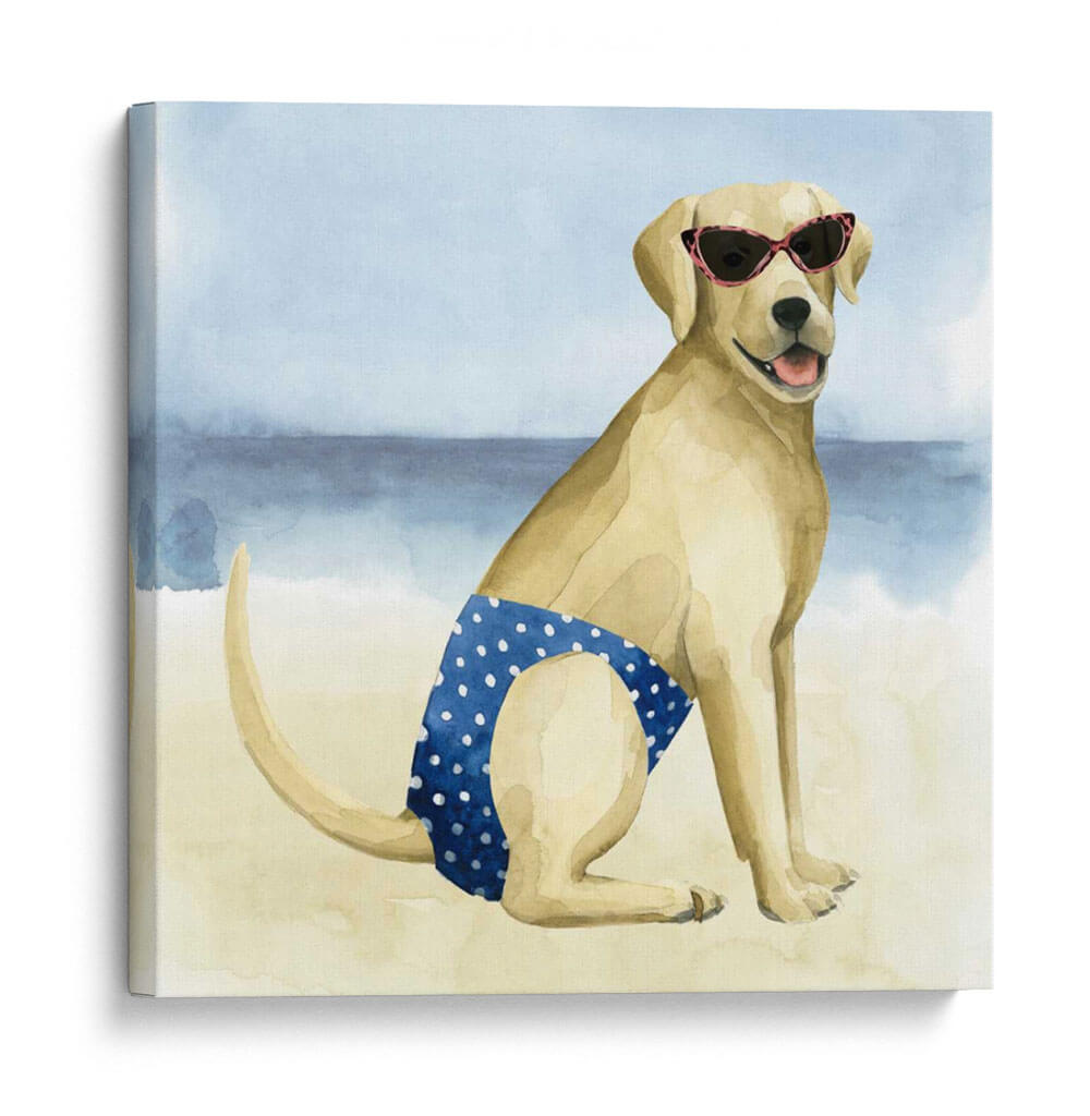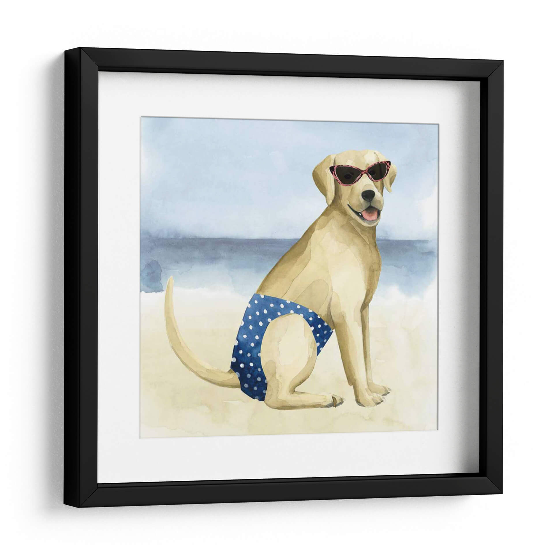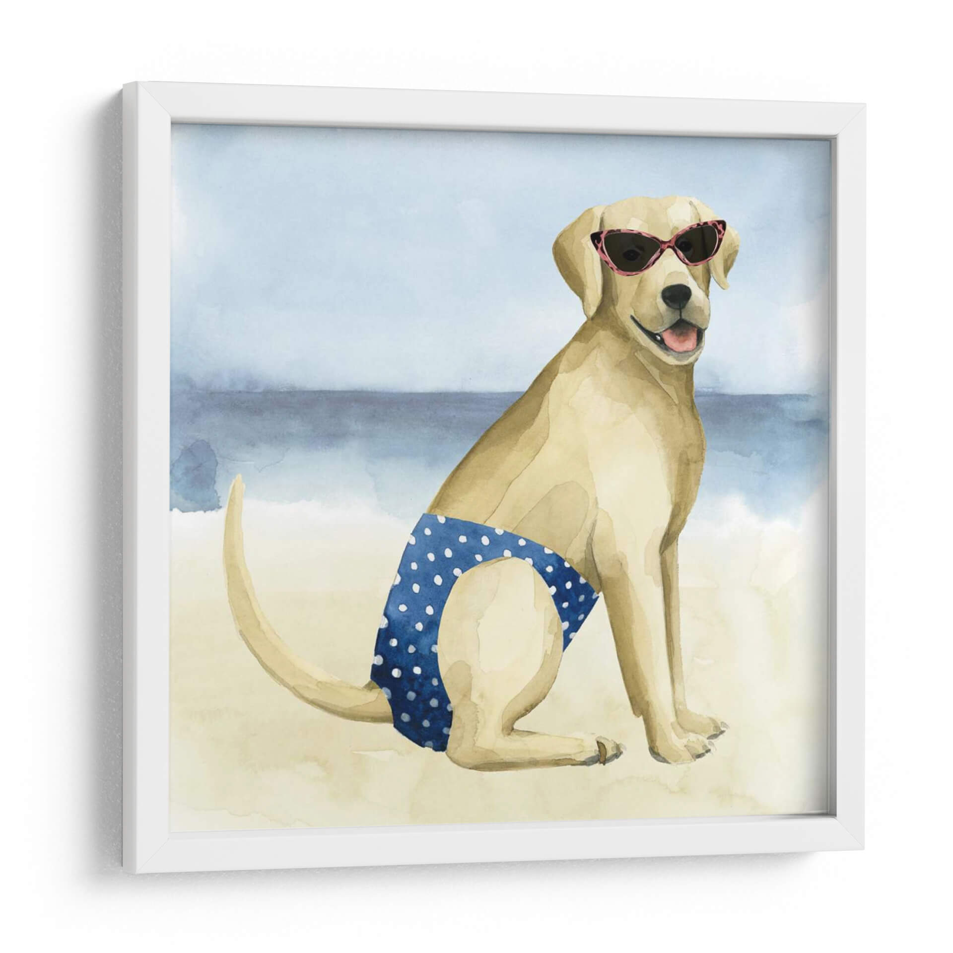 Transforma tu espacio con el encantador cuadro decorativo 'Hot Dog Iii' de Grace Popp. Esta obra captura la alegría y el espíritu juguetón de un labrador dorado sentado en la playa, luciendo unas divertidas gafas de sol y un traje de baño de lunares azules. La técnica de acuarela evoca una atmósfera relajada y veraniega, con suaves tonos azules del mar y la arena que complementan el cálido pelaje del perro. Ideal para añadir un toque de humor y personalidad a cualquier habitación, desde la sala de estar hasta un dormitorio o incluso una oficina con un ambiente informal. Este cuadro es perfecto para los amantes de los perros y aquellos que buscan piezas únicas que transmitan felicidad y un aire vacacional. La composición centrada en el simpático animal invita a la sonrisa y crea un punto focal acogedor. Dale vida a tus paredes con esta pieza que evoca días soleados y momentos de despreocupación, una adición perfecta para quienes aprecian el arte divertido y lleno de carácter.