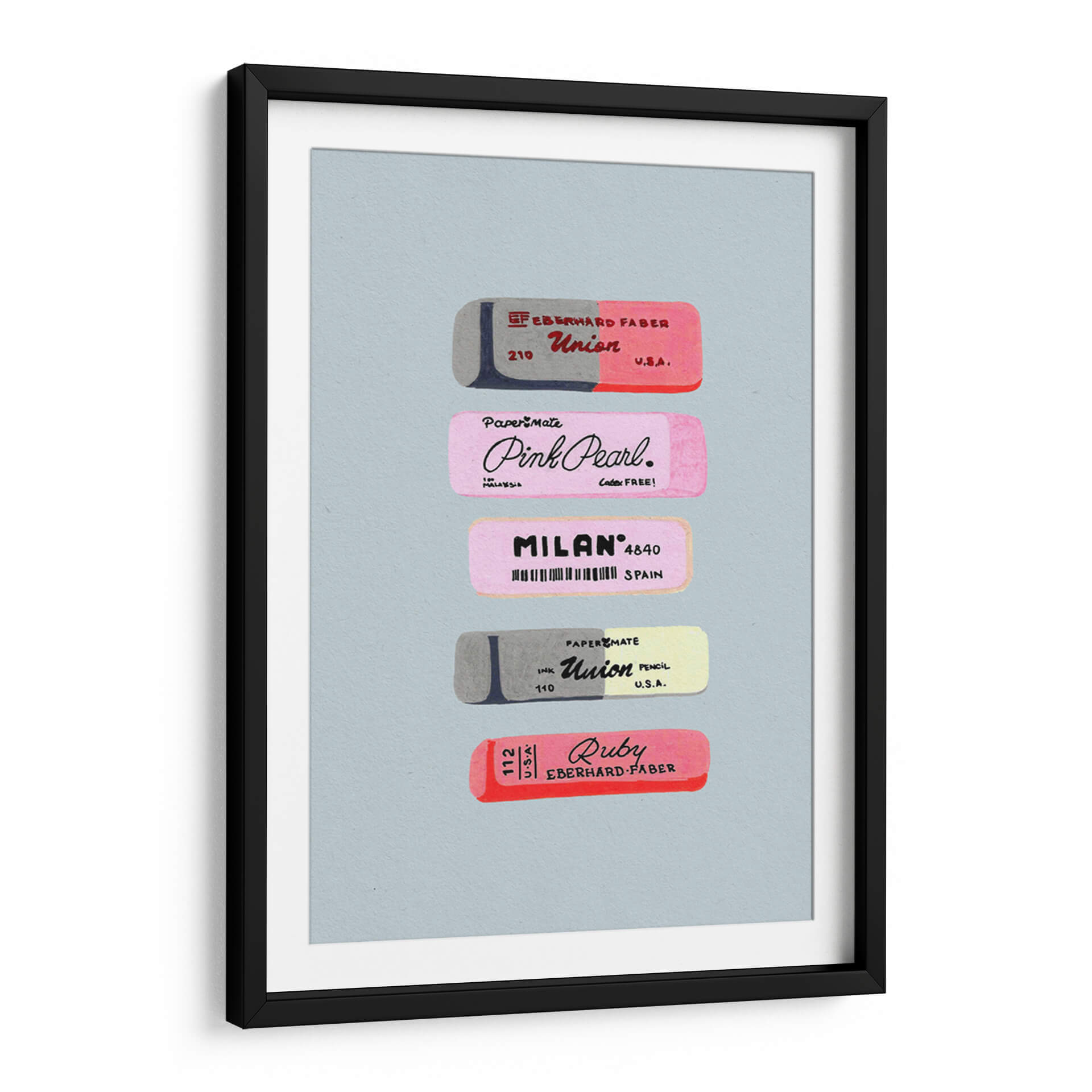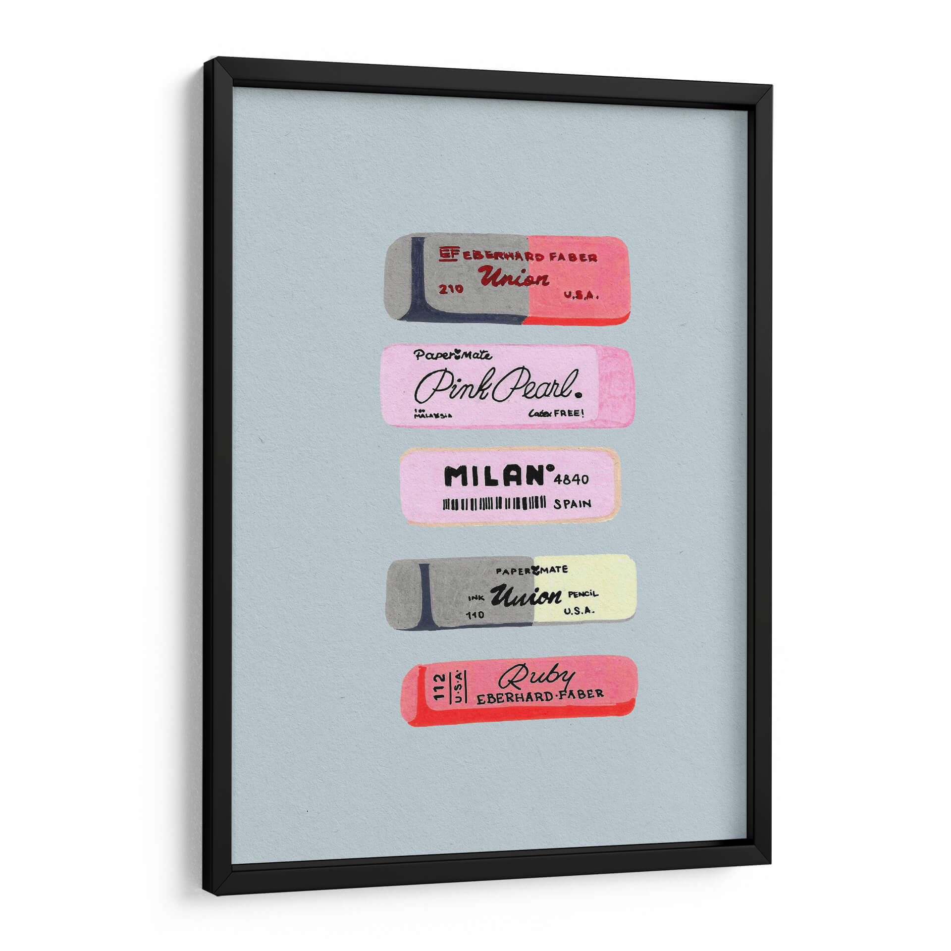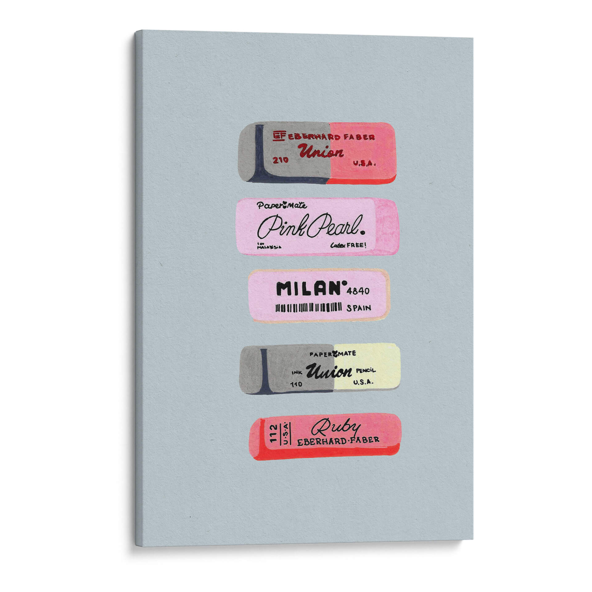 Sumérgete en el nostálgico mundo de las herramientas de escritura con este encantador cuadro decorativo que presenta una colección de borradores vintage. La obra de arte capta la esencia de la practicidad y el diseño de antaño, exhibiendo meticulosamente varios borradores con sus distintivos logotipos y marcas. Predominan los tonos pastel y grises, creando una atmósfera suave y retro que evoca recuerdos de la infancia y el ambiente escolar. La composición, centrada y simétrica, resalta cada pieza individualmente, permitiendo apreciar los detalles de las etiquetas y los sutiles matices de color. Este cuadro decorativo es ideal para espacios que buscan un toque de originalidad y un guiño a la historia de los útiles de oficina. Perfecto para la decoración de un estudio, una oficina en casa o incluso una habitación infantil, este arte de pared aportará una sensación de orden y un encanto vintage único. Su estilo gráfico y su paleta de colores lo convierten en una pieza versátil que complementará tanto decoraciones modernas como clásicas, añadiendo un punto de interés visual y una pizca de historia a cualquier ambiente.