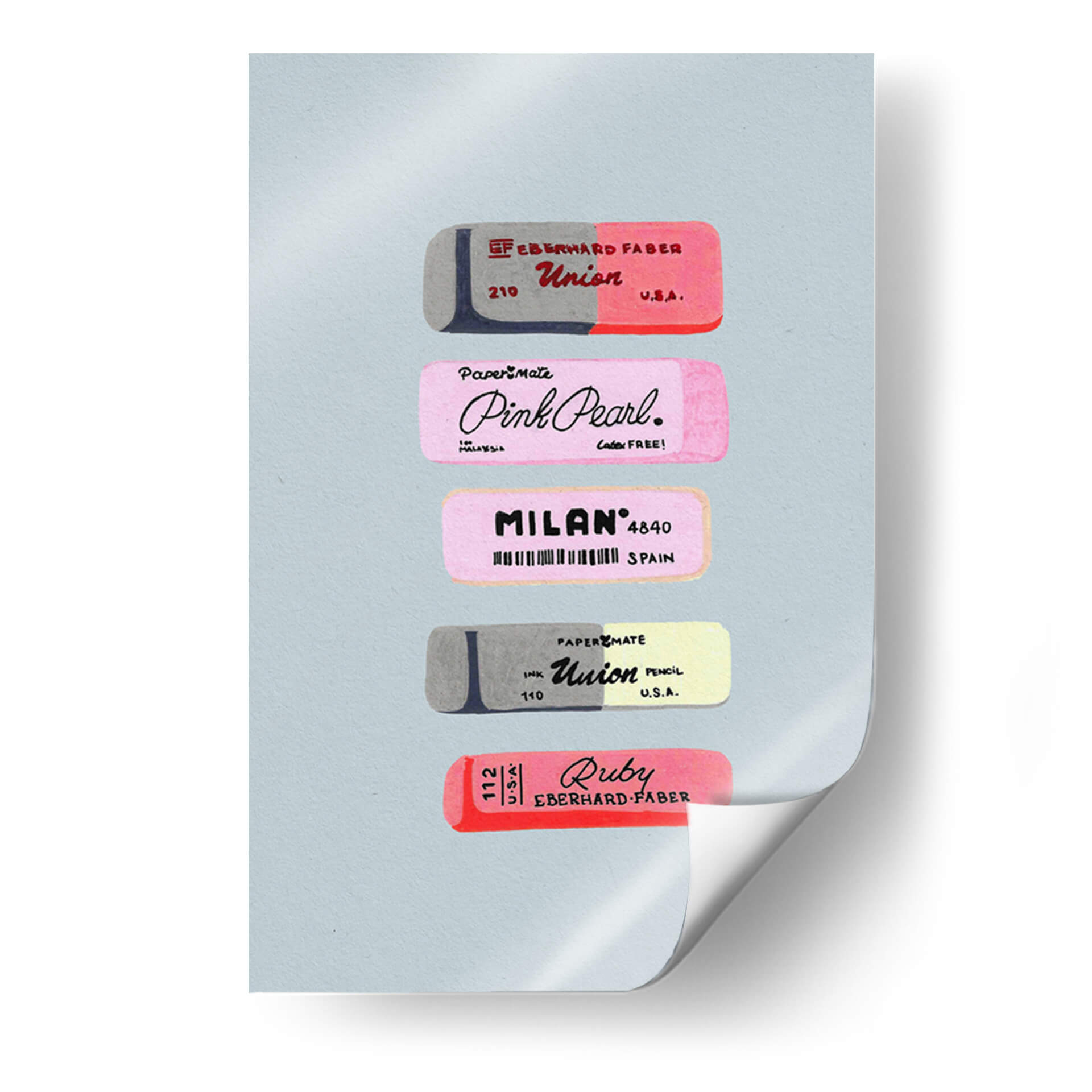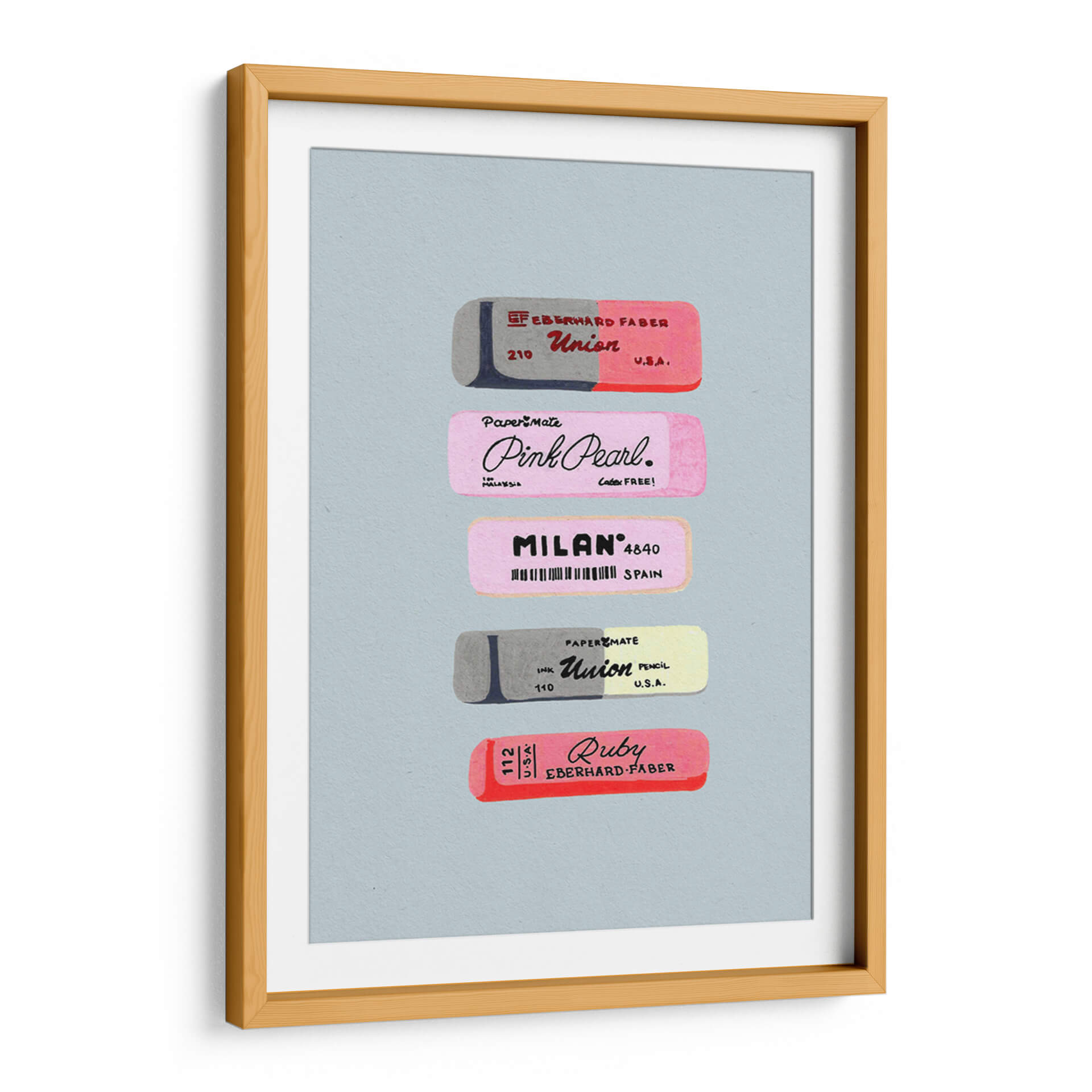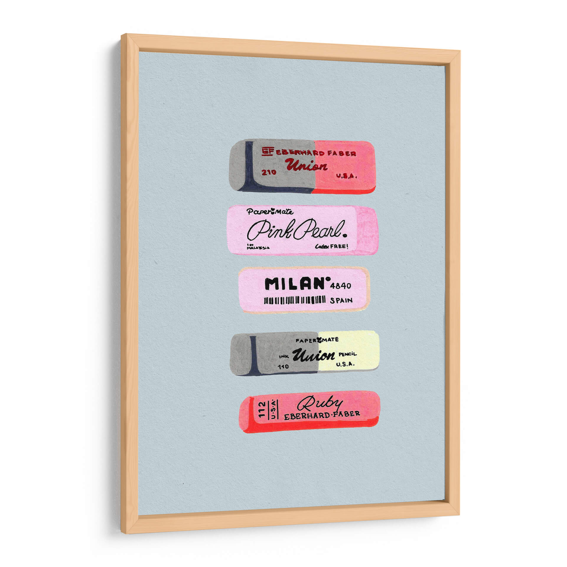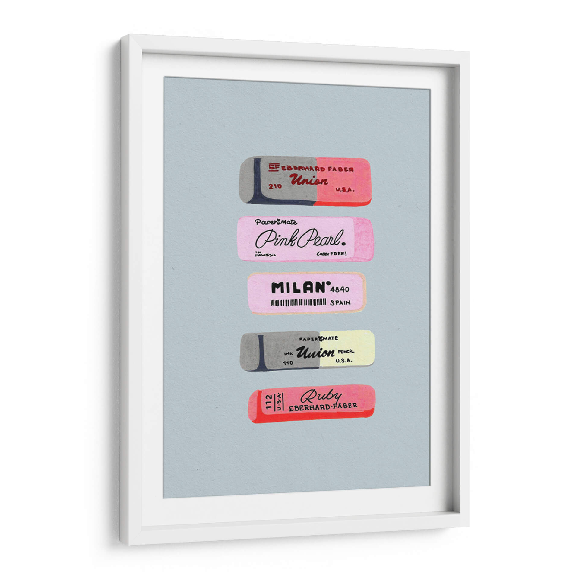Sumérgete en el nostálgico mundo de las herramientas de escritura con este encantador cuadro decorativo que presenta una colección de borradores vintage. La obra de arte capta la esencia de la practicidad y el diseño de antaño, exhibiendo meticulosamente varios borradores con sus distintivos logotipos y marcas. Predominan los tonos pastel y grises, creando una atmósfera suave y retro que evoca recuerdos de la infancia y el ambiente escolar. La composición, centrada y simétrica, resalta cada pieza individualmente, permitiendo apreciar los detalles de las etiquetas y los sutiles matices de color. Este cuadro decorativo es ideal para espacios que buscan un toque de originalidad y un guiño a la historia de los útiles de oficina. Perfecto para la decoración de un estudio, una oficina en casa o incluso una habitación infantil, este arte de pared aportará una sensación de orden y un encanto vintage único. Su estilo gráfico y su paleta de colores lo convierten en una pieza versátil que complementará tanto decoraciones modernas como clásicas, añadiendo un punto de interés visual y una pizca de historia a cualquier ambiente.