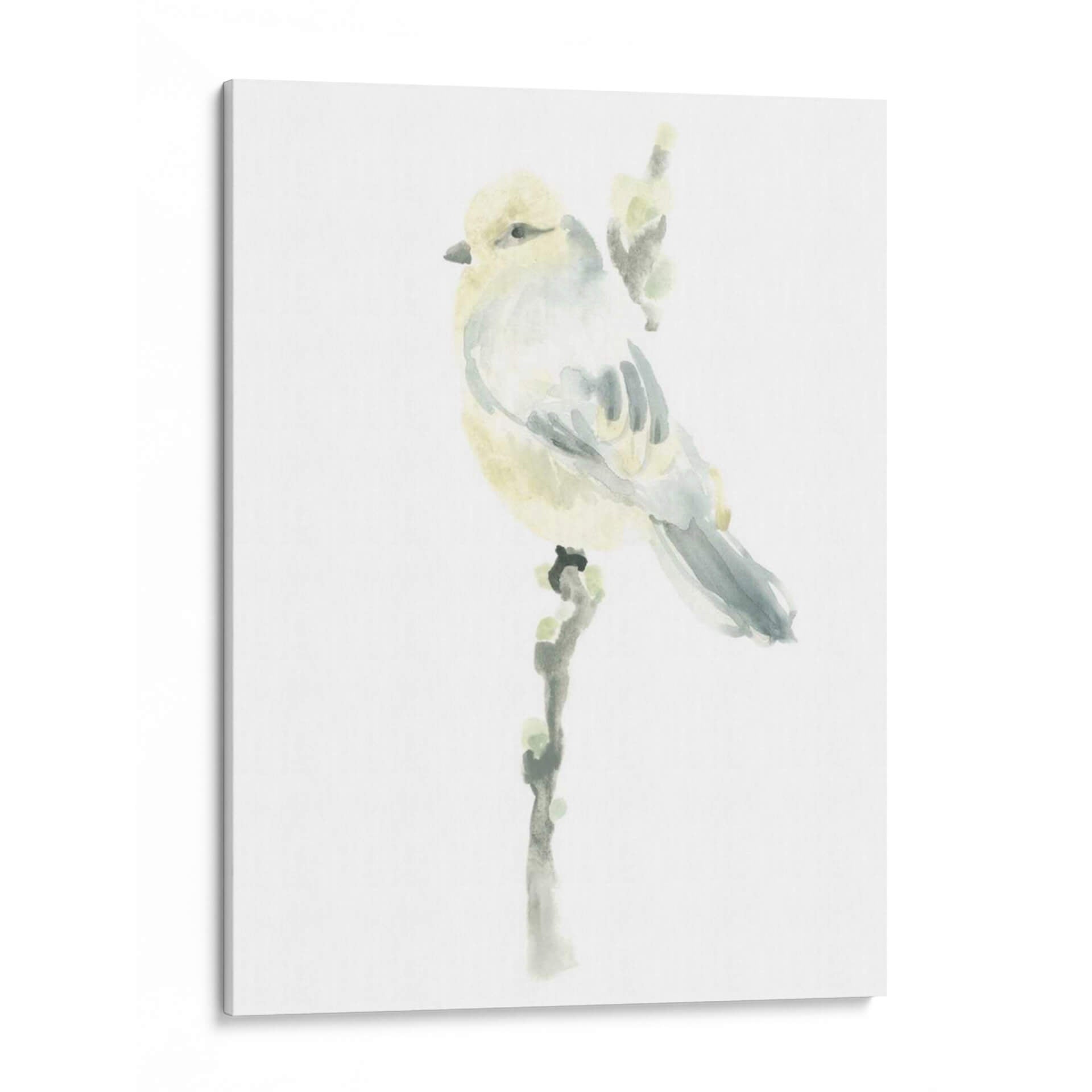 Captura la delicadeza de la naturaleza con "Impresiones Aviares I", una obra de arte que evoca serenidad y encanto. Este cuadro decorativo presenta un delicado pájaro posado en una rama, ejecutado con una técnica de acuarela etérea que difumina suavemente los contornos y crea una atmósfera de ensueño. La paleta de colores, dominada por tonos pastel de amarillo pálido, azul grisáceo y toques sutiles de verde, transmite una sensación de calma y tranquilidad, perfecta para añadir un toque de naturaleza serena a cualquier espacio. El estilo minimalista y la composición centrada en el sujeto principal hacen que esta pieza sea versátil, ideal para complementar decoraciones modernas, escandinavas o de inspiración natural. Imagina este cuadro como un punto focal suave en un dormitorio, un toque de frescura en una sala de estar o una adición inspiradora a tu estudio u oficina. "Impresiones Aviares I" no es solo una obra de arte, es una invitación a la contemplación y a la conexión con la belleza efímera del mundo natural, aportando una pieza de arte contemporáneo con una sensibilidad atemporal.