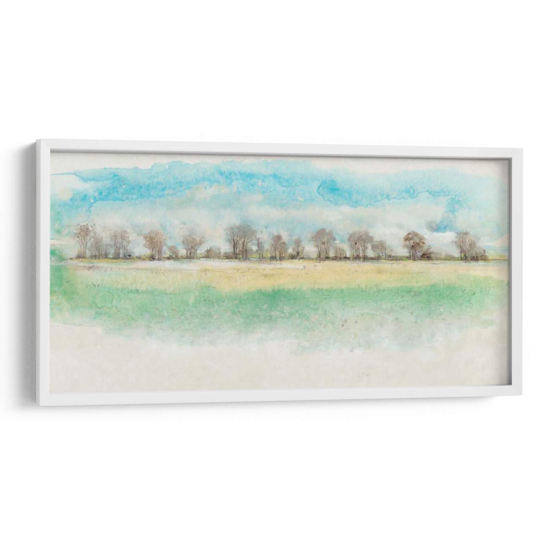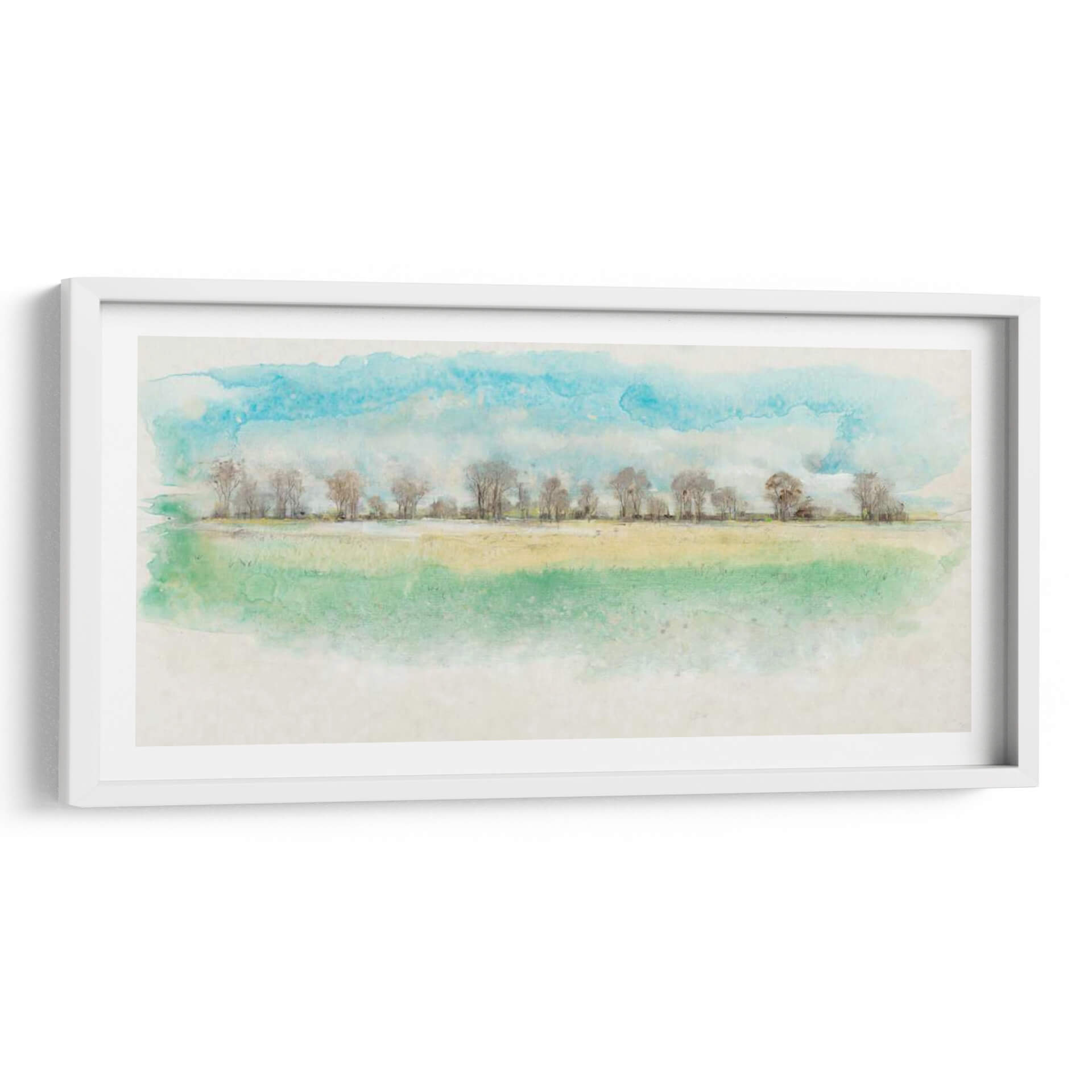 Sumérgete en la serenidad del campo con "Impresiones Treeline II" de Tim O'Toole, un cuadro decorativo que captura la esencia de un paisaje atemporal con una delicadeza acuarelada. Esta obra presenta una línea de árboles estilizados que se extiende a lo largo del horizonte, evocando una sensación de calma y amplitud. La paleta de colores se centra en tonos tierra suaves, verdes frescos y un cielo azul etéreo con pinceladas de acuarela vibrantes, creando una atmósfera de tranquilidad y conexión con la naturaleza. La composición horizontal y el estilo de pintura que recuerda a las acuarelas clásicas invitan a la contemplación y aportan una dosis de sofisticación discreta a cualquier espacio. Ideal para salones, dormitorios o estudios, este cuadro decorativo funciona como un punto focal sutil pero cautivador, aportando una sensación de paz y armonía. La técnica de O'Toole, que difumina los bordes y crea texturas fluidas, le da a la pieza una cualidad onírica y moderna. "Impresiones Treeline II" es más que una simple decoración; es una ventana a un momento de quietud y belleza natural, perfecta para quienes buscan infundir serenidad y estilo contemporáneo en su hogar u oficina.