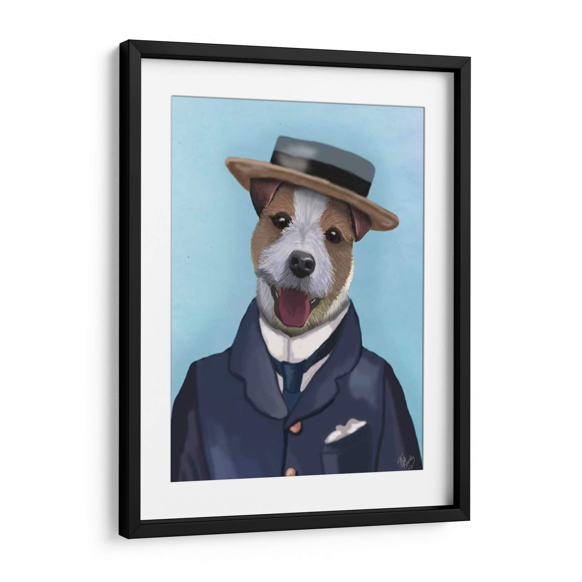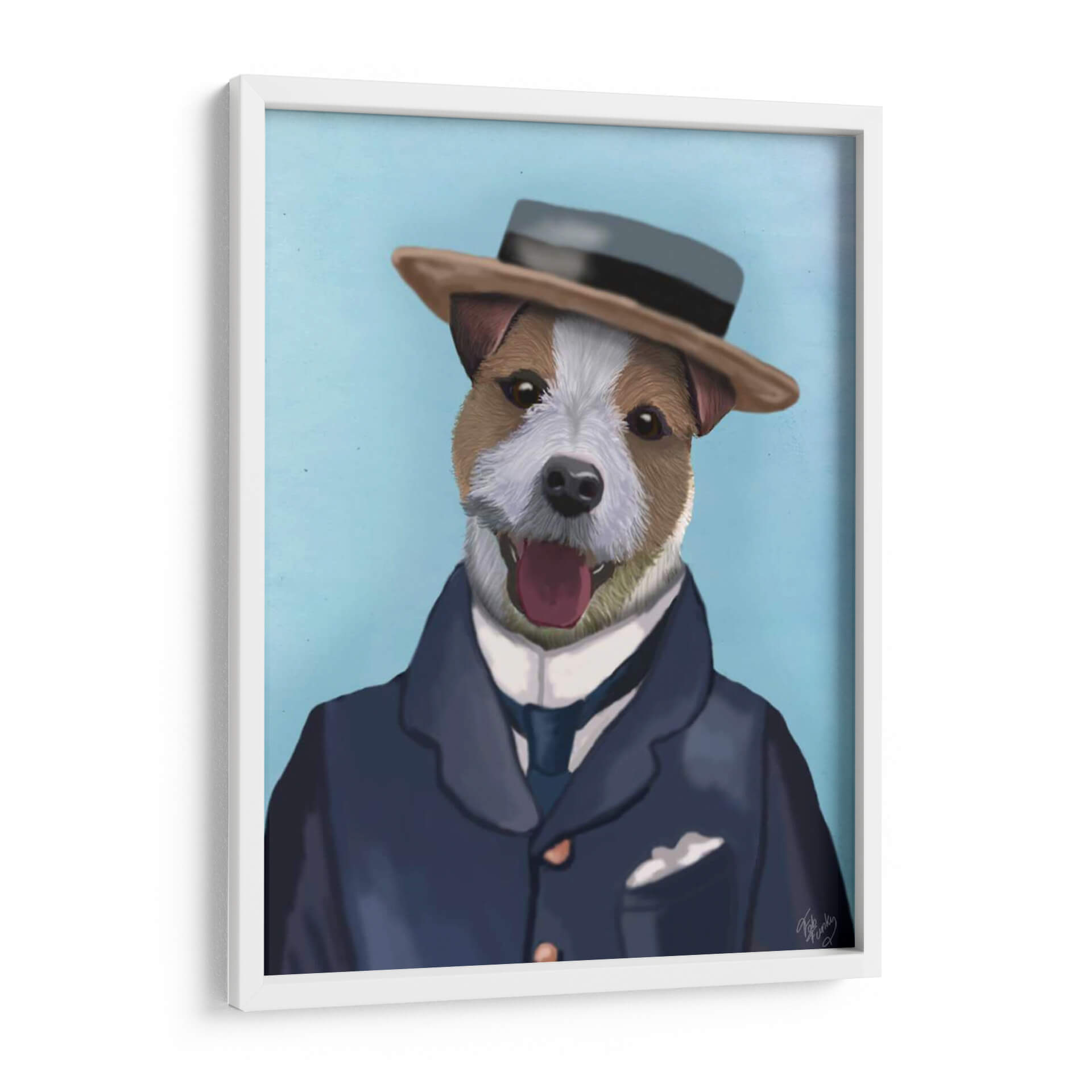 Este encantador cuadro decorativo 'Jack Russell En Boater' del artista Fab Funky captura la esencia de la elegancia canina con un toque de humor. La obra presenta un Jack Russell Terrier vestido con un traje formal y un sombrero de paja, posando contra un fondo azul cielo texturizado. La expresión juguetona del perro, con la lengua ligeramente fuera y los ojos vivaces, contrasta maravillosamente con la seriedad de su atuendo, creando una pieza que es a la vez sofisticada y accesible. La paleta de colores, dominada por azules profundos del traje, los tonos tierra del sombrero y el vibrante fondo azul, aporta una sensación de calma y positividad al conjunto. El estilo de la obra es una mezcla de realismo y un toque caricaturesco, lo que la hace única y memorable. Ideal para amantes de los perros, este cuadro decorativo aportará personalidad y un punto de conversación a cualquier sala de estar, estudio u oficina. Su composición centrada en el sujeto y la iluminación suave lo convierten en una adición versátil para diversos estilos de decoración, desde el clásico hasta el contemporáneo. Añade un toque de alegría y distinción a tu hogar con esta pieza artística excepcional.