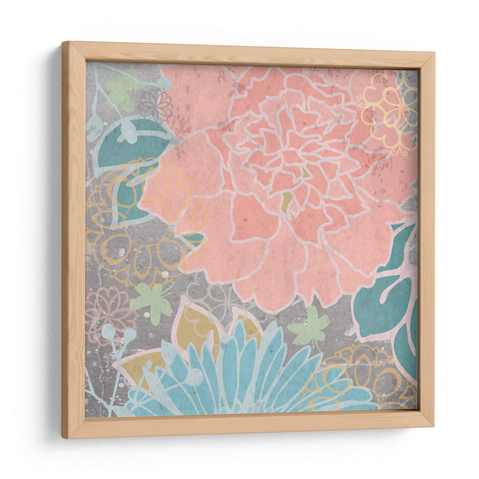 Sumérgete en la delicadeza floral con "Jardín Lago II", una obra de arte que transforma tu espacio en un oasis de calma y color. Este cuadro decorativo presenta un exuberante jardín interpretado a través de una paleta de colores pastel y vibrantes, donde las flores se entrelazan con un fondo texturizado que evoca la serenidad de un lago al amanecer. Las grandes flores en tonos coral y rosa se combinan armoniosamente con toques de turquesa y amarillo pálido, creando un contraste visual cautivador. El estilo artístico, que fusiona elementos botánicos con un toque abstracto y moderno, aporta una sensación de frescura y vitalidad. Ideal para dormitorios, salas de estar o cualquier rincón que necesite un soplo de naturaleza y elegancia contemporánea, "Jardín Lago II" invita a la contemplación y añade un punto focal lleno de encanto. La composición cuidadosa y la atmósfera onírica de esta pieza la convierten en la elección perfecta para quienes buscan un arte que inspire tranquilidad y belleza en su hogar.