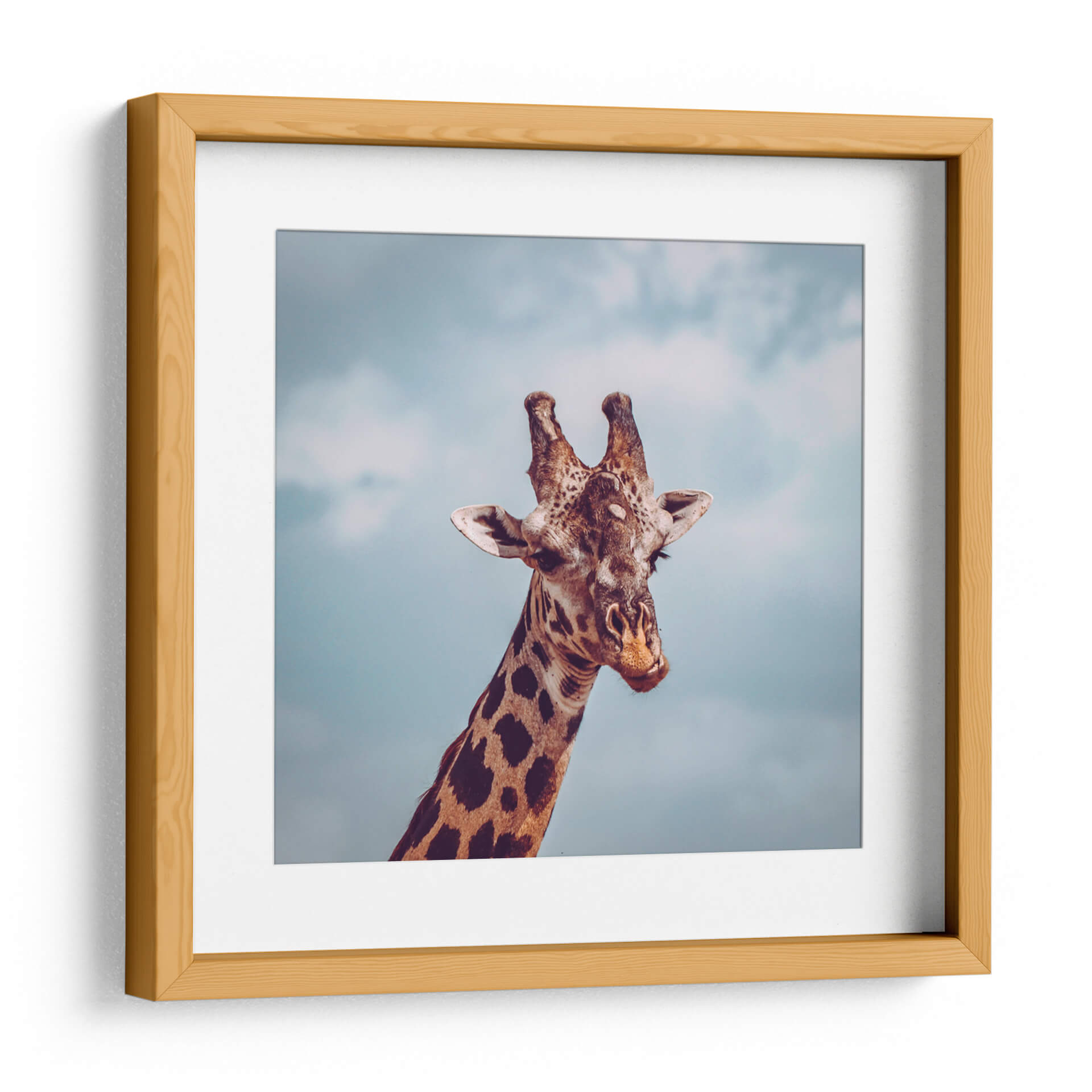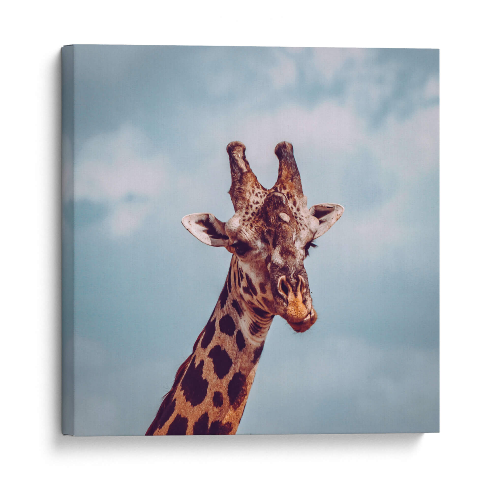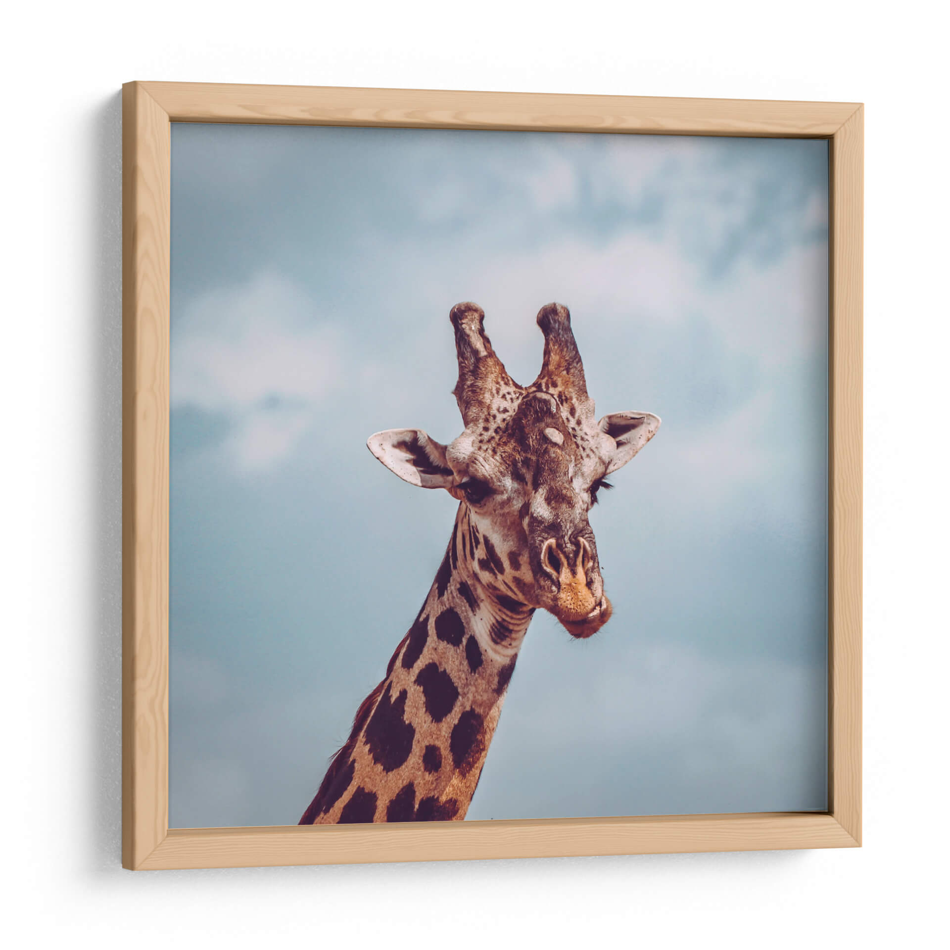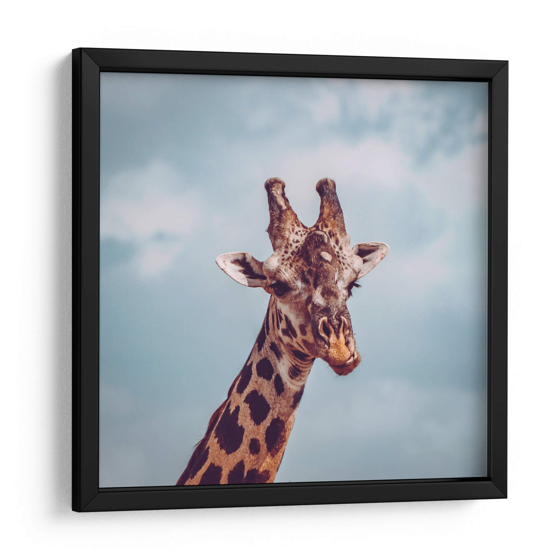 Captura la majestuosidad y la dulzura de la naturaleza con nuestro cuadro decorativo de jirafa. Esta cautivadora obra presenta un primer plano detallado de la cabeza y el cuello de una jirafa, con su icónica piel moteada en tonos tierra y ocres, que contrasta elegantemente con un fondo de cielo azul suave y etéreo, salpicado de nubes tenues. La composición se centra en la mirada penetrante y curiosa del animal, invitando a la reflexión y a la conexión con el reino animal. El estilo fotográfico y la paleta de colores serena, dominada por azules celestes y los cálidos marrones de la jirafa, crean una atmósfera de calma y serenidad, ideal para cualquier espacio que busque un toque de sofisticación natural. Este cuadro decorativo es perfecto para añadir un punto focal intrigante y lleno de carácter a salas de estar modernas, dormitorios acogedores u oficinas que deseen infundir un ambiente tranquilo y exótico. Transforma tu hogar en un santuario de paz con esta pieza única que evoca la belleza salvaje y la elegancia natural de una de las criaturas más fascinantes del planeta.