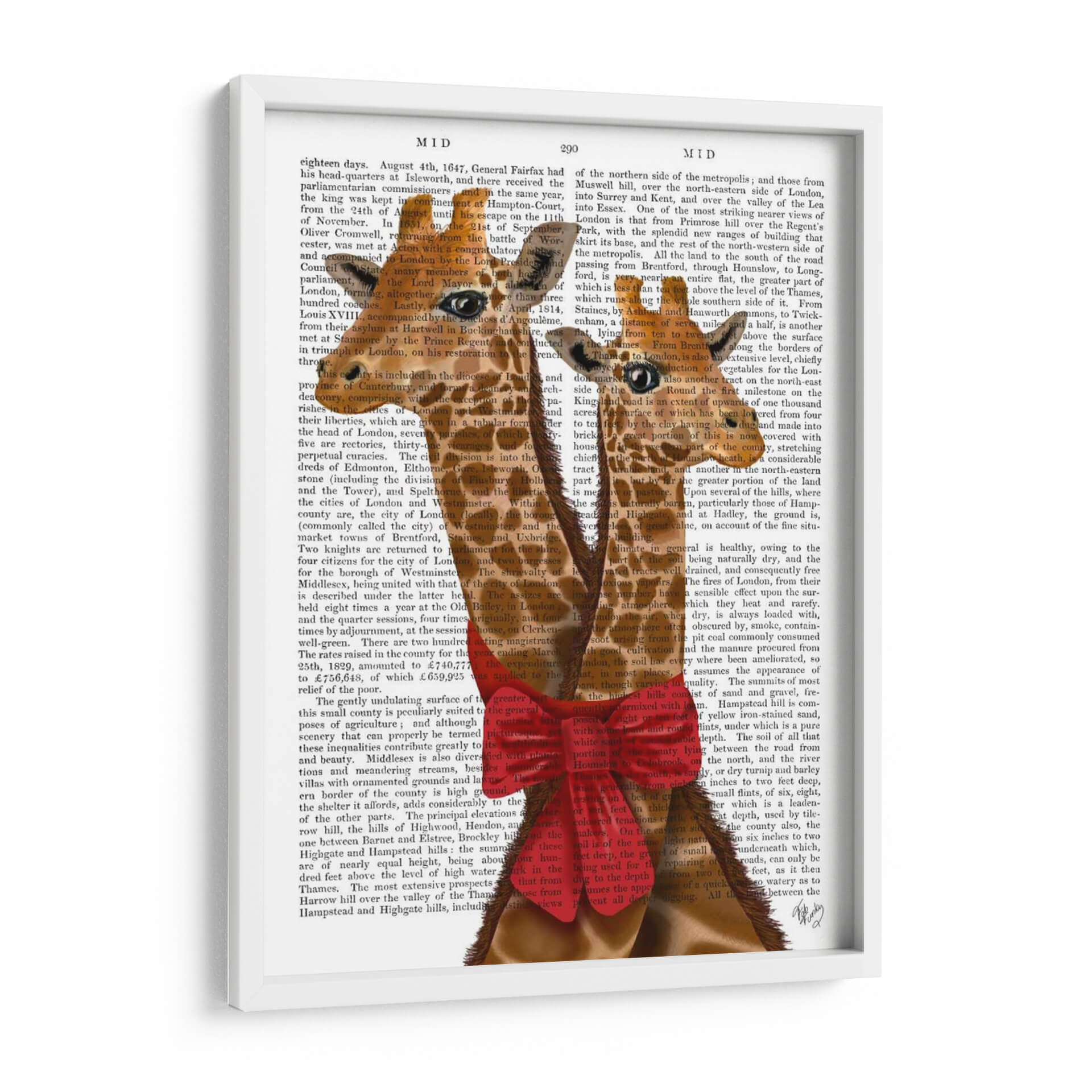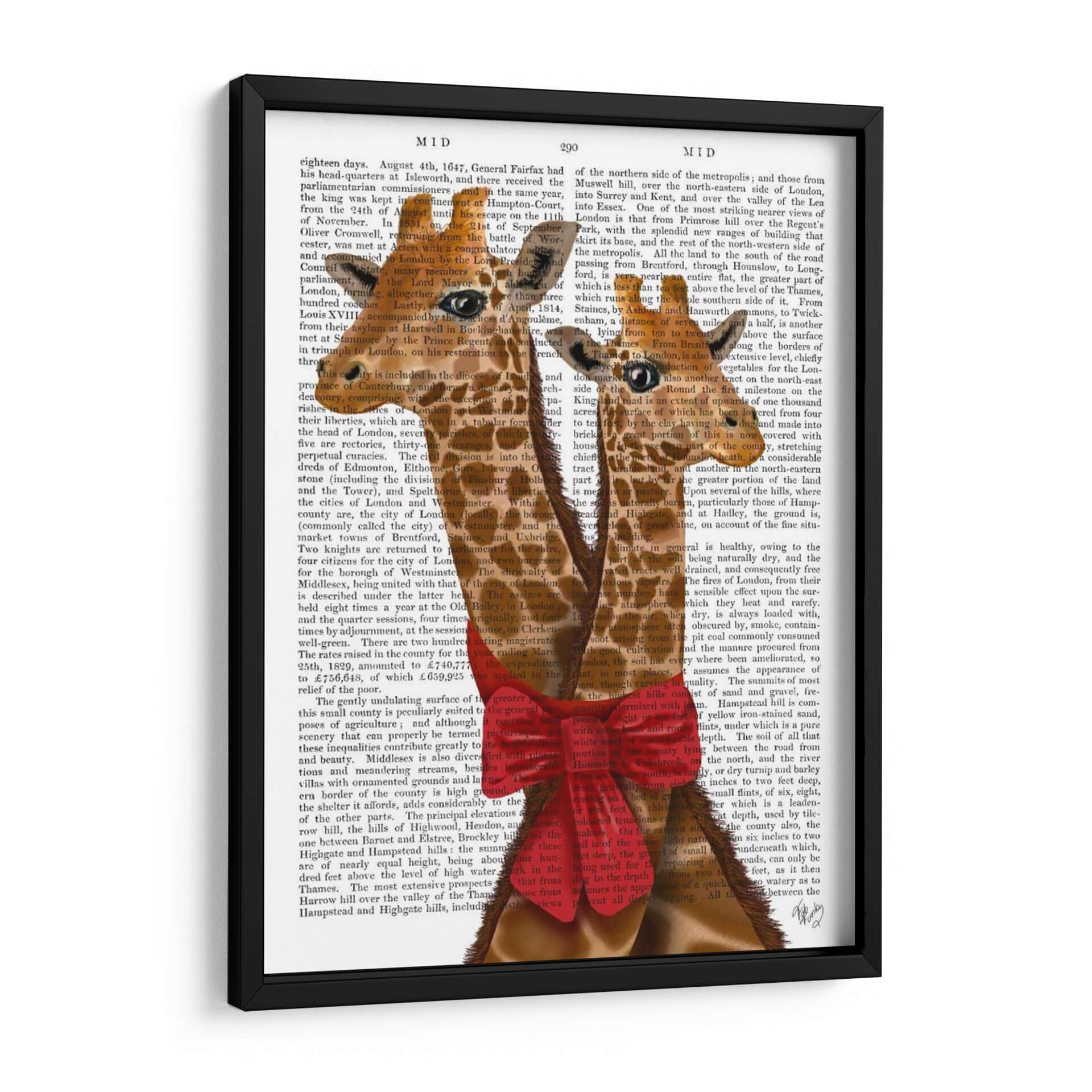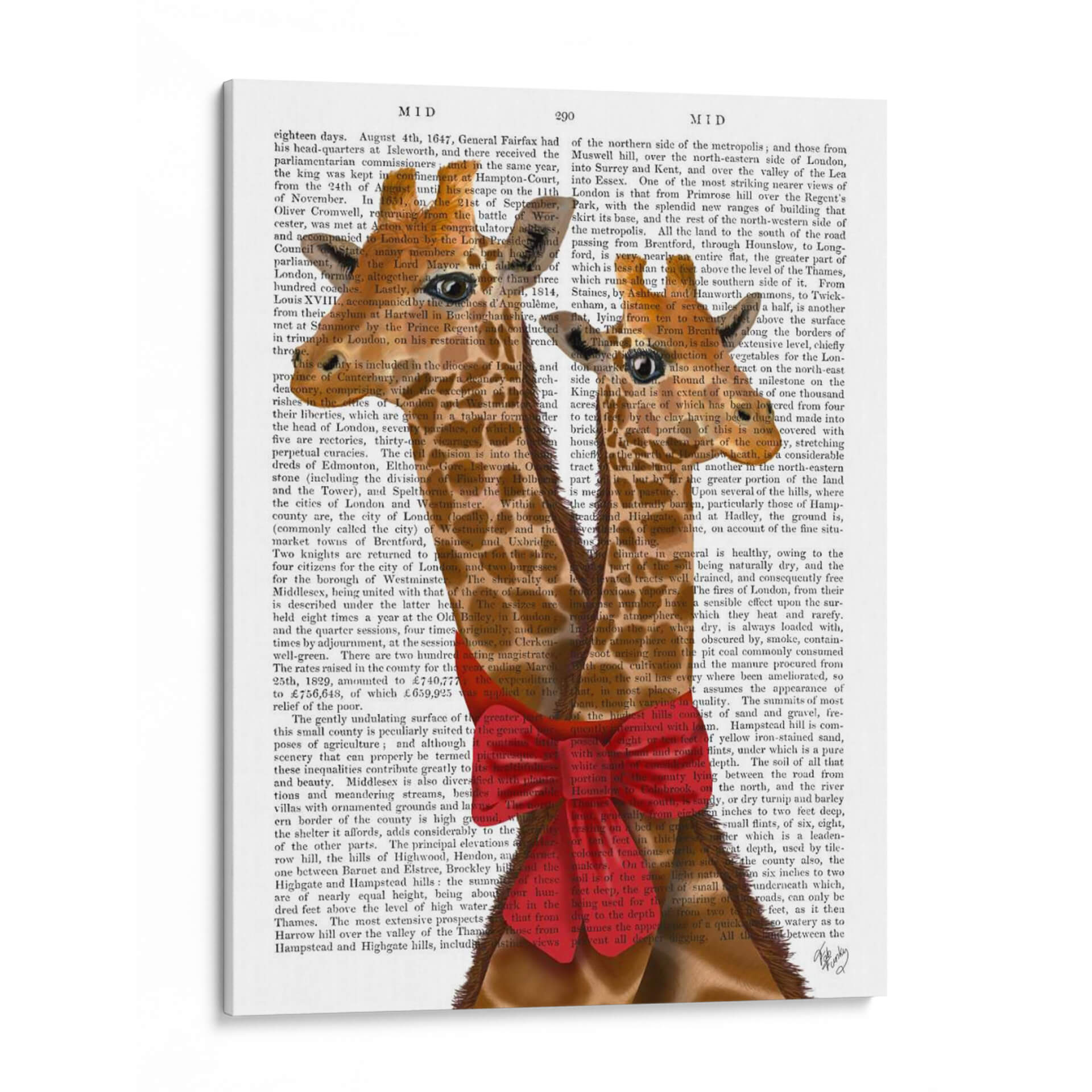 Sumérgete en la dulzura y el encanto de "Jirafas y Arco", una obra de arte decorativa que captura la imaginación. Este cuadro, creado por el artista Fab Funky, presenta dos jirafas amigables con sus cuellos entrelazados, adornadas con un llamativo lazo rojo, emergiendo de un fondo que simula texto antiguo. La paleta de colores es vibrante y alegre, con tonos cálidos que contrastan maravillosamente con el fondo neutro, creando un punto focal inmediato. El estilo juguetón y ligeramente surrealista de la pieza la hace perfecta para añadir un toque de personalidad y calidez a cualquier espacio. Imagina este cuadro decorativo en una sala de estar moderna, un dormitorio infantil o incluso una oficina que busque un ambiente más ameno. Su composición única y su temáticaTierna invitan a la conversación y evocan sentimientos de alegría y conexión. "Jirafas y Arco" no es solo una decoración de pared, sino una pieza que aporta una dosis de fantasía y buen humor a tu hogar, transformando cualquier habitación en un espacio más acogedor y lleno de vida. Descubre la magia de este lienzo que combina arte contemporáneo con un toque lúdico.