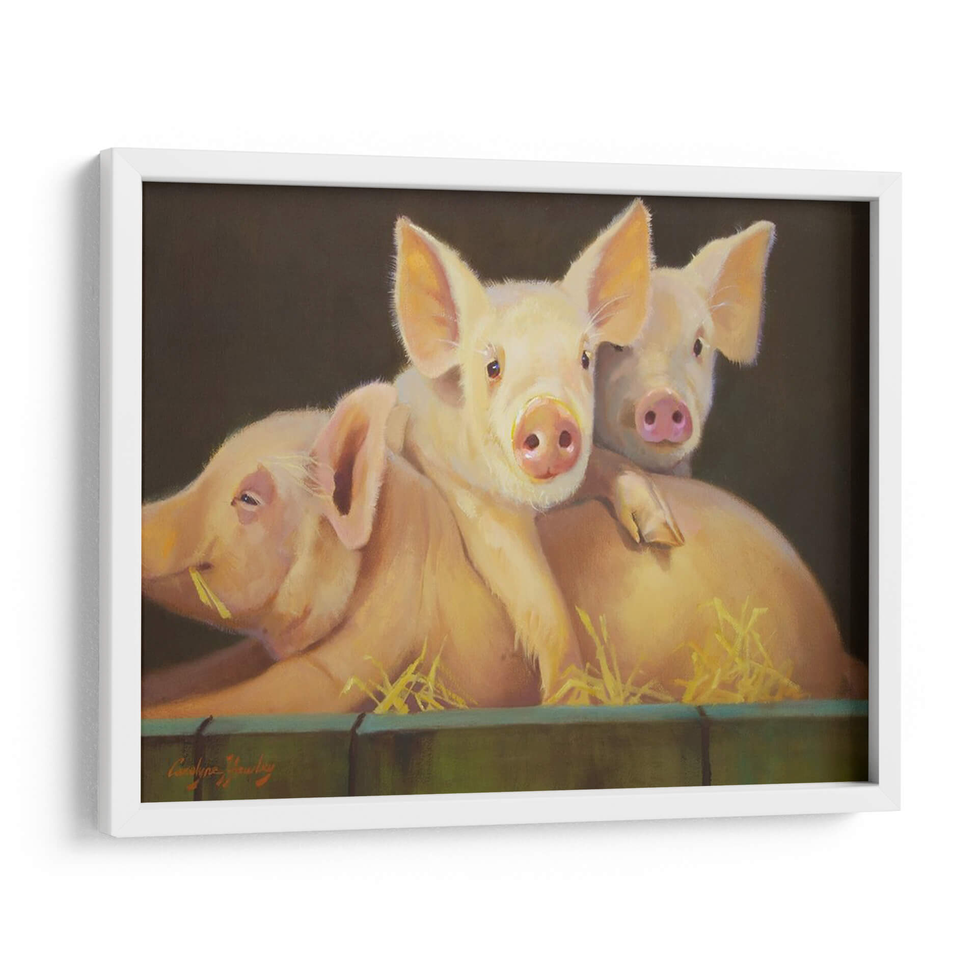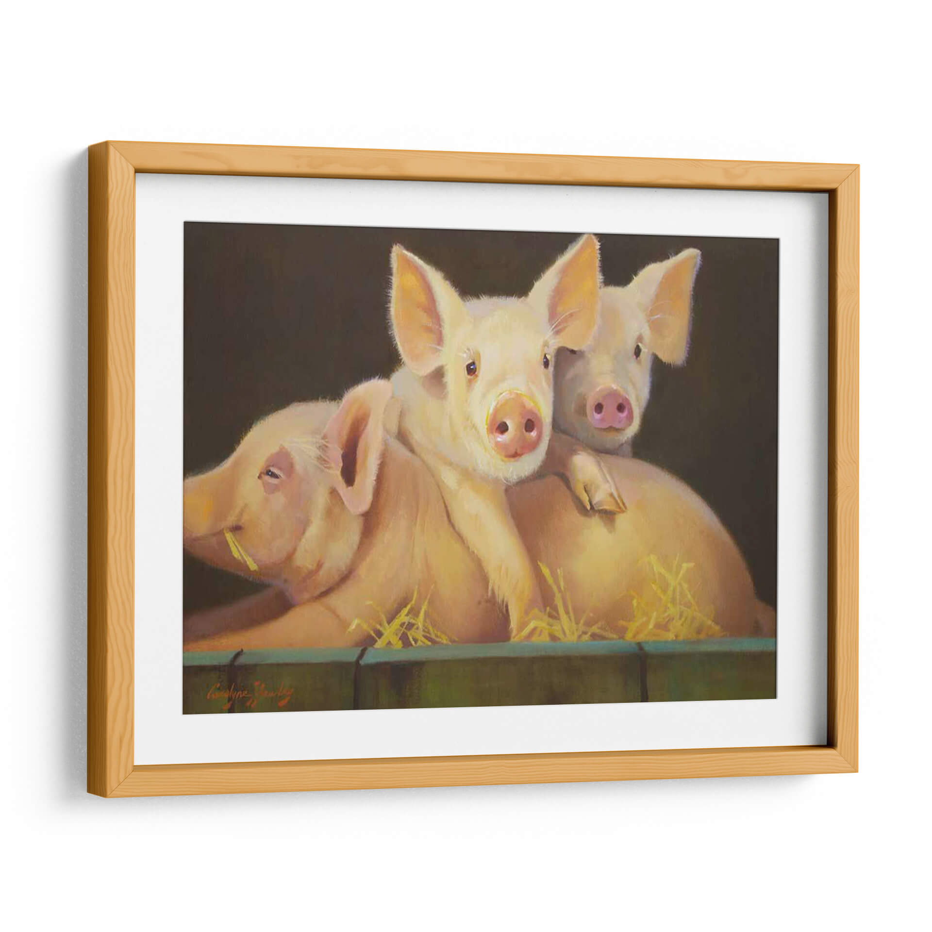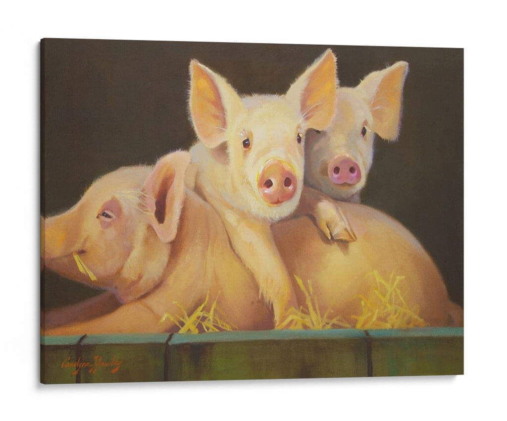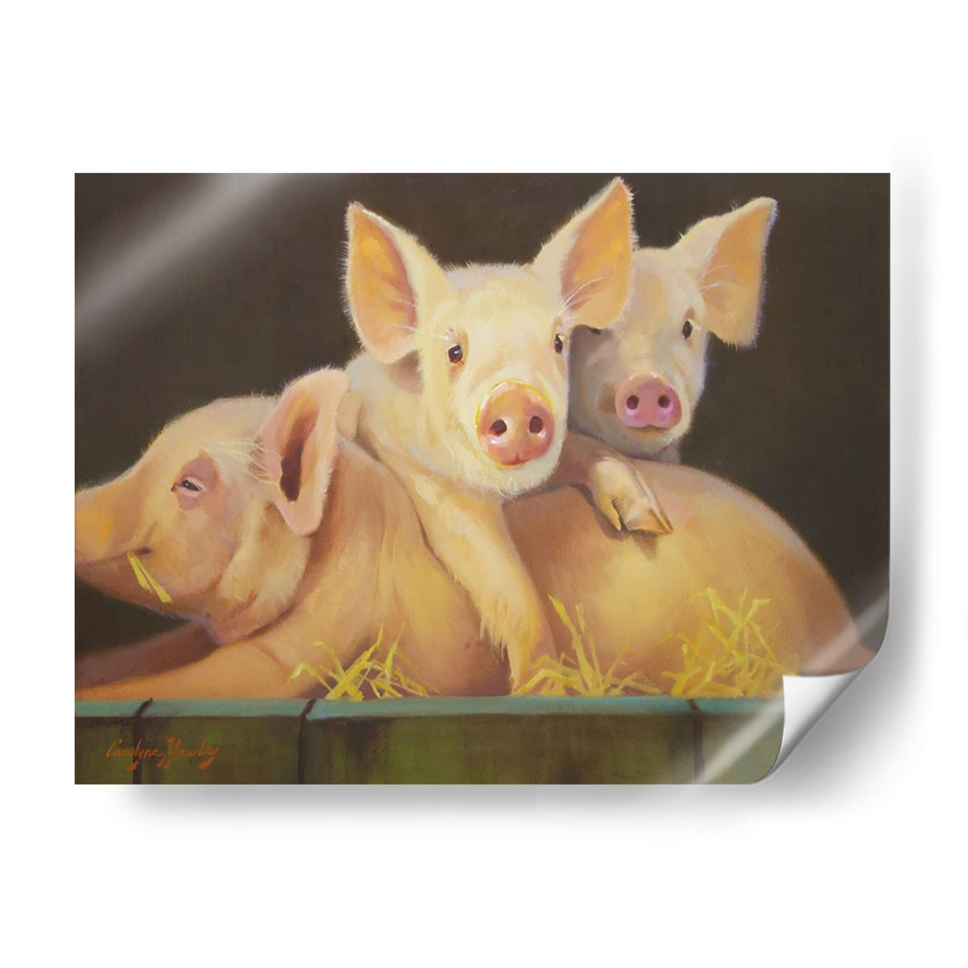 Descubre la ternura y la inocencia a través de este cautivador cuadro decorativo que presenta a tres adorables cerditos en un entorno rústico. La obra, titulada "La Vida Como Cerdo III" de Carolyne Hawley, captura un momento íntimo y juguetón, invitando a una sonrisa y a una sensación de calidez. La paleta de colores, dominada por tonos cálidos y terrosos con sutiles toques de amarillo proveniente de la paja, crea una atmósfera acogedora y natural. La artista emplea una técnica realista con pinceladas delicadas que resaltan la suavidad de la piel de los cerditos y la textura de la paja, aportando una profundidad y un detalle excepcionales. La composición, centrada en los rostros expresivos de los animales, genera una conexión emocional inmediata con el espectador. Este cuadro decorativo es una pieza ideal para añadir un toque de alegría y vida a cualquier espacio, desde una sala de estar o una cocina hasta una habitación infantil o una casa de campo. Es una obra que evoca sentimientos de simplicidad, bienestar y la belleza de los momentos cotidianos, perfecta para quienes buscan un arte que hable directamente al corazón y transforme su hogar en un refugio de paz y felicidad.