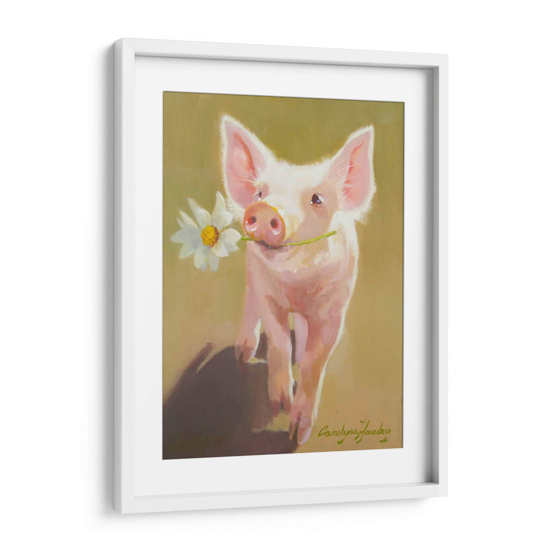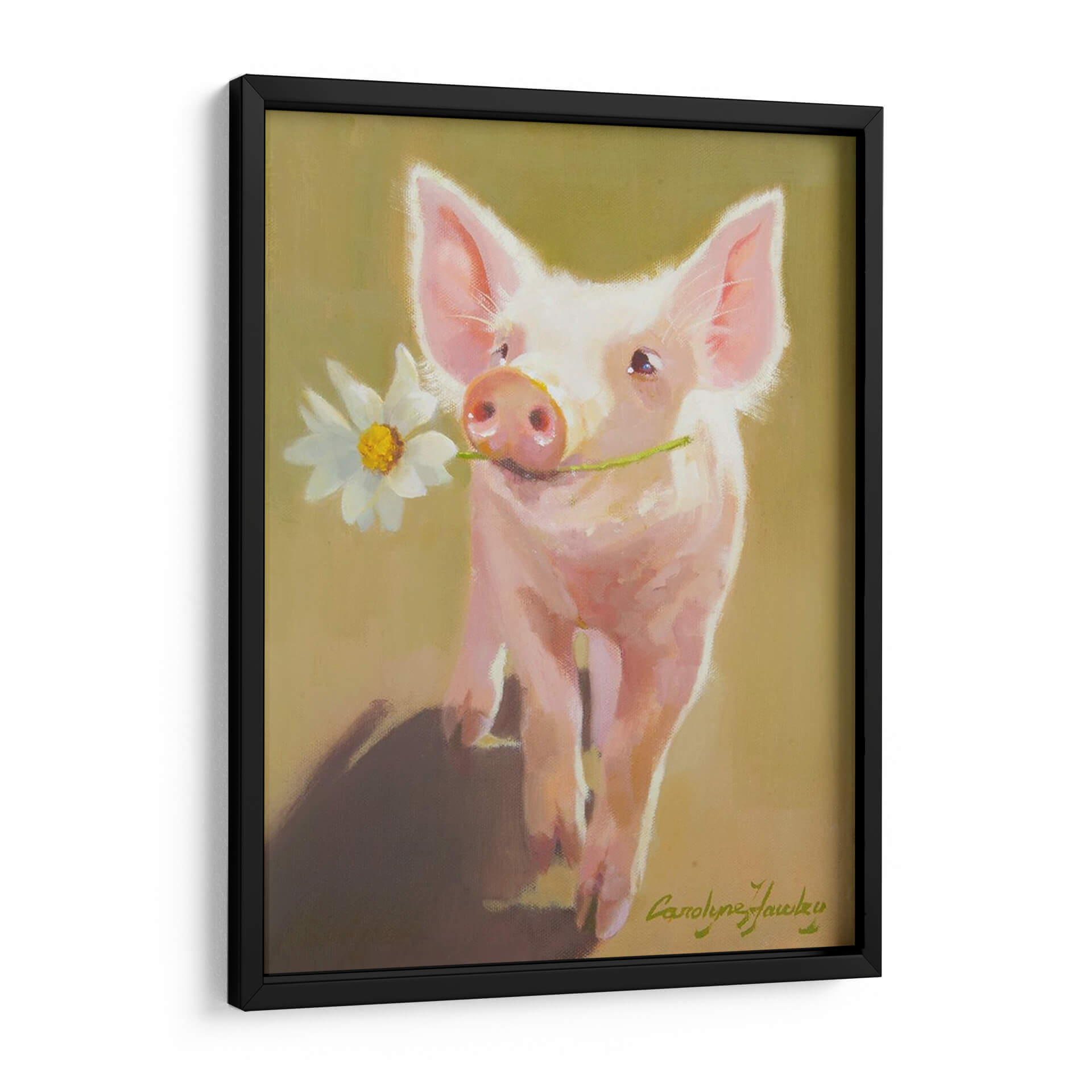 Sumérgete en la ternura y el encanto de "La Vida Como Cerdo IV", una obra de arte que captura la inocencia y la alegría de la naturaleza. Esta pieza, pintada por la talentosa Carolyne Hawley, presenta a un adorable cerdito sosteniendo una margarita en su hocico, irradiando una atmósfera de paz y simplicidad. Los colores cálidos y terrosos del fondo, combinados con los delicados tonos rosados del cerdito y el blanco puro de la flor, crean una paleta visualmente armoniosa que aporta serenidad a cualquier espacio. El estilo artístico, con pinceladas sueltas y expresivas, otorga a la obra una cualidad orgánica y vibrante, invitando al espectador a conectar con la pureza de la escena. Este cuadro decorativo es ideal para añadir un toque de dulzura y originalidad a tu hogar u oficina. Imagina este encantador cerdito aportando una sonrisa a tu día en tu sala de estar, dormitorio o incluso en un espacio de trabajo que necesite un recordatorio de la belleza de lo simple. "La Vida Como Cerdo IV" no es solo una obra de arte, es una invitación a la contemplación, un soplo de aire fresco que transforma un ambiente ordinario en un santuario de calma y buen gusto.