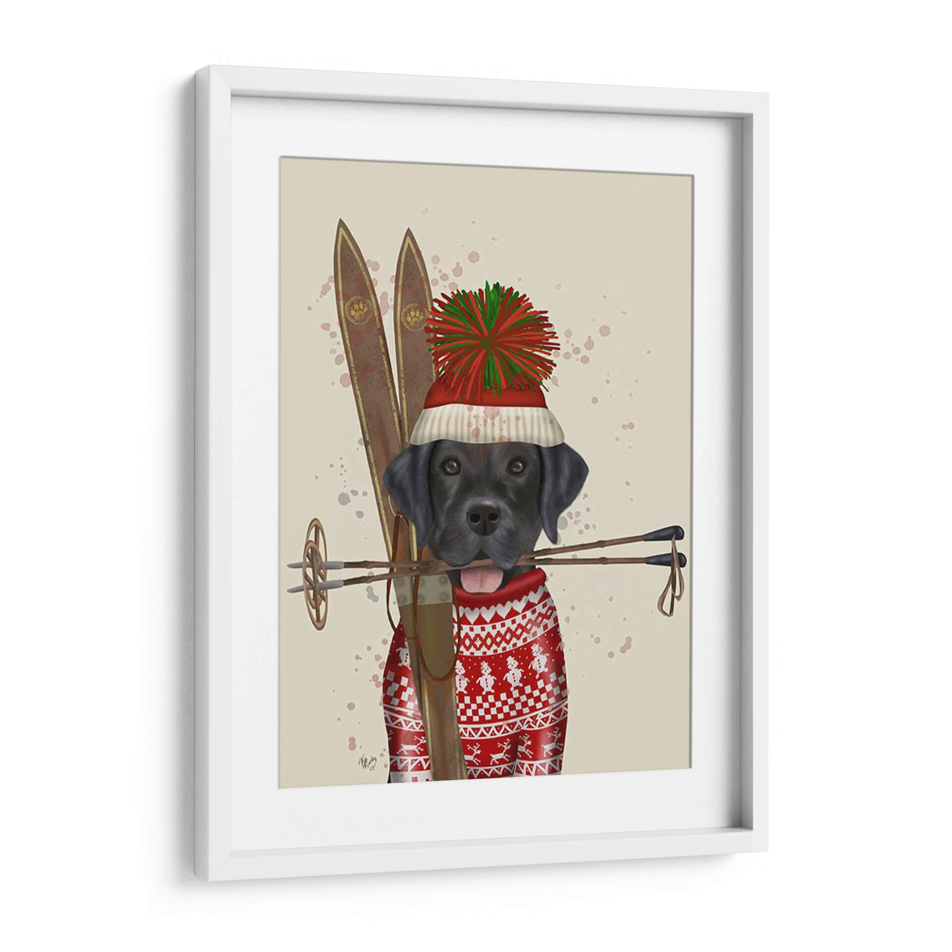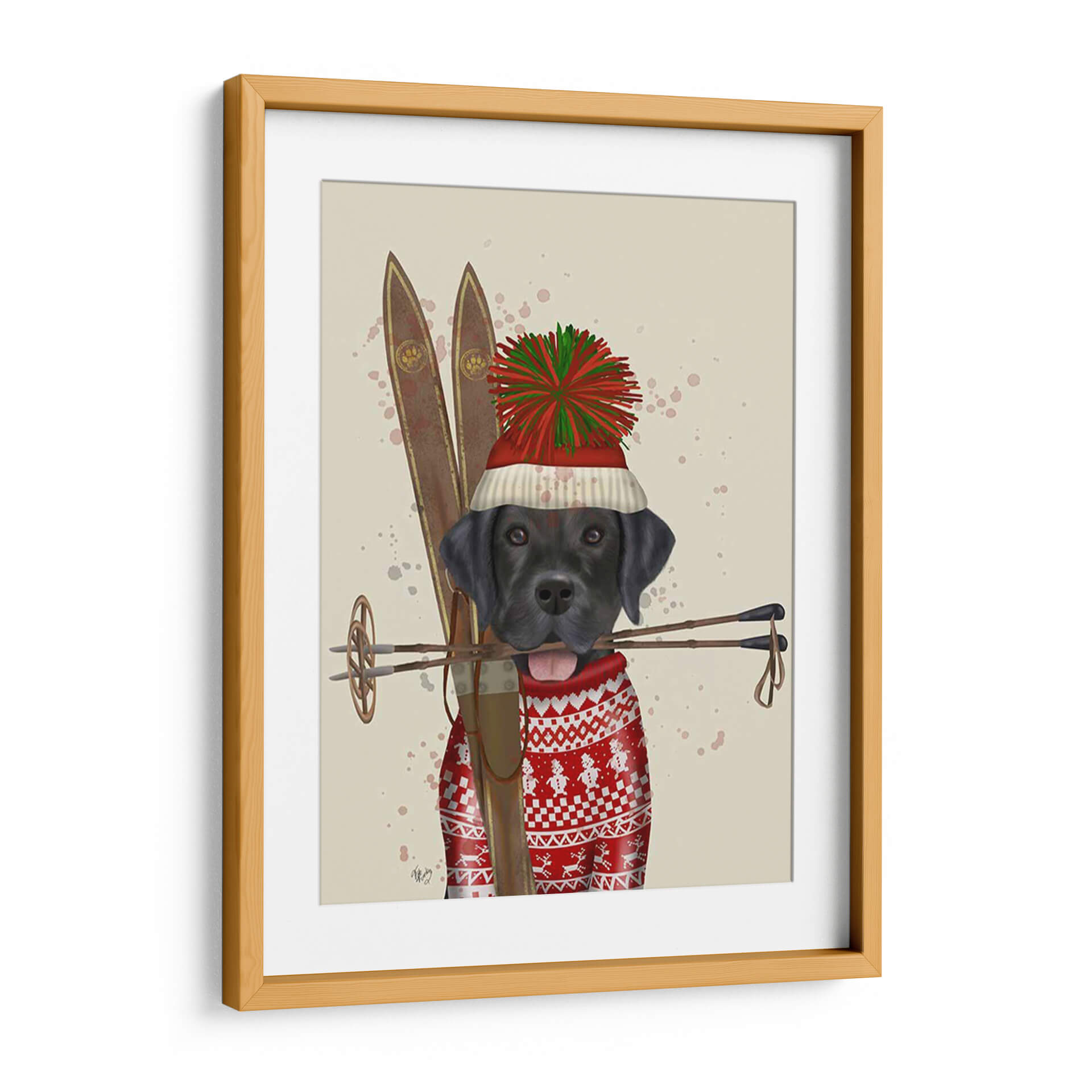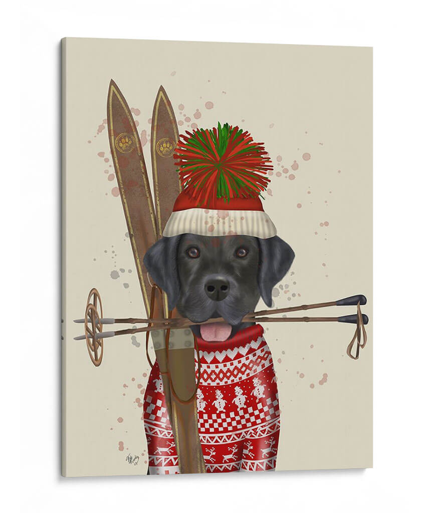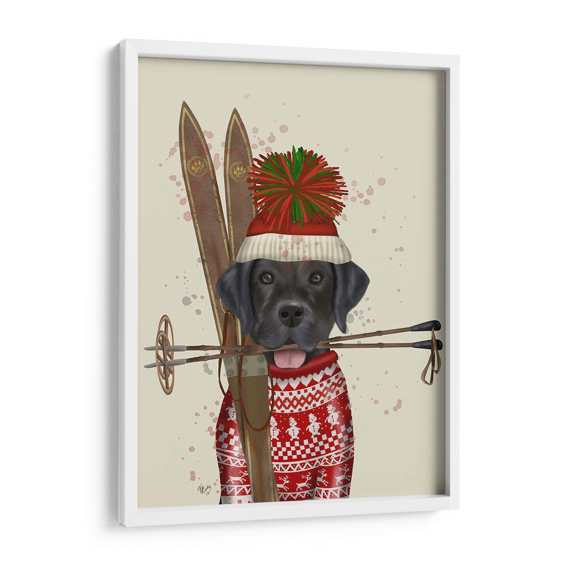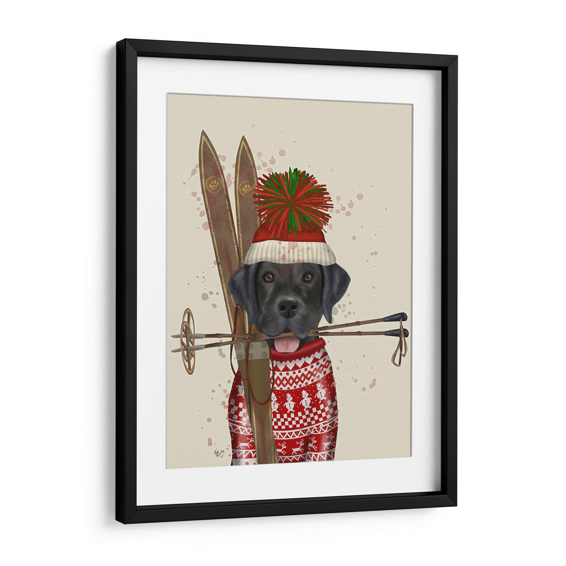 Este encantador cuadro decorativo, "Labrador Negro, Esquí", del artista Fab Funky, captura la esencia juguetona y aventurera de un labrador negro listo para la temporada de esquí. La obra presenta a un adorable labrador con un gorro de invierno pomposo y un suéter festivo de Navidad con motivos de muñecos de nieve y renos. Sostiene con orgullo sus esquís y bastones, listo para deslizarse por las pistas nevadas. La paleta de colores se centra en tonos tierra cálidos y suaves para el fondo, contrastando con el vibrante rojo y los detalles festivos del atuendo del perro. El estilo es una mezcla de realismo en el pelaje y la expresión del perro, con un toque ilustrativo y encantador en la vestimenta y los accesorios. La atmósfera general es alegre, acogedora y llena de espíritu vacacional. Este cuadro es perfecto para añadir un toque de humor y calidez a cualquier espacio, especialmente en habitaciones temáticas de invierno, salas de estar, o como un regalo único para los amantes de los perros y los deportes de invierno. Su composición centrada y el expresivo rostro del perro lo convierten en un punto focal inmediato. Ideal para quienes buscan arte que evoque emociones positivas y un sentido de nostalgia festiva.