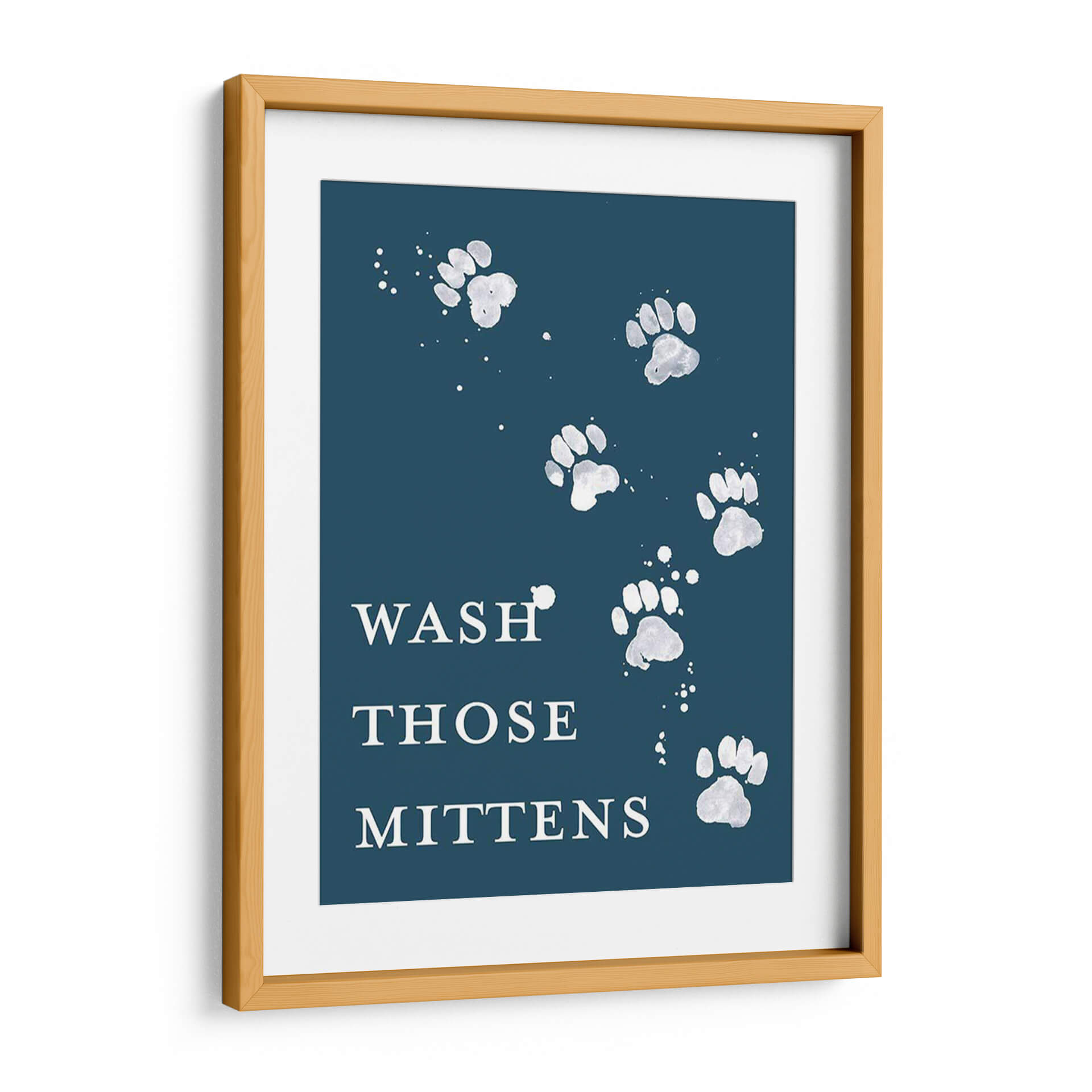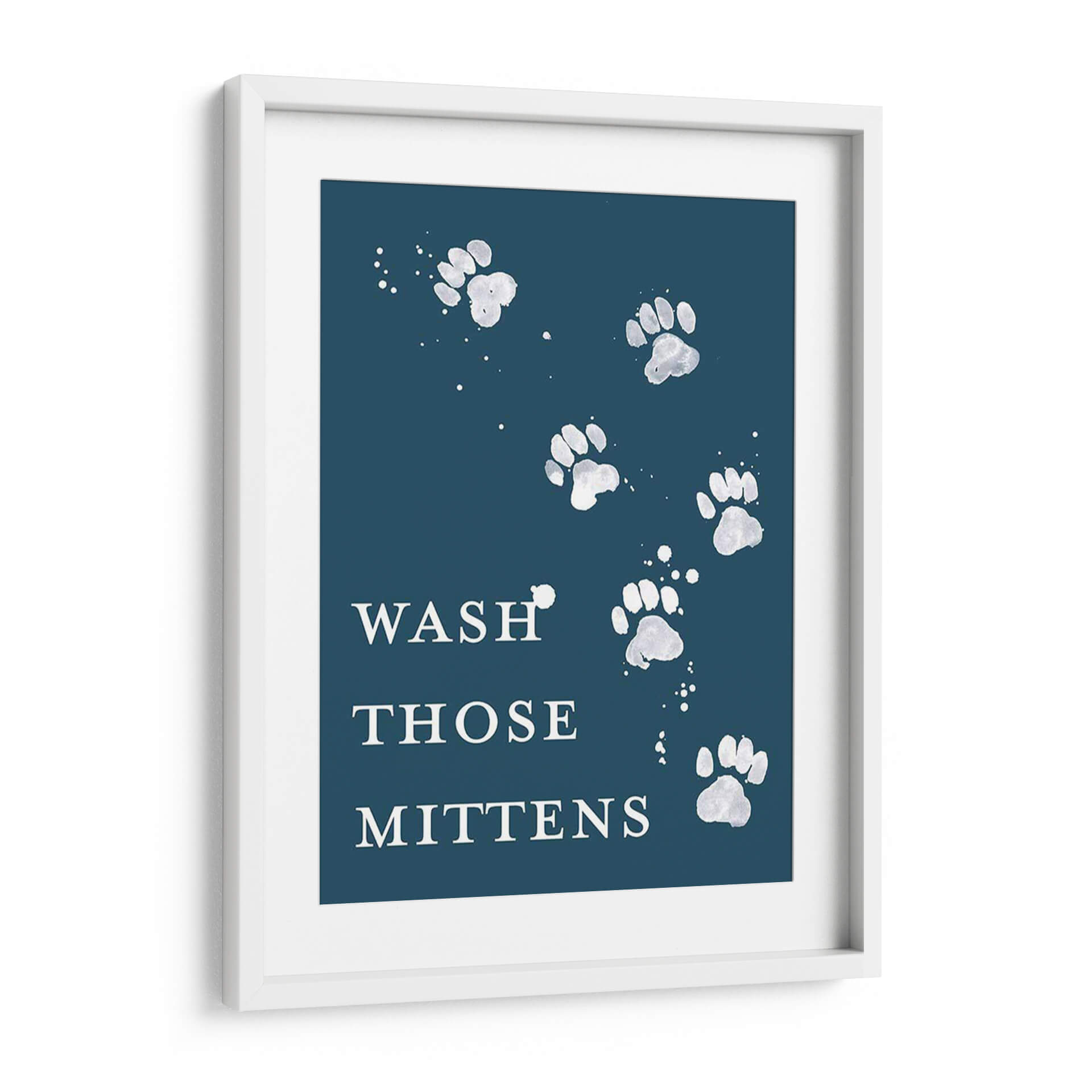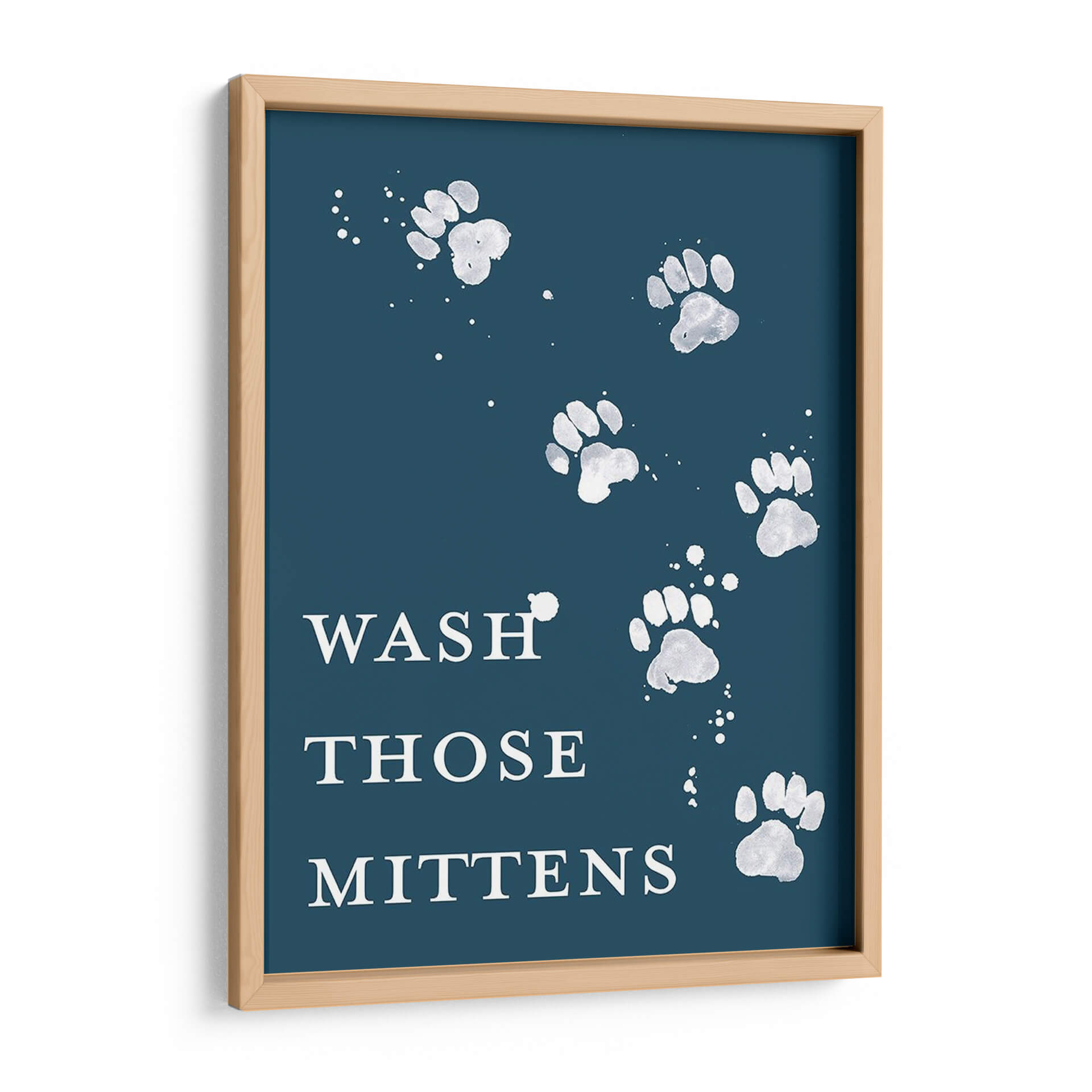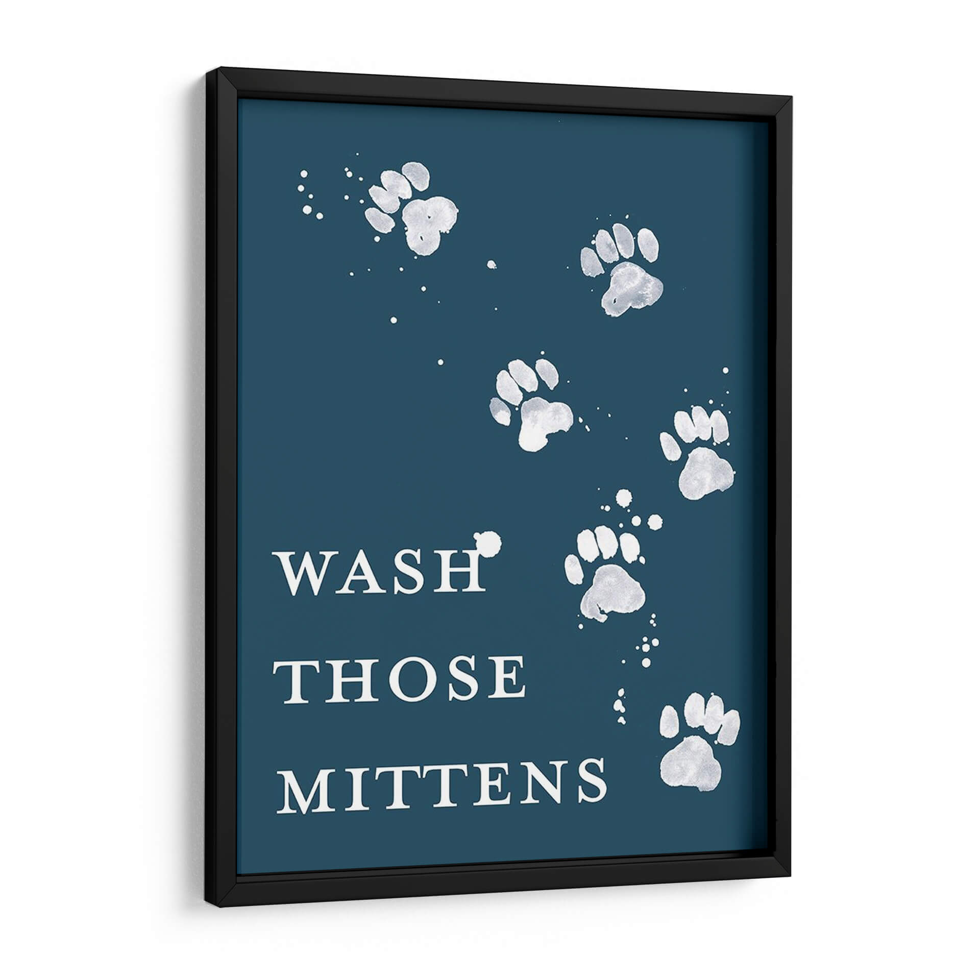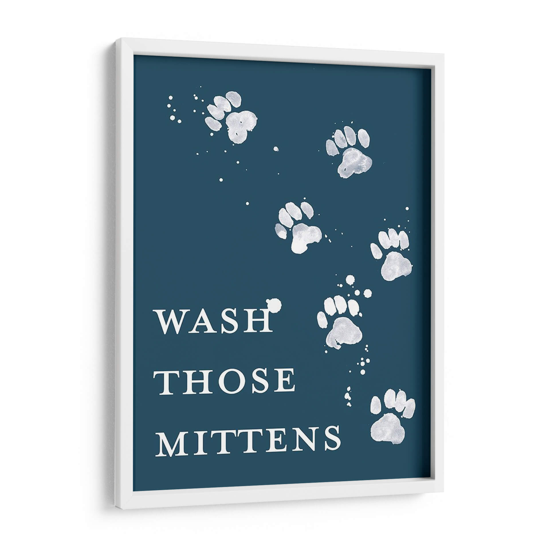 Dale un toque de humor y estilo a tu hogar con "Lave Las Patas II", una obra de arte contemporáneo que captura la esencia juguetona de nuestras mascotas. Este cuadro decorativo presenta una composición minimalista y elegante sobre un fondo azul profundo, donde huellas de patas blancas, salpicadas con delicados toques de pintura, parecen danzar creando un patrón visualmente atractivo. El texto "WASH THOSE MITTENS" añade un guiño cómico y relatable para los amantes de los animales, invitando a una sonrisa. La paleta de colores contrastantes, con blancos brillantes sobre un azul sereno, crea una atmósfera acogedora y moderna, ideal para espacios que buscan transmitir calidez y personalidad. Este cuadro es perfecto para añadir un punto focal distintivo a la cocina, el recibidor, o incluso como una pieza de conversación en una sala de estar. Su diseño versátil se adapta a diversos estilos decorativos, desde el moderno y escandinavo hasta el rústico o ecléctico, aportando siempre un aire de originalidad y buen humor. "Lave Las Patas II" no es solo una decoración, es una expresión del amor por los animales que enriquece cualquier ambiente.