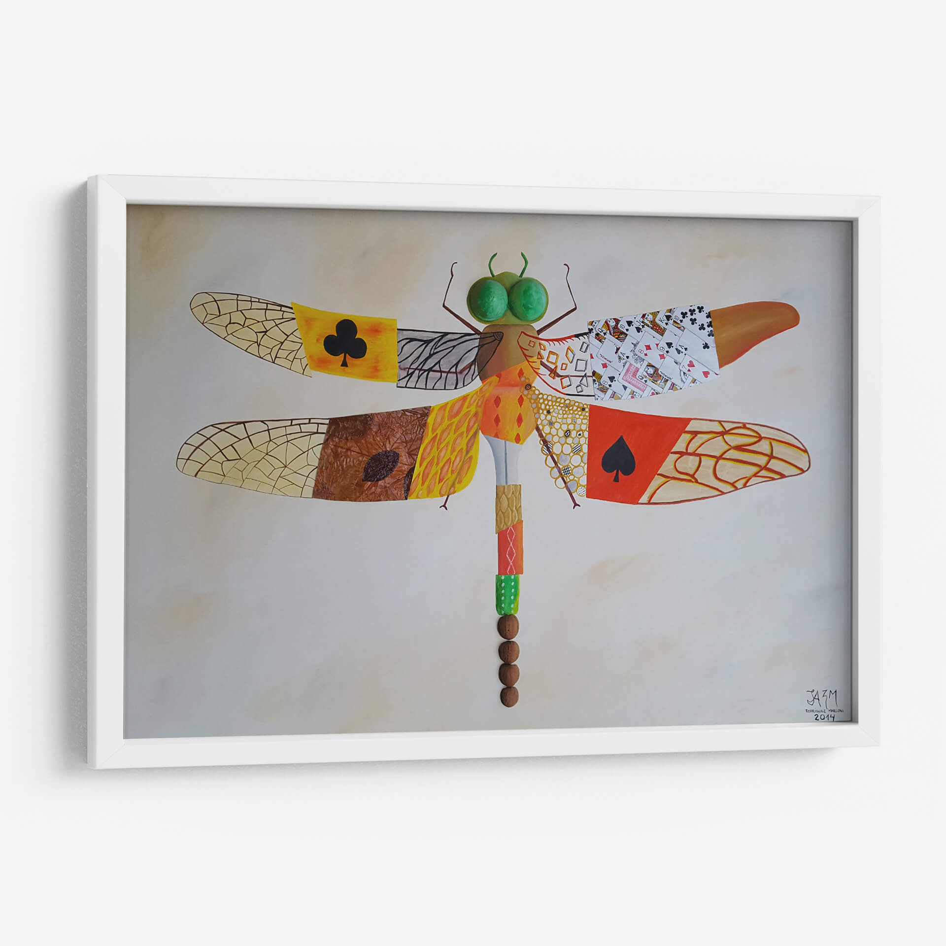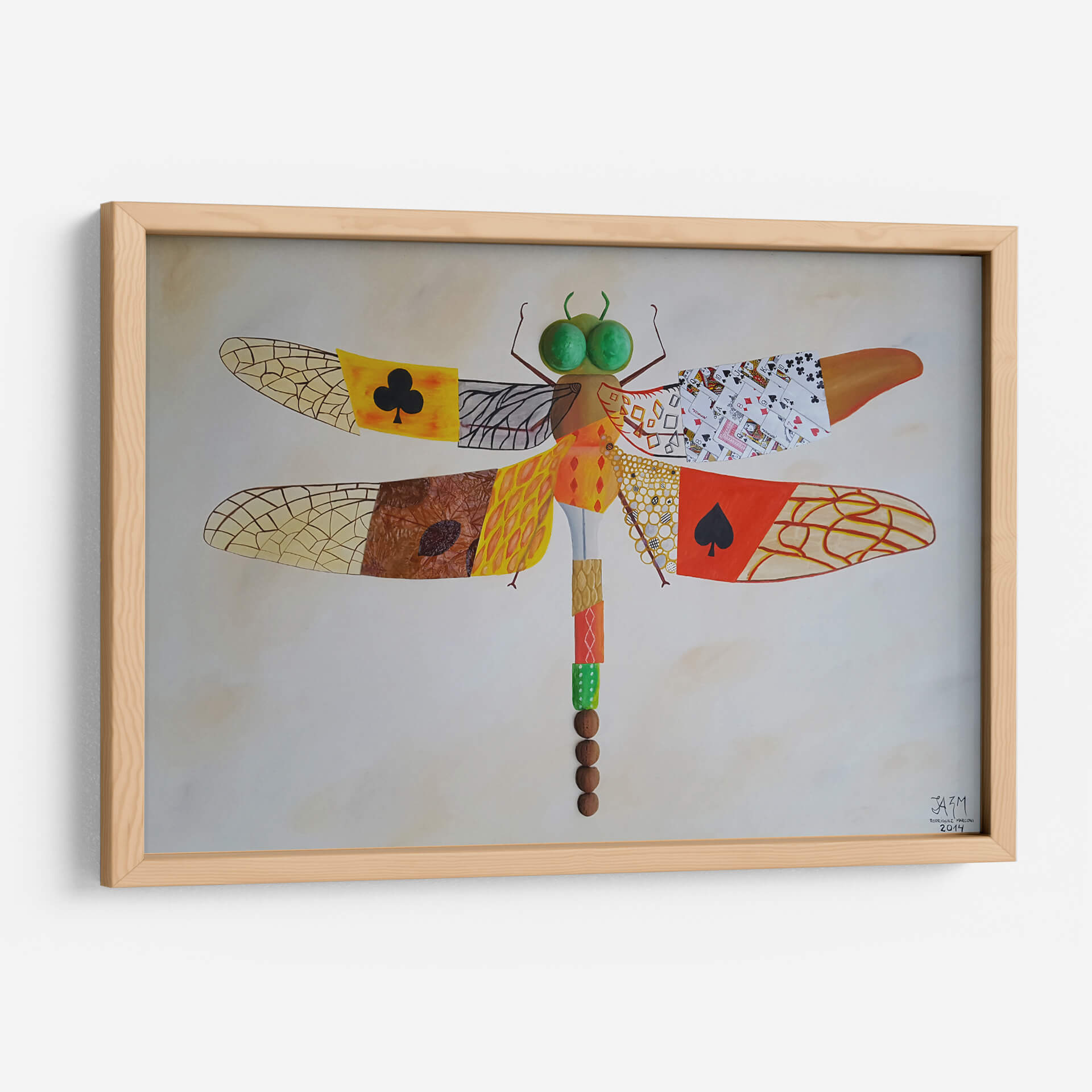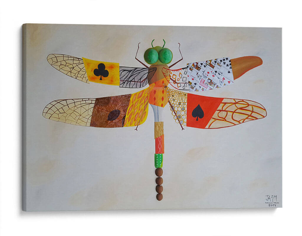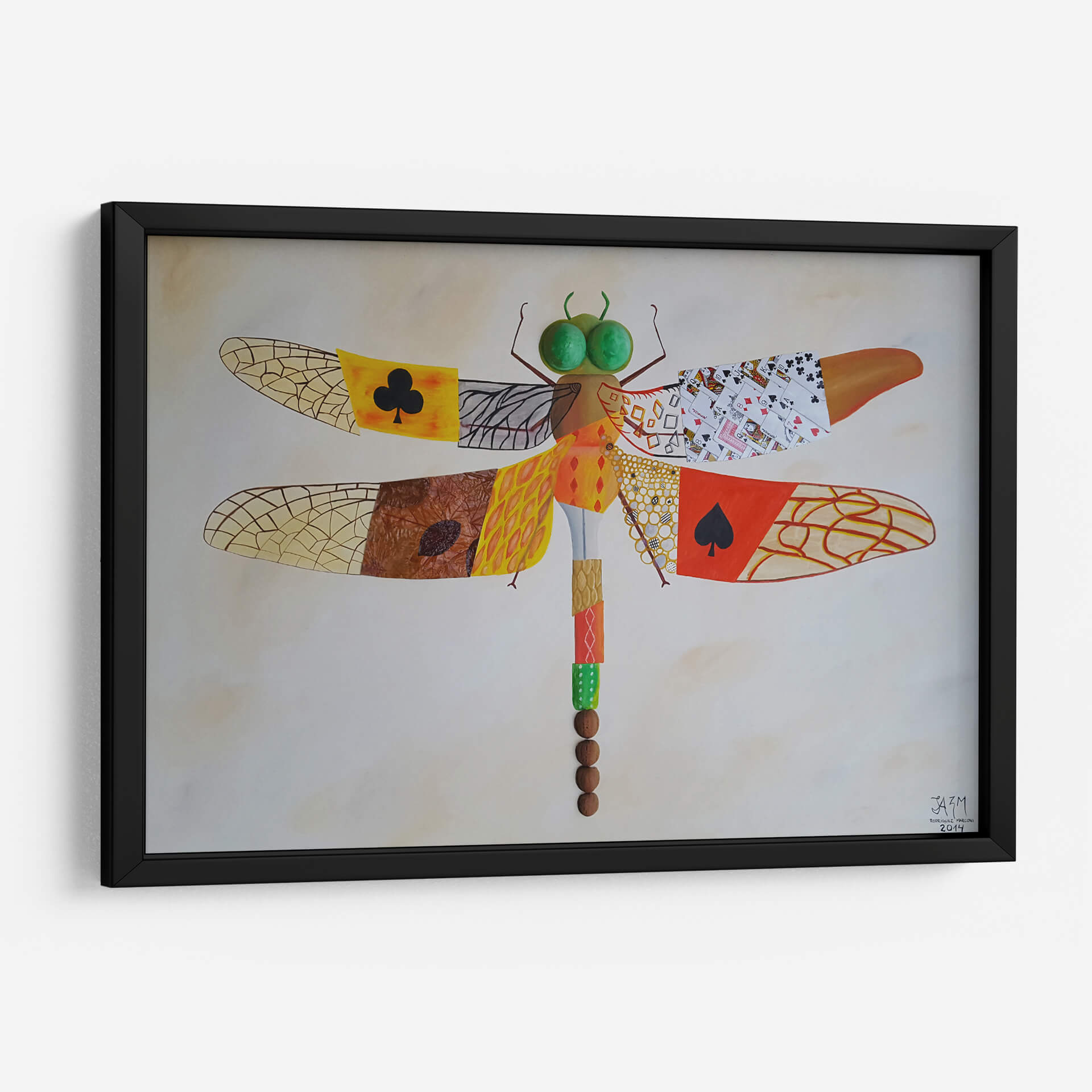 Sumérgete en el fascinante mundo de "Libélula", una obra de arte contemporáneo que redefine la elegancia natural a través de una perspectiva única y vibrante. Este cuadro decorativo captura la esencia de la libélula, un símbolo de transformación y adaptabilidad, pero lo hace fusionando elementos inesperados. Cada ala y parte del cuerpo se presenta como un collage de texturas y patrones, desde la delicadeza de naipes hasta motivos geométricos y orgánicos. La paleta de colores es audaz y armoniosa, con toques de amarillo, naranja, rojo y verde que contrastan suavemente con el fondo neutro, creando un equilibrio visual cautivador. La composición detallada invita a la contemplación, revelando nuevas capas de significado con cada mirada. Ideal para quienes buscan una pieza que combine la belleza de la naturaleza con un toque de ingenio y originalidad, "Libélula" es perfecta para añadir un punto de interés y conversación a salas de estar, estudios u oficinas. Transforma tu espacio con este cuadro decorativo que celebra la complejidad y la belleza en los detalles, un verdadero reflejo del arte moderno.