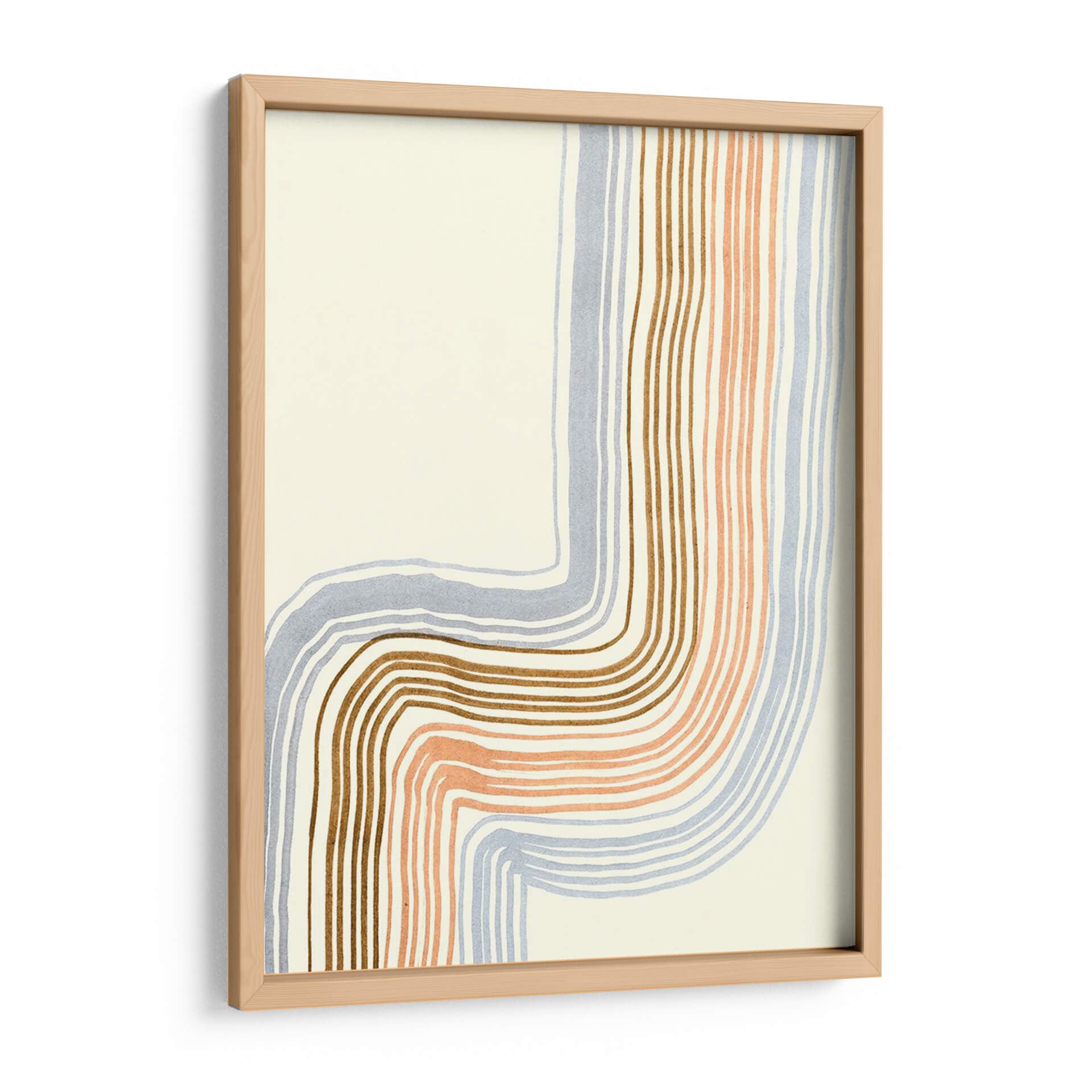 Sumérgete en la serenidad y el dinamismo de "Líneas Imperfectas I", una obra de arte contemporáneo de Alicia Ludwig. Este cuadro decorativo abstracto presenta una composición fluida de líneas orgánicas en tonos suaves de melocotón, gris azulado y marrón cálido, contrastando con un fondo neutro y luminoso. Las líneas, sutilmente irregulares, evocan una sensación de movimiento orgánico y calidez, creando una atmósfera de tranquilidad y sofisticación. Su estilo minimalista pero expresivo lo convierte en una pieza versátil, ideal para añadir un toque de elegancia contemporánea a salones, dormitorios o espacios de trabajo. La delicadeza de su paleta y la fluidez de sus formas invitan a la contemplación, transformando cualquier rincón en un oasis de calma y buen gusto. "Líneas Imperfectas I" es más que una simple decoración; es una invitación a la pausa y a la apreciación de la belleza en la simplicidad, perfecta para quienes buscan infundir sus ambientes con arte que hable al alma y complemente su estilo personal con una nota de refinamiento.