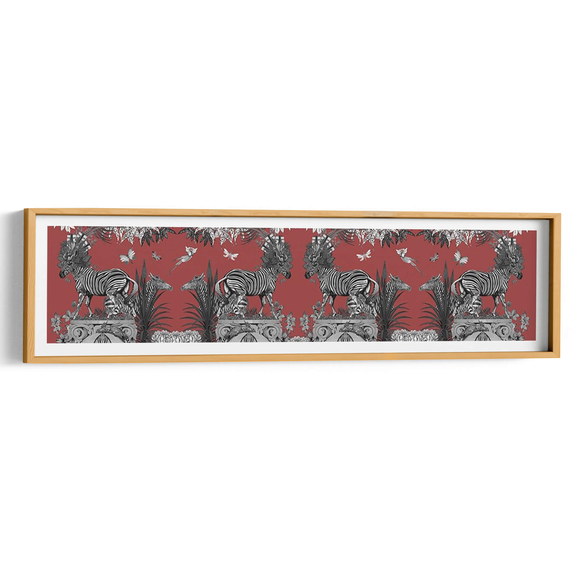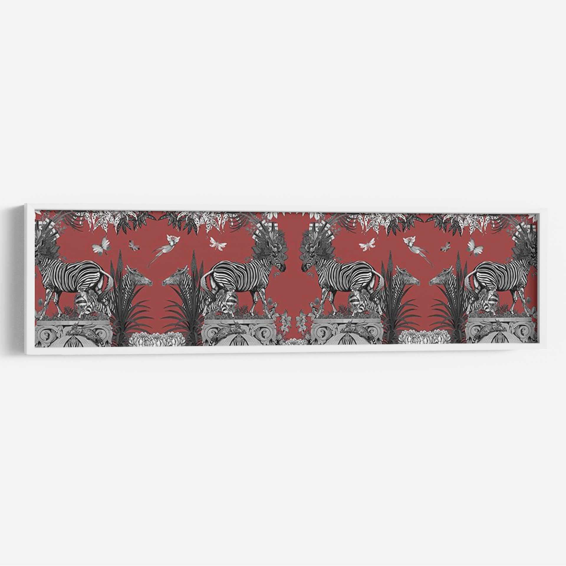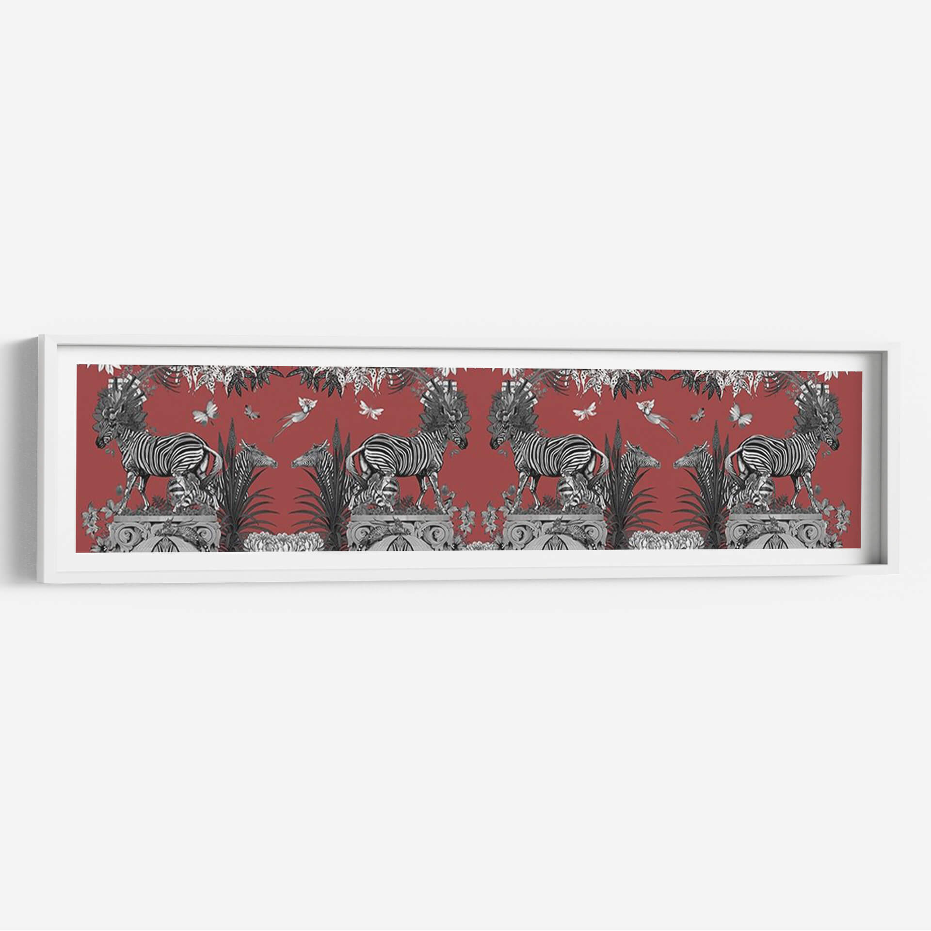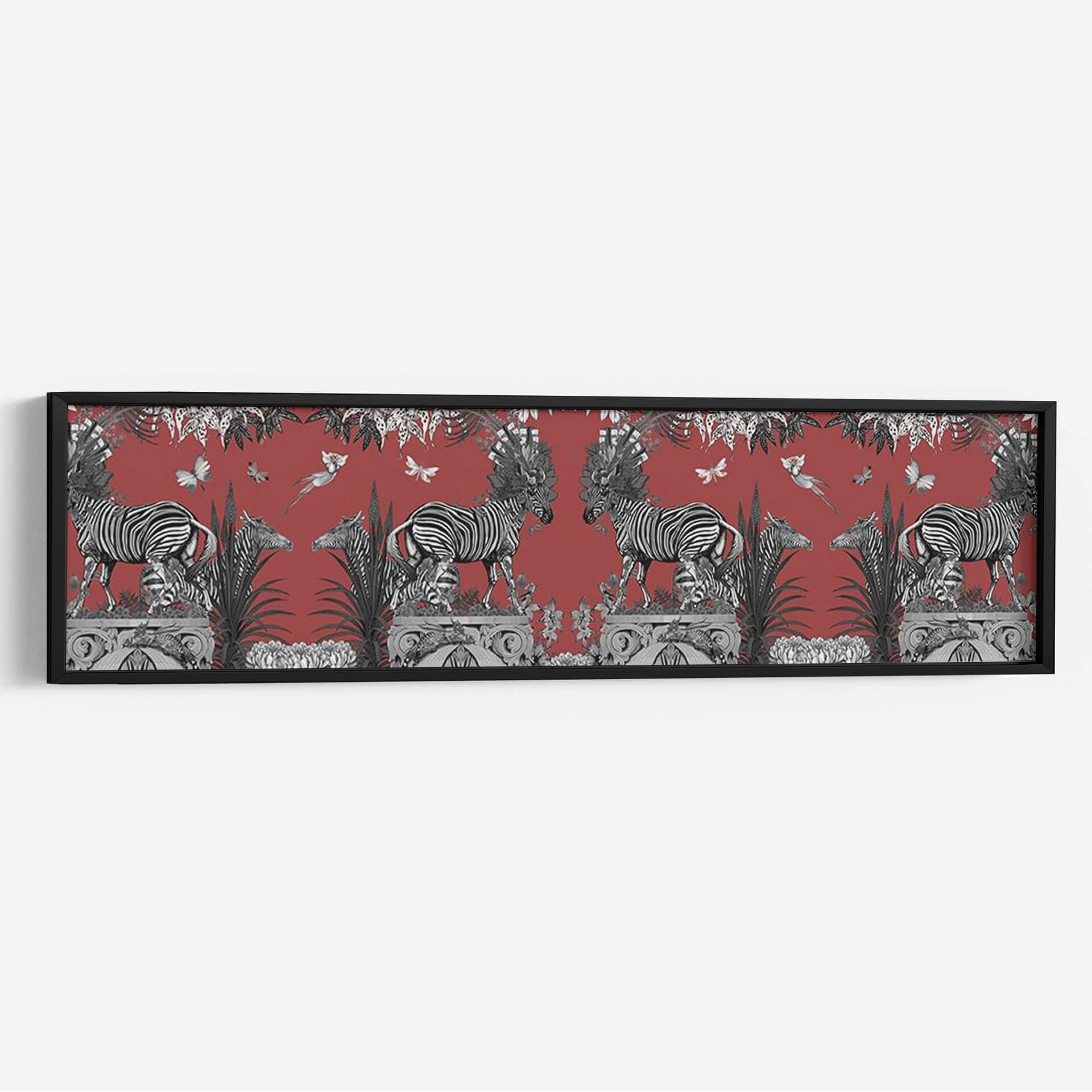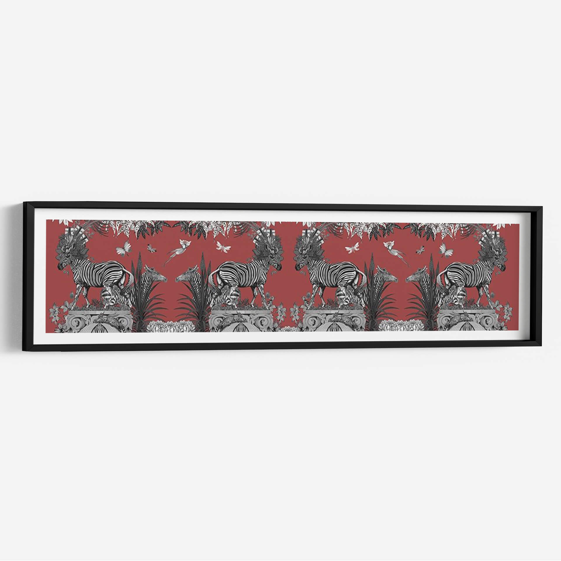 Embárcate en un viaje visual cautivador con nuestro cuadro decorativo 'Livoris Feritas Diseño Cebra, Entero'. Esta obra maestra, creada por el artista Fab Funky, presenta una escena vibrante y detallada donde las icónicas cebras se entrelazan con elementos botánicos exuberantes y delicadas mariposas, todo ello sobre un profundo fondo rojo terracota. La composición simétrica y el contraste entre las cebras en blanco y negro y el vívido color de fondo crean un impacto visual potente y sofisticado. Es una pieza que evoca la majestuosidad de la naturaleza salvaje fusionada con un toque de fantasía y elegancia artística. Ideal para quienes buscan añadir un acento audaz y lleno de personalidad a su hogar u oficina. Este cuadro decorativo es perfecto para salas de estar, comedores o estudios que deseen un punto focal que inspire conversación y admiración. La riqueza de detalles y la paleta de colores única hacen de 'Livoris Feritas Diseño Cebra' una adición memorable a cualquier colección de arte, aportando un aire de exotismo refinado y un toque de naturaleza estilizada a tus espacios.