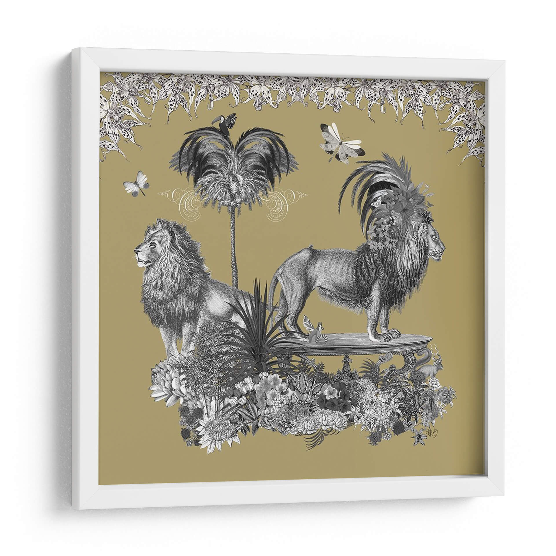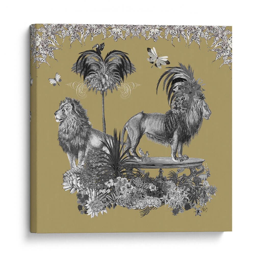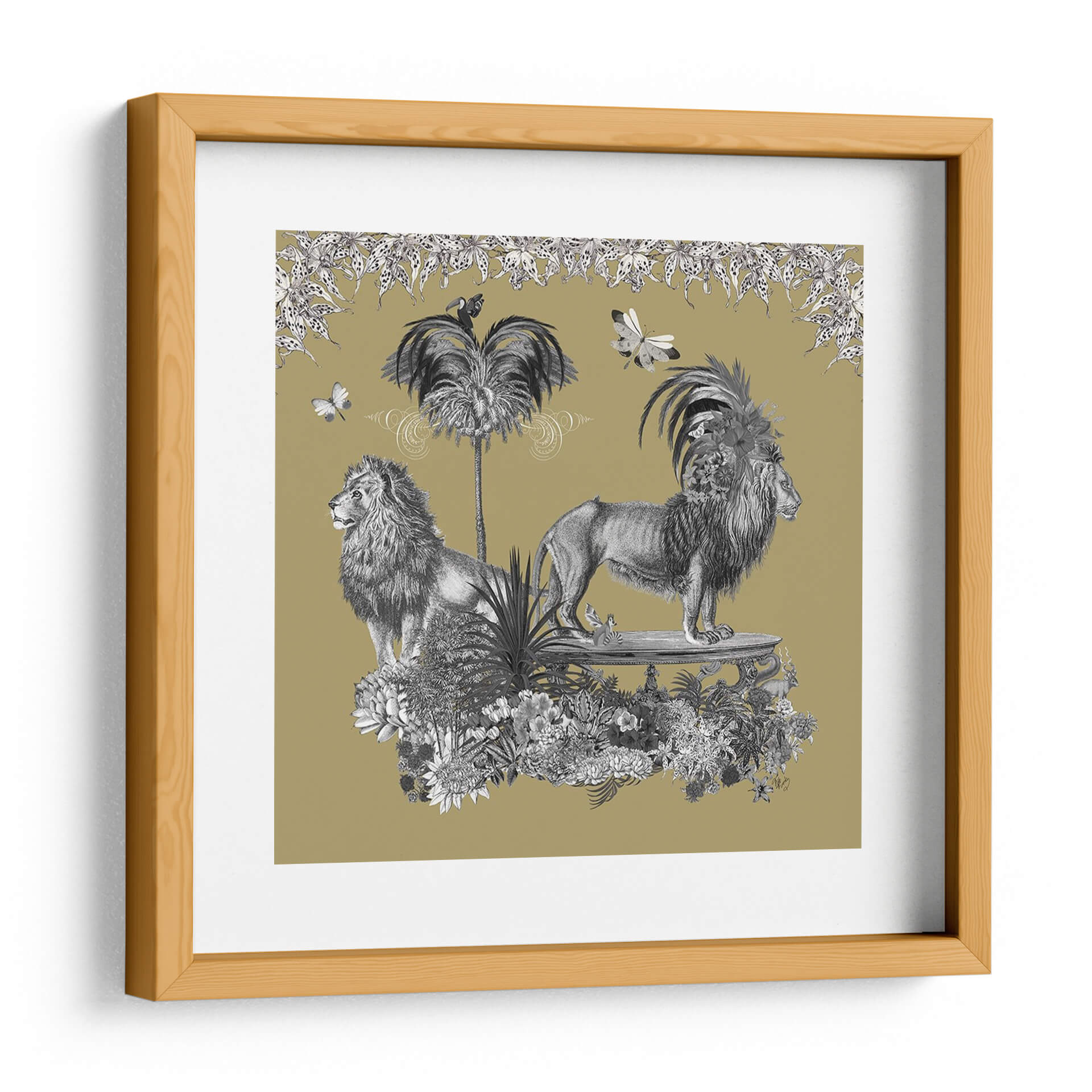 Sumérgete en la majestuosidad de la naturaleza con este cuadro decorativo que presenta un diseño de leones único y cautivador. La obra, titulada "Livoris Feritas Lion Design", evoca un aura de fuerza y elegancia salvaje, perfecta para transformar cualquier espacio en un santuario de estilo. La detallada ilustración en blanco y negro de dos leones, uno en primer plano y otro en la distancia, contrasta maravillosamente con el fondo ocre cálido y sutilmente texturizado, creando una atmósfera de distinción y misterio. La composición se enriquece con elementos botánicos exuberantes y delicadas mariposas, añadiendo un toque de sofisticación y un aire de jardín exótico. Este cuadro es ideal para quienes buscan añadir un punto focal dramático y a la vez refinado a su sala de estar, estudio u oficina. Su estilo contemporáneo con influencias clásicas lo convierte en una pieza versátil, capaz de complementar tanto decoraciones modernas como más tradicionales. Deja que la nobleza de estos felinos inspire tu entorno y refleje tu aprecio por el arte audaz y con carácter. Una elección perfecta para amantes de la vida salvaje y el diseño interior.