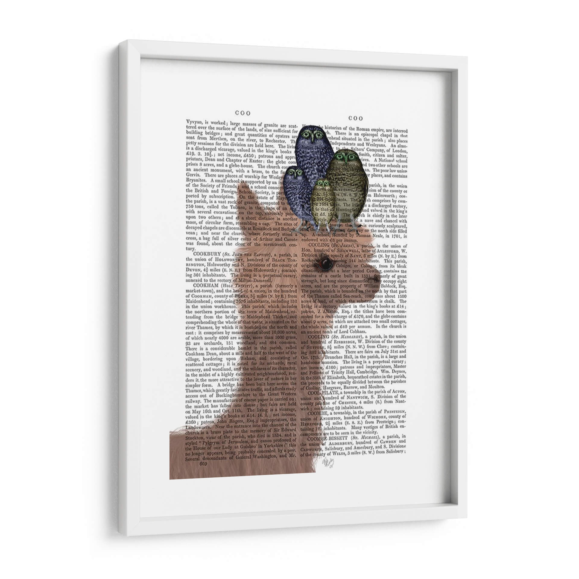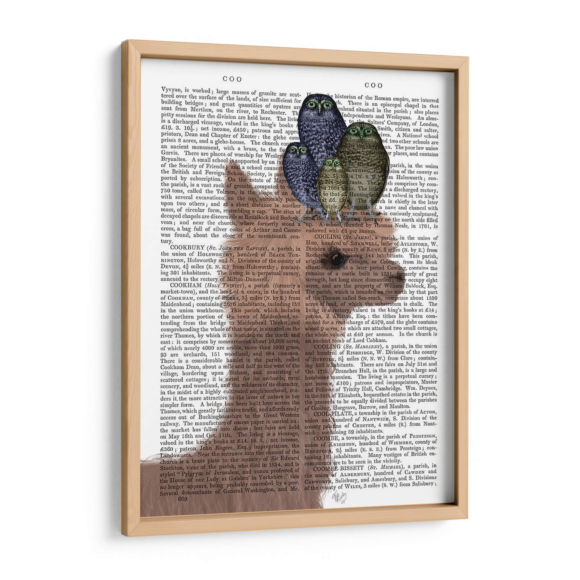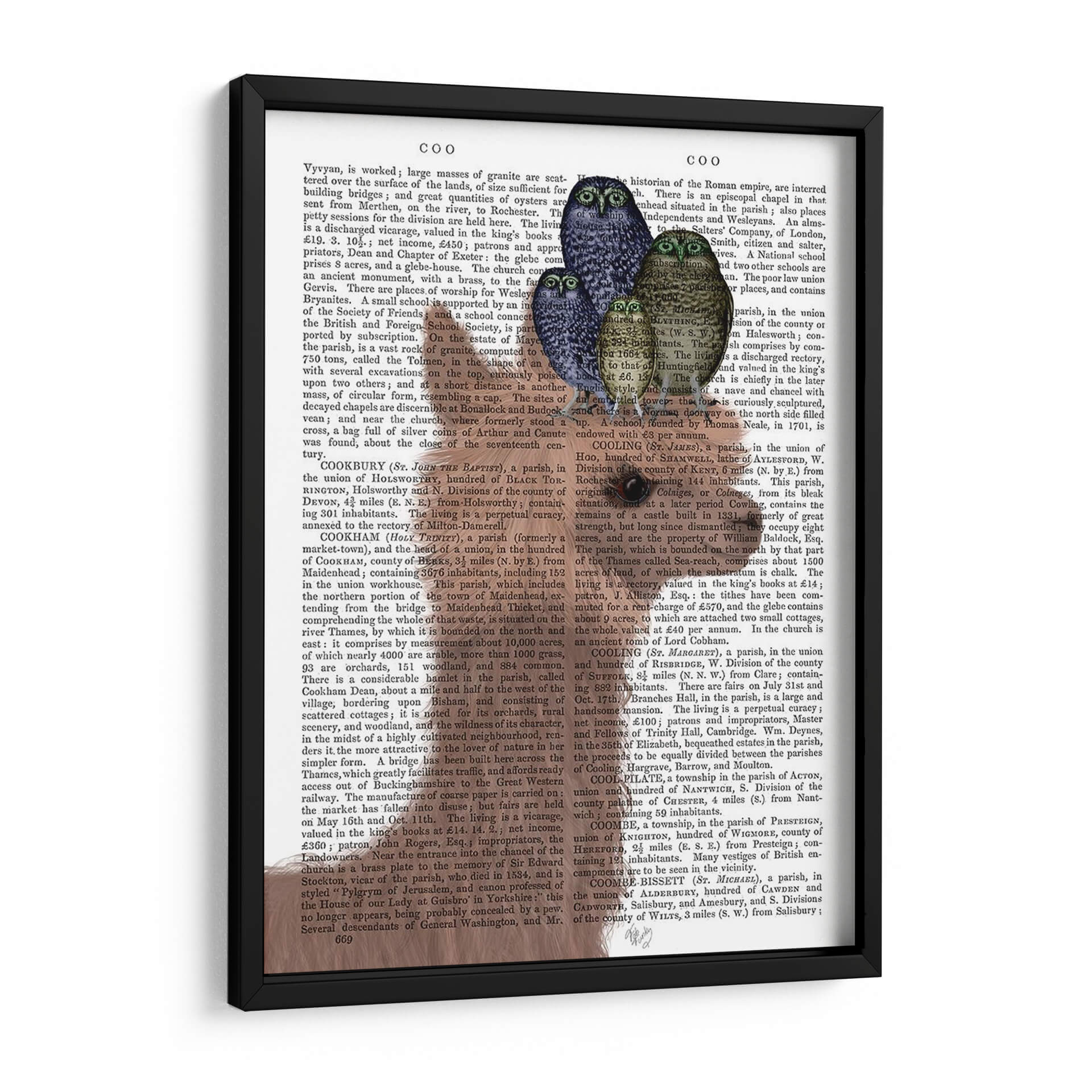 Transforma tu espacio con este cautivador cuadro decorativo que presenta un grupo de búhos en un entorno de texto vintage. La obra, titulada "Llama Buhs", del artista Fab Funky, combina elementos surrealistas y un toque de nostalgia gracias a su fondo de página de libro antiguo. Los búhos, representados con un realismo encantador y una paleta de colores predominantemente azul, gris y marrón, crean una atmósfera de sabiduría y misterio. La composición cuidadosamente orquestada coloca a estas aves como protagonistas, invitando a la contemplación. Este tipo de arte es ideal para añadir un punto de interés intelectual y visual a cualquier rincón de tu hogar u oficina, ya sea en una sala de estar, un estudio o un dormitorio. Su diseño único lo convierte en una pieza de conversación perfecta, fusionando lo clásico con lo contemporáneo. Añade un toque de originalidad y carácter a tu decoración con esta impresión de alta calidad, diseñada para inspirar y atraer miradas.