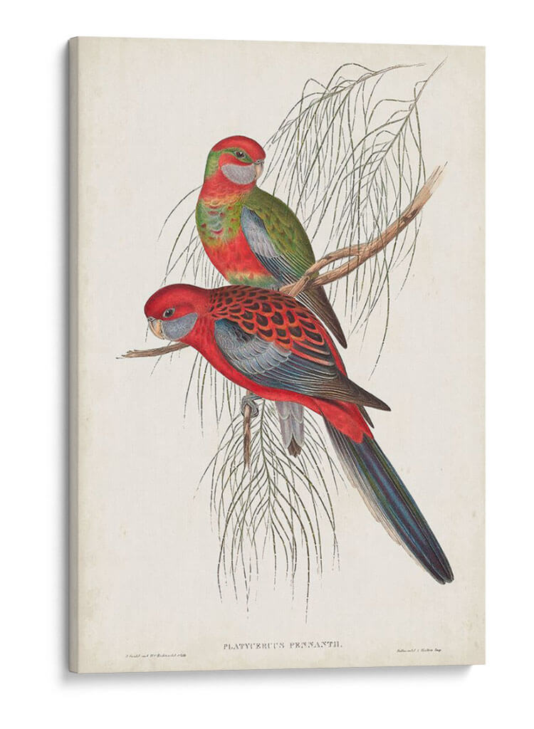 Aporta un toque de elegancia natural y un aire de sofisticación a tu hogar con este exquisito cuadro decorativo de "Loros Tropicales III" del reconocido artista John Gould. Esta obra maestra presenta una detallada ilustración de dos loros posados delicadamente sobre una rama, evocando la belleza y la vitalidad de la naturaleza en su máxima expresión. La paleta de colores, dominada por vibrantes rojos, verdes y acentos grises y azules, se combina con un fondo neutro que permite que las aves sean las protagonistas indiscutibles. El estilo de ilustración científica clásica, con trazos precisos y un realismo cautivador, confiere a la pieza un carácter atemporal y educativo. Perfecta para añadir un punto de interés visual a cualquier estancia, desde una sala de estar moderna hasta un estudio o una biblioteca, este cuadro decorativo es ideal para aquellos que aprecian el arte de la ornitología y la belleza de las aves exóticas. Su composición centrada y los vivos colores lo convierten en una pieza versátil que complementará una amplia gama de estilos decorativos, aportando vida y color sin abrumar el espacio. Añade un toque de la maravilla del mundo natural a tu decoración y disfruta de la presencia serena y colorida de estos "Loros Tropicales III".