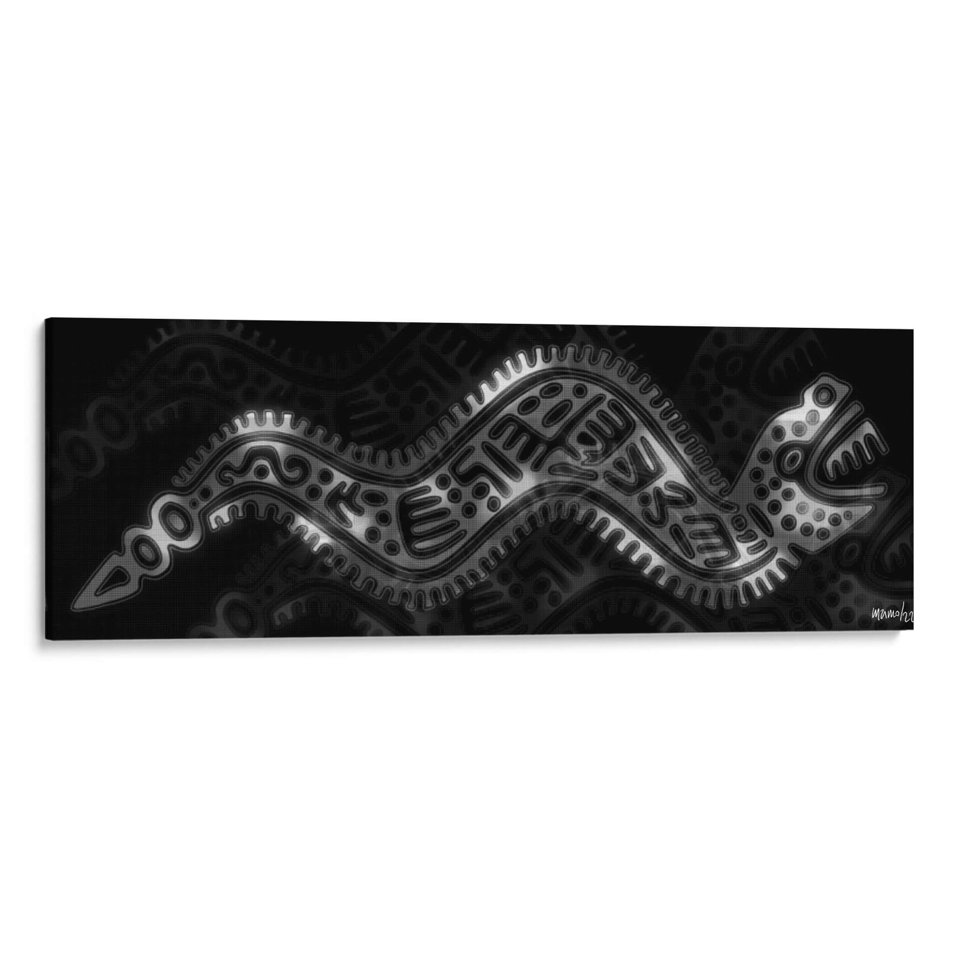 Sumérgete en el enigmático mundo de "Los Mayas 2", una obra de arte digital que evoca la mística y la profundidad de la antigua civilización maya. Gina Villalobos nos presenta una pieza impactante en tonos monocromáticos, donde la figura central de una serpiente estilizada, adornada con intrincados glifos y patrones geométricos, cobra vida sobre un fondo oscuro y texturizado. La composición horizontal y el detalle minucioso de cada elemento invitan a una contemplación prolongada, desvelando capas de significado y simbolismo. Esta obra no es solo un cuadro decorativo, sino una ventana a un legado cultural fascinante, capaz de aportar un toque de misterio y sofisticación a cualquier espacio. Ideal para salones modernos, estudios o cualquier lugar donde se busque una declaración artística audaz y con carácter. Su diseño lineal y la potencia visual la convierten en un punto focal irresistible, perfecto para quienes aprecian el arte con historia y profundidad.