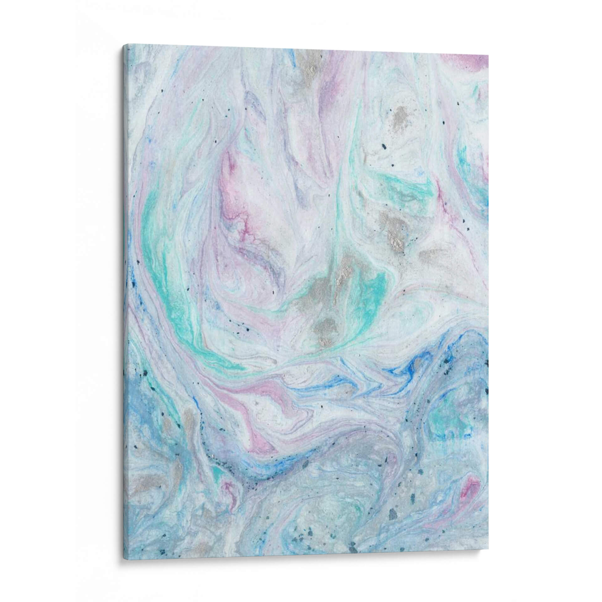 Sumérgete en la serenidad y la elegancia etérea de "Mármol I", una obra de arte abstracta de Alicia Ludwig que evoca la delicadeza de las vetas naturales del mármol. Los suaves remolinos de colores pastel, que incluyen tonos de blanco roto, rosa pálido, azul cielo y toques de verde menta, se entrelazan para crear una composición fluida y armoniosa. Pequeños detalles plateados y salpicaduras oscuras añaden profundidad y un toque contemporáneo a la pieza, imitando las imperfecciones sutiles pero cautivadoras de la piedra natural. Este cuadro decorativo abstracto es una invitación a la calma y la contemplación, perfecto para transformar cualquier espacio en un santuario de paz. Su estilo minimalista y orgánico lo convierte en una adición versátil para una variedad de decoraciones, desde un dormitorio sereno hasta una sala de estar moderna o una oficina que busca un ambiente sofisticado. "Mármol I" no es solo una pieza decorativa; es una ventana a la belleza sutil de la naturaleza, reinterpretada con sensibilidad artística para enriquecer tu hogar u oficina.