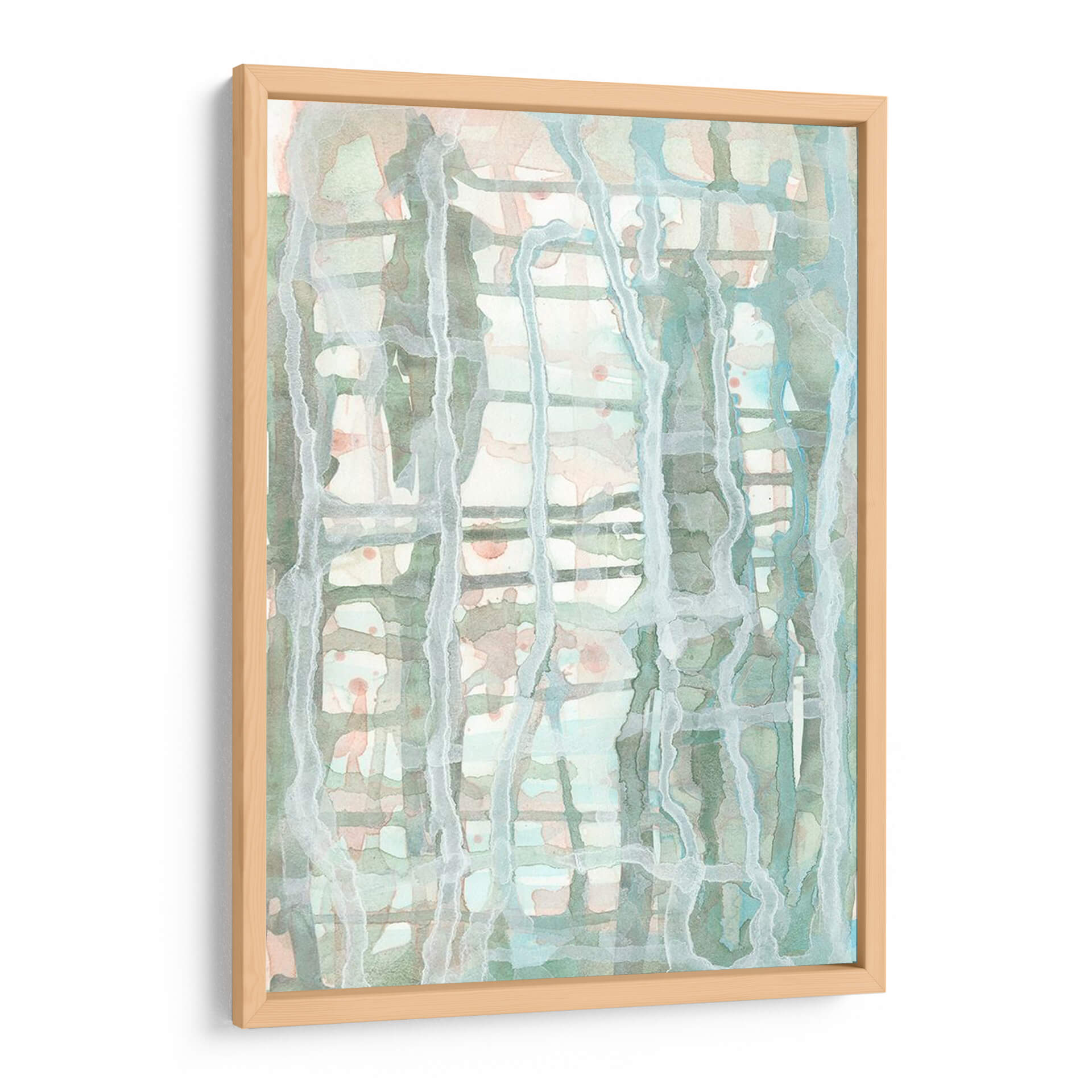 Sumérgete en la serenidad etérea de "Memoria De Celosía II", una cautivadora obra de arte contemporáneo de Renee W. Stramel. Esta pieza evoca una sensación de calma y profundidad a través de su delicada paleta de colores pastel y su composición abstracta. Las suaves pinceladas y las texturas acuosas crean un juego de luces y sombras que invitan a la contemplación. Los tonos verdes menta y azul pálido se entrelazan con sutiles toques de melocotón y blanco roto, formando un patrón que recuerda a la luz filtrándose a través de una celosía o un velo delicado. Es el cuadro decorativo perfecto para añadir un toque de sofisticación y tranquilidad a cualquier espacio, ya sea un dormitorio sereno, una sala de estar moderna o una oficina que busca un ambiente de paz. "Memoria De Celosía II" no es solo una pieza decorativa, sino una invitación a la introspección y al disfrute de la belleza sutil en tu hogar.