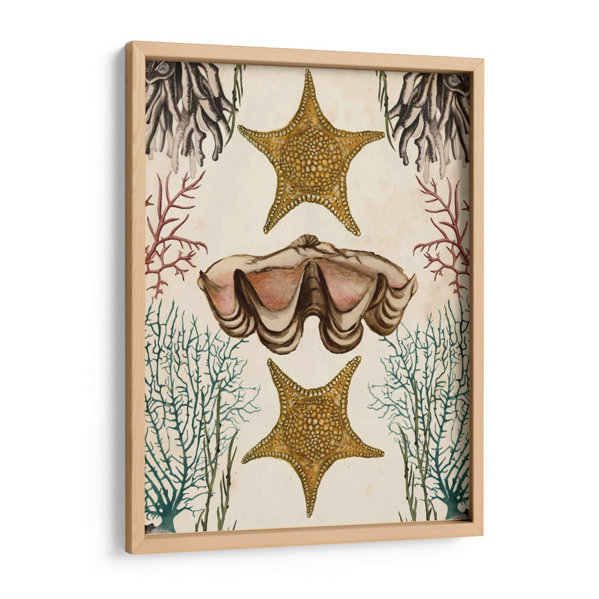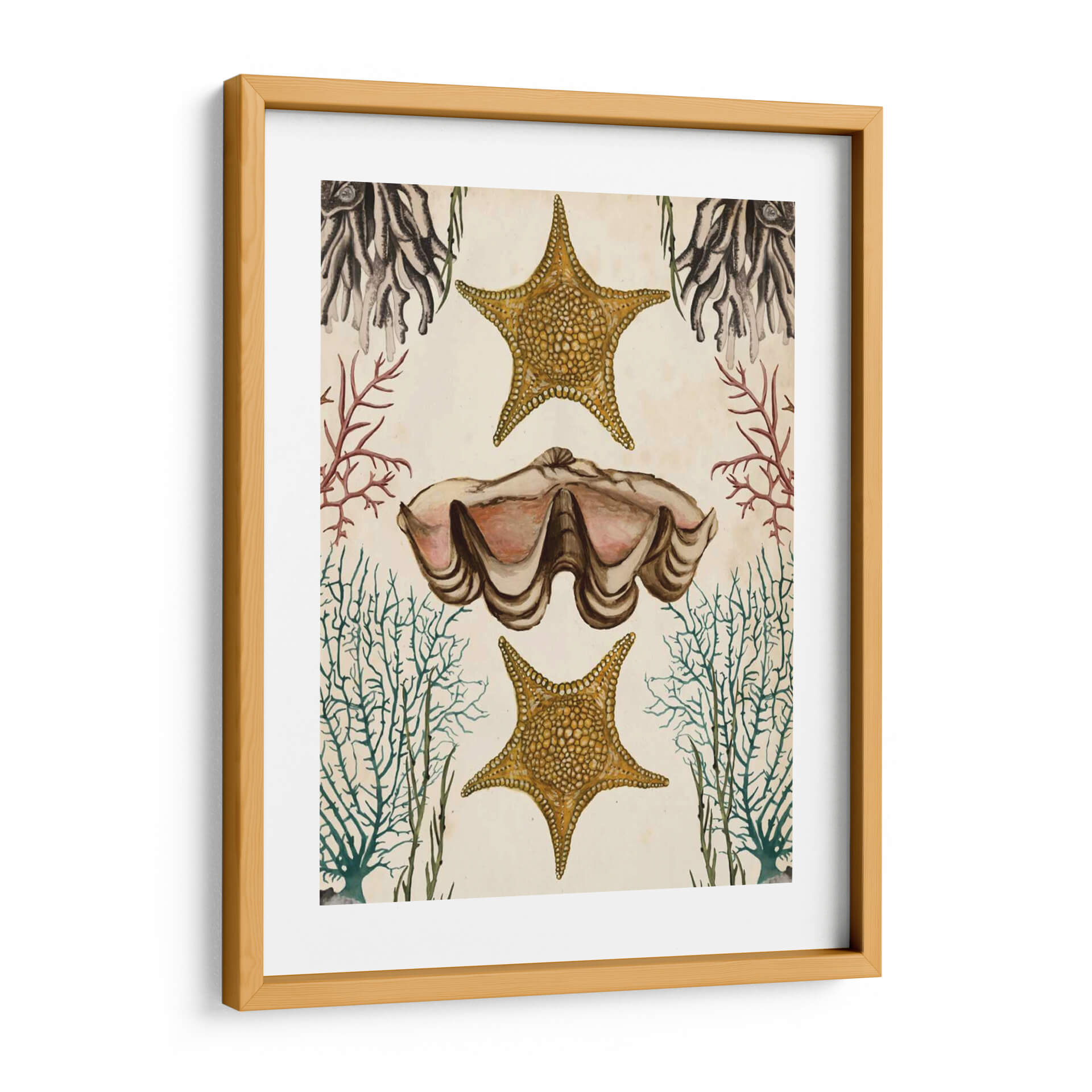 Sumérgete en la fascinación del océano con el cuadro decorativo "Menagerie Anticuario - Estrella De Mar" de Naomi McCavitt. Esta cautivadora obra evoca la belleza intrincada de la vida marina, presentando dos estrellas de mar amarillas vibrantes que flanquean una majestuosa ostra perlada en el centro. El detallado trabajo de acuarela y el estilo que recuerda a ilustraciones científicas antiguas otorgan a esta pieza un aire de sofisticación y descubrimiento. Rodeada de delicados corales en tonos rojizos y azules verdosos, y unas formas orgánicas oscuras en los extremos, la composición crea un microcosmos marino de gran belleza y serenidad. Los colores cálidos de las estrellas de mar y la ostra contrastan sutilmente con los tonos más fríos y terrosos del fondo y los corales, creando una armonía visual equilibrada. "Menagerie Anticuario" es ideal para añadir un toque de encanto natural y elegancia a cualquier espacio, ya sea una sala de estar costera, un estudio tranquilo o un dormitorio inspirado en el mar. Su diseño detallado y la atmósfera contemplativa invitan a la reflexión y a la apreciación de la naturaleza en su estado más puro. Este cuadro decorativo es una pieza única para coleccionistas y amantes del arte que buscan infundir sus hogares con la serenidad y la maravilla del mundo submarino, transformando cualquier pared en una ventana a la inmensidad azul.