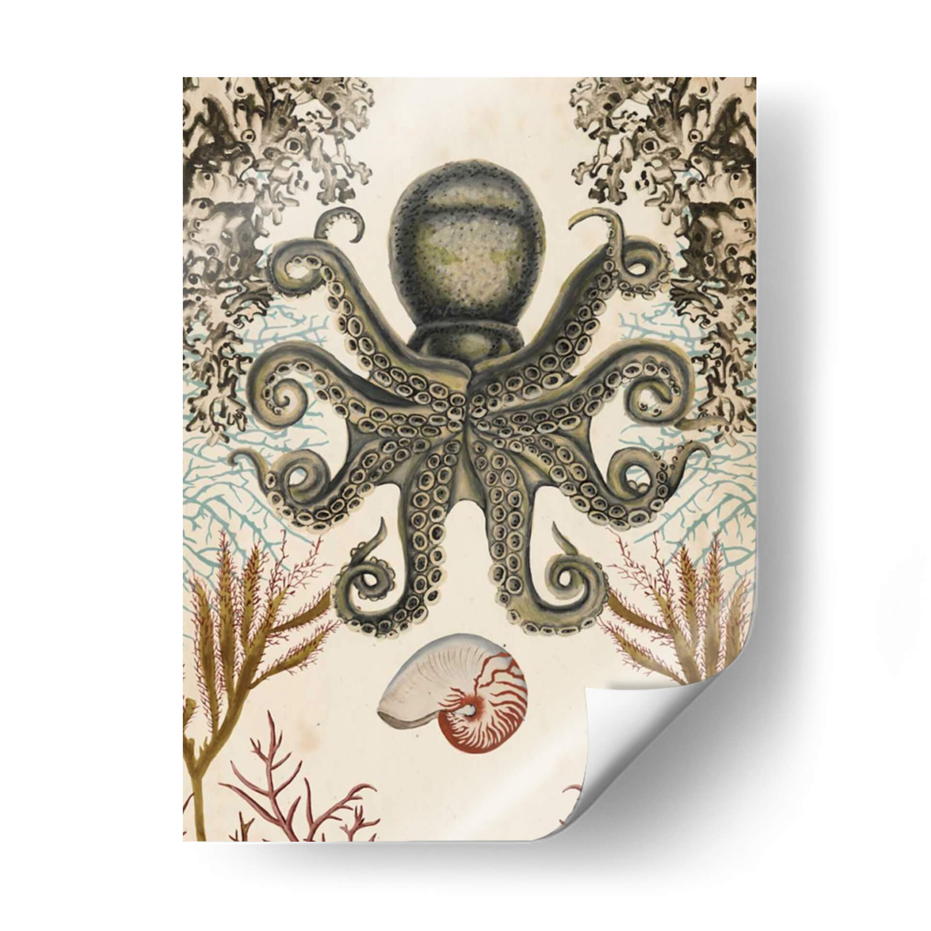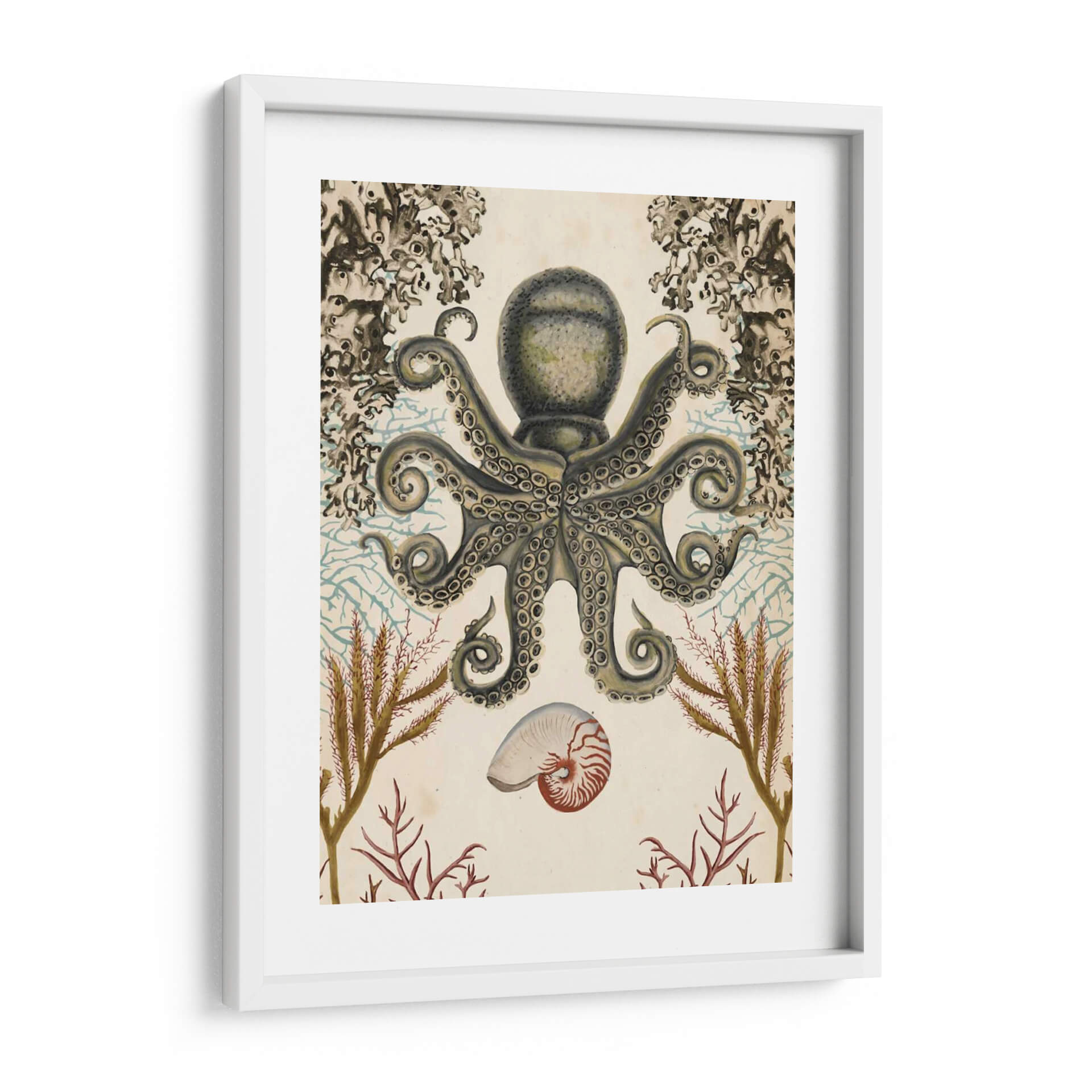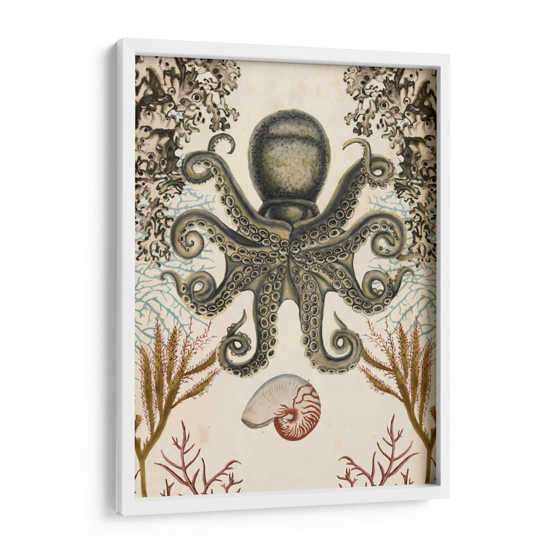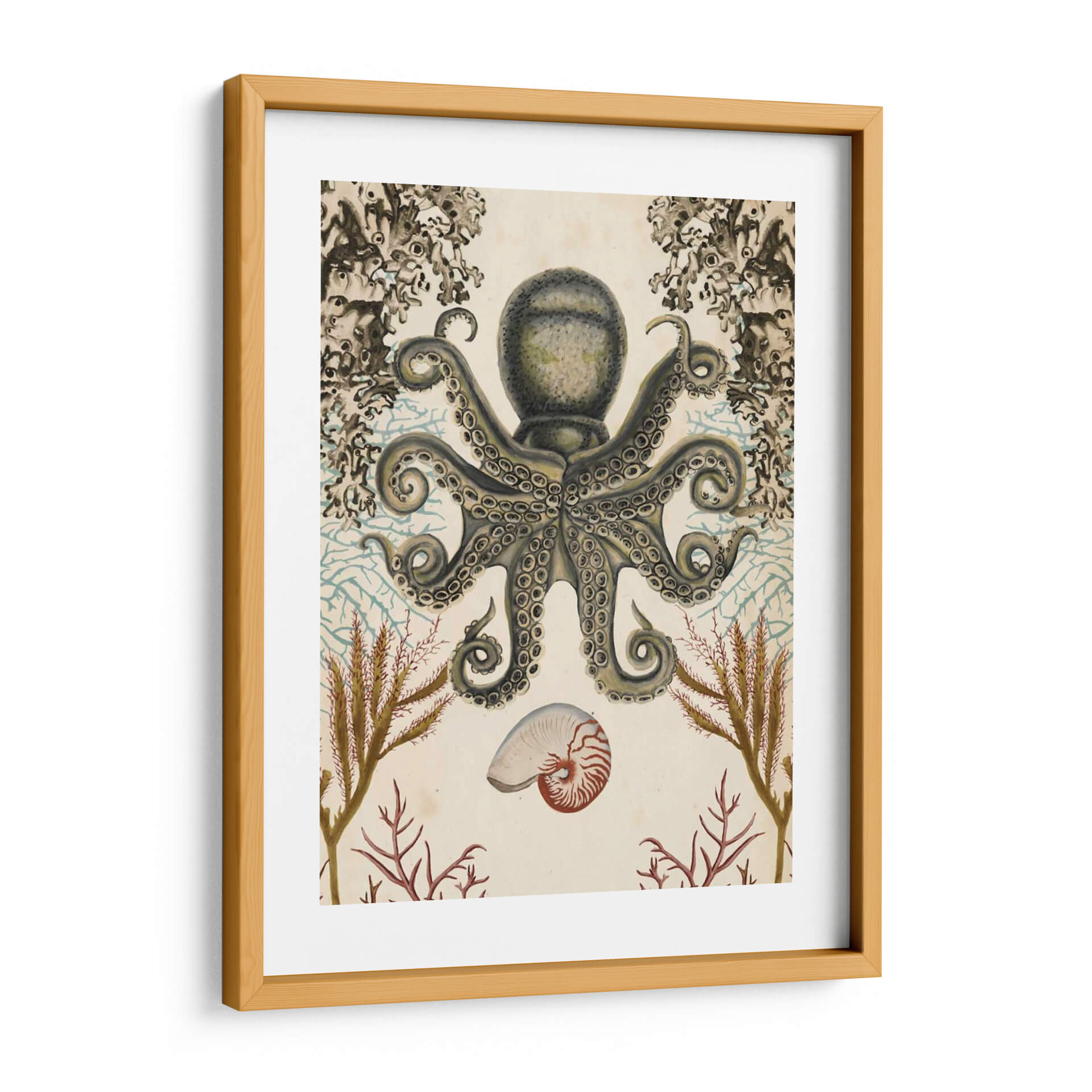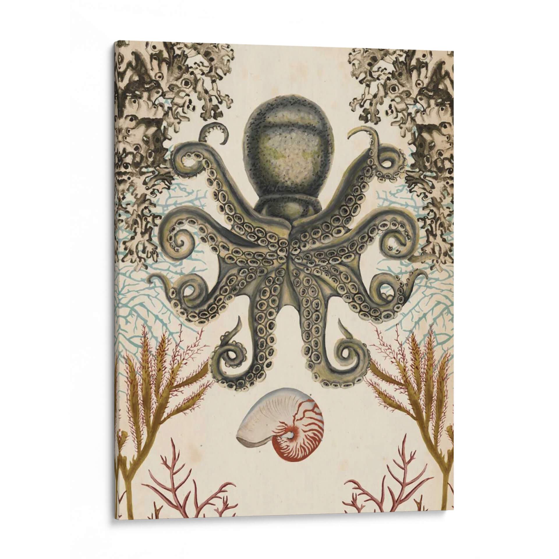 Sumérgete en las profundidades del océano con este cautivador cuadro decorativo que presenta un majestuoso pulpo como protagonista. La obra "Menagerie Anticuario - Octopus" de Naomi McCavitt evoca una sensación de misterio y asombro, transportándote a un mundo marino lleno de vida y texturas fascinantes. Los tentáculos detallados del pulpo se extienden con gracia, rodeados por un intrincado fondo que simula corales y algas marinas en tonos tierra, ocres y sutiles toques de azul pálido y rojo. La composición, inspirada en ilustraciones científicas vintage, combina un realismo detallado con un toque artístico único, creando una pieza que es a la vez educativa y estéticamente atractiva. El nautilus en primer plano añade un elemento de simetría y elegancia natural. Este cuadro decorativo es ideal para añadir un toque de carácter y sofisticación a cualquier estancia, desde una sala de estar moderna hasta un estudio o una habitación temática marina. Su paleta de colores neutros y terrosos facilita su integración en diversas decoraciones, mientras que la temática del océano aporta una atmósfera de calma y exploración. Transforma tu espacio con esta obra maestra que celebra la belleza del mundo submarino y el detallado arte de Naomi McCavitt, un verdadero tesoro para los amantes del arte y la naturaleza.