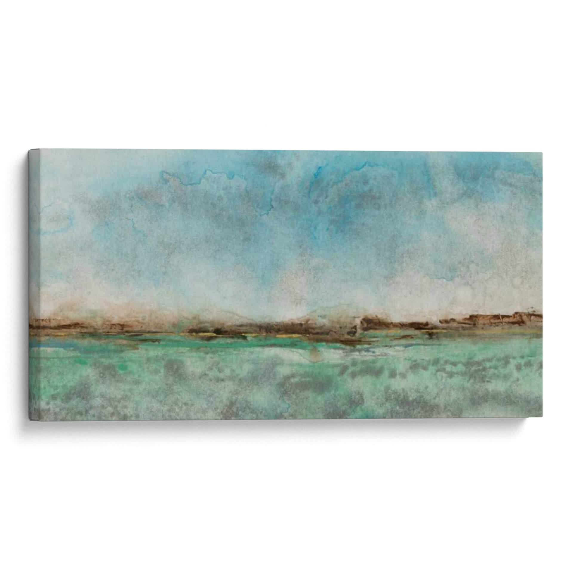 Sumérgete en la serena belleza de "Millas De Ninguna Casa Ii", una obra de arte contemporáneo que evoca la vastedad y la tranquilidad de un paisaje abstracto. Este cuadro decorativo captura la esencia de un horizonte distante, donde tonos celestes y acuáticos se funden con texturas terrosas y ocres. La paleta de colores, dominada por azules y verdes suaves con toques de marrón y gris, crea una atmósfera de calma y contemplación, invitando a la reflexión y al descanso visual. La técnica empleada, que recuerda a la acuarela con sus sutiles gradaciones y manchas, aporta una cualidad etérea y onírica a la composición. Es una pieza versátil, ideal para espacios que buscan un toque de sofisticación y serenidad, como salones, dormitorios o estudios. "Millas De Ninguna Casa Ii" no es solo una decoración, es una invitación a encontrar la paz en la abstracción, un portal a paisajes interiores que resuenan con la calma del horizonte, añadiendo profundidad y carácter a tu hogar u oficina. Su estilo abstracto moderno lo convierte en un punto focal cautivador para cualquier ambiente contemporáneo.