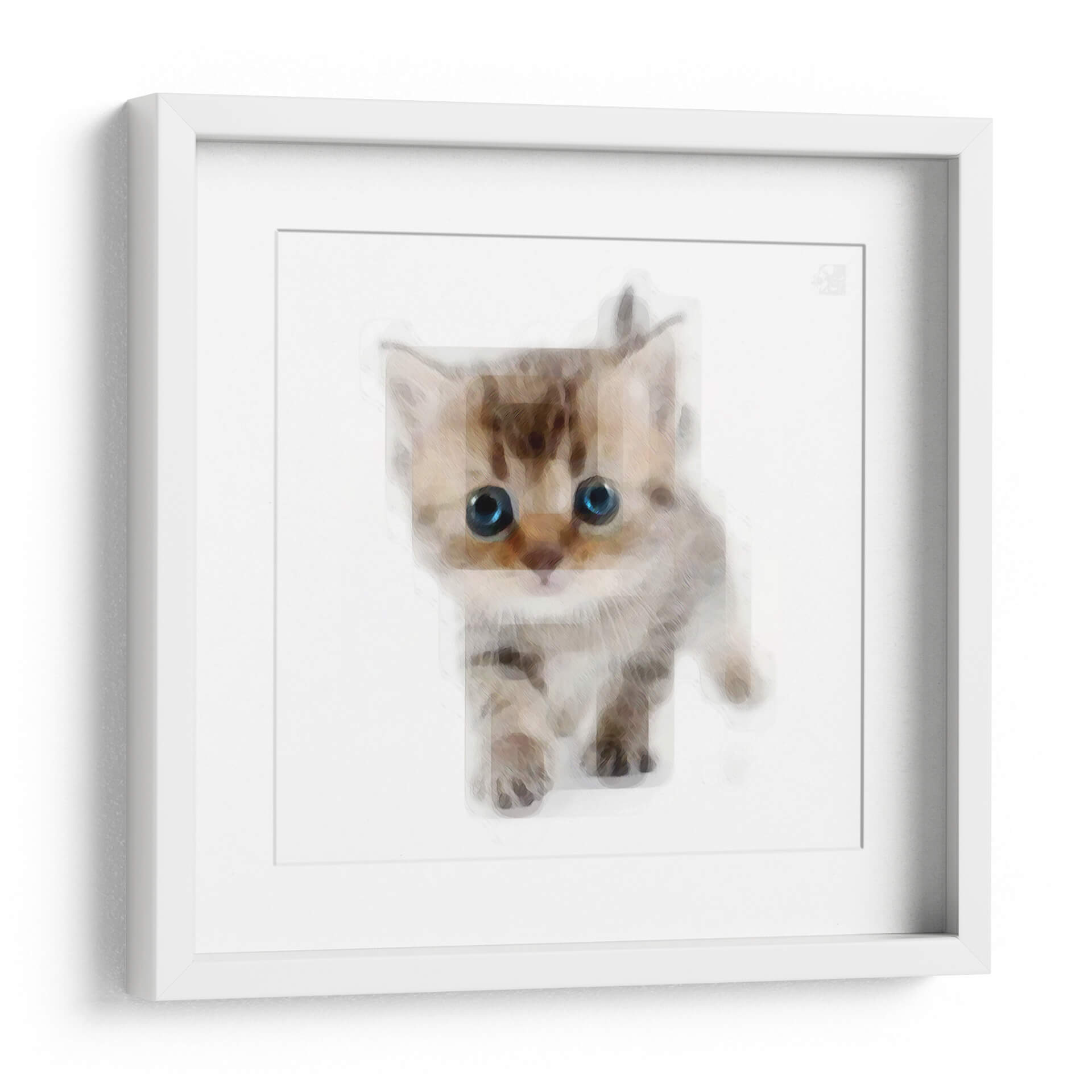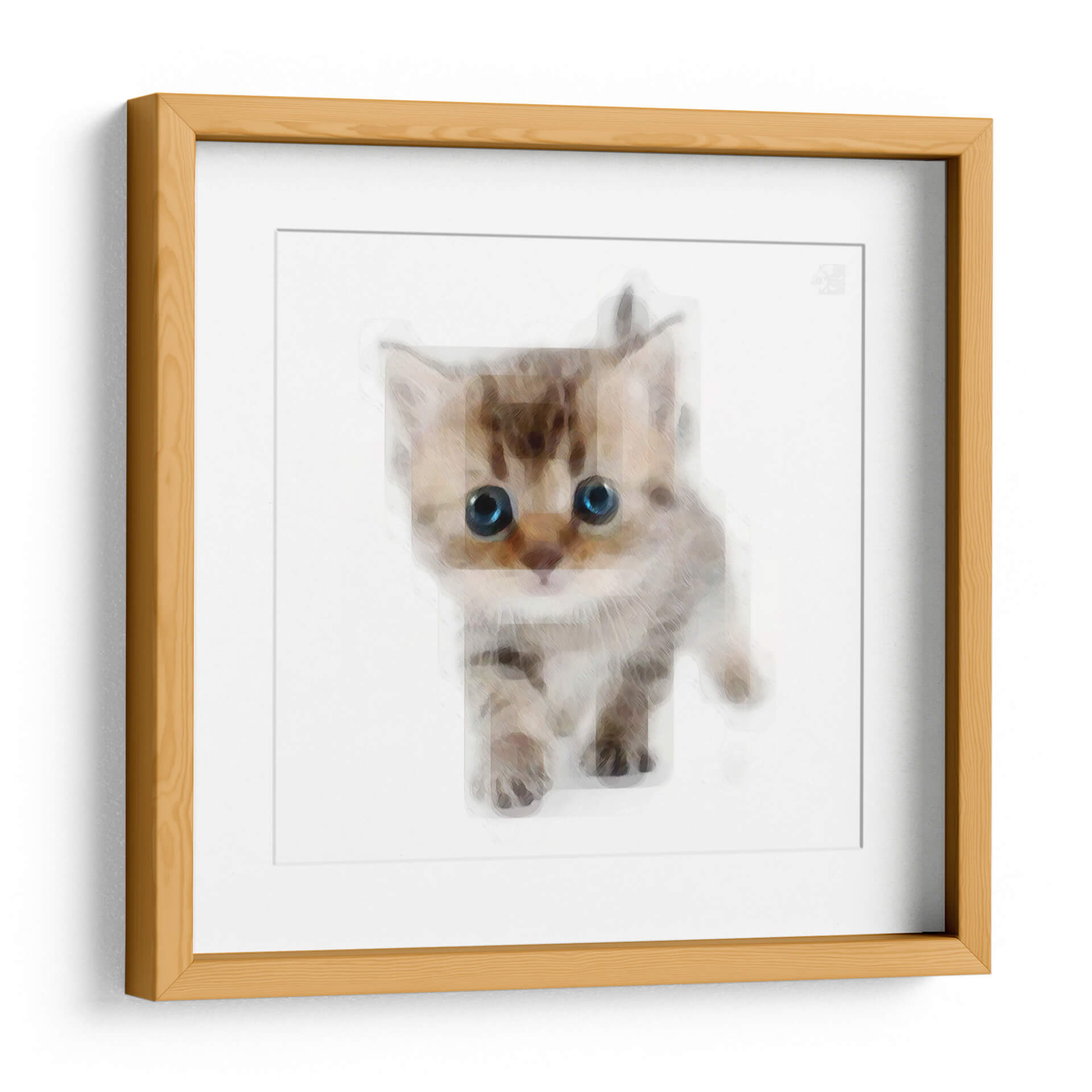 Captura la ternura y la inocencia con este encantador cuadro decorativo de un gatito. La obra, titulada 'Mini4' y creada por Imaghinario, presenta a un adorable felino con unos impactantes ojos azules que parecen hipnotizar al espectador. El estilo pictórico, con pinceladas que recuerdan a la acuarela o al óleo, aporta una suavidad etérea a la imagen, haciendo que el gatito parezca casi flotar sobre el fondo blanco y minimalista. La paleta de colores se centra en tonos cálidos y naturales, como beiges, marrones y grises, que resaltan la textura del pelaje y los penetrantes ojos azules. La composición es sencilla pero efectiva, centrando la atención en el rostro del gatito y su adorable expresión. Este cuadro es perfecto para añadir un toque de dulzura y alegría a cualquier habitación, ya sea una sala de estar, un dormitorio infantil o incluso una oficina. Su temática universalmente querida lo convierte en una opción ideal para amantes de los animales y para quienes buscan una pieza de arte que transmita calma y felicidad. 'Mini4' es más que una simple decoración; es una ventana a la pureza y la maravilla de la infancia felina, un recordatorio tierno que embellecerá tu hogar.