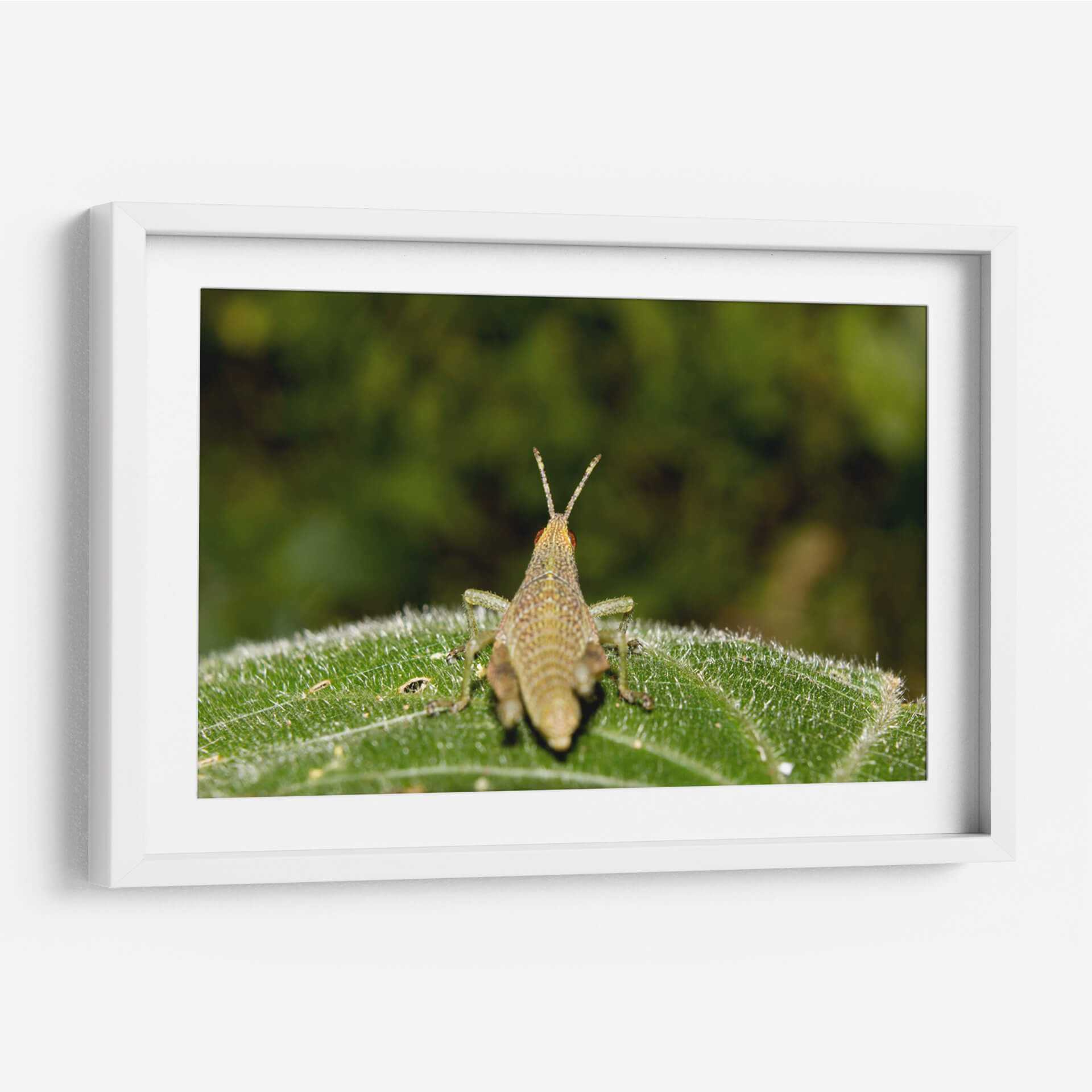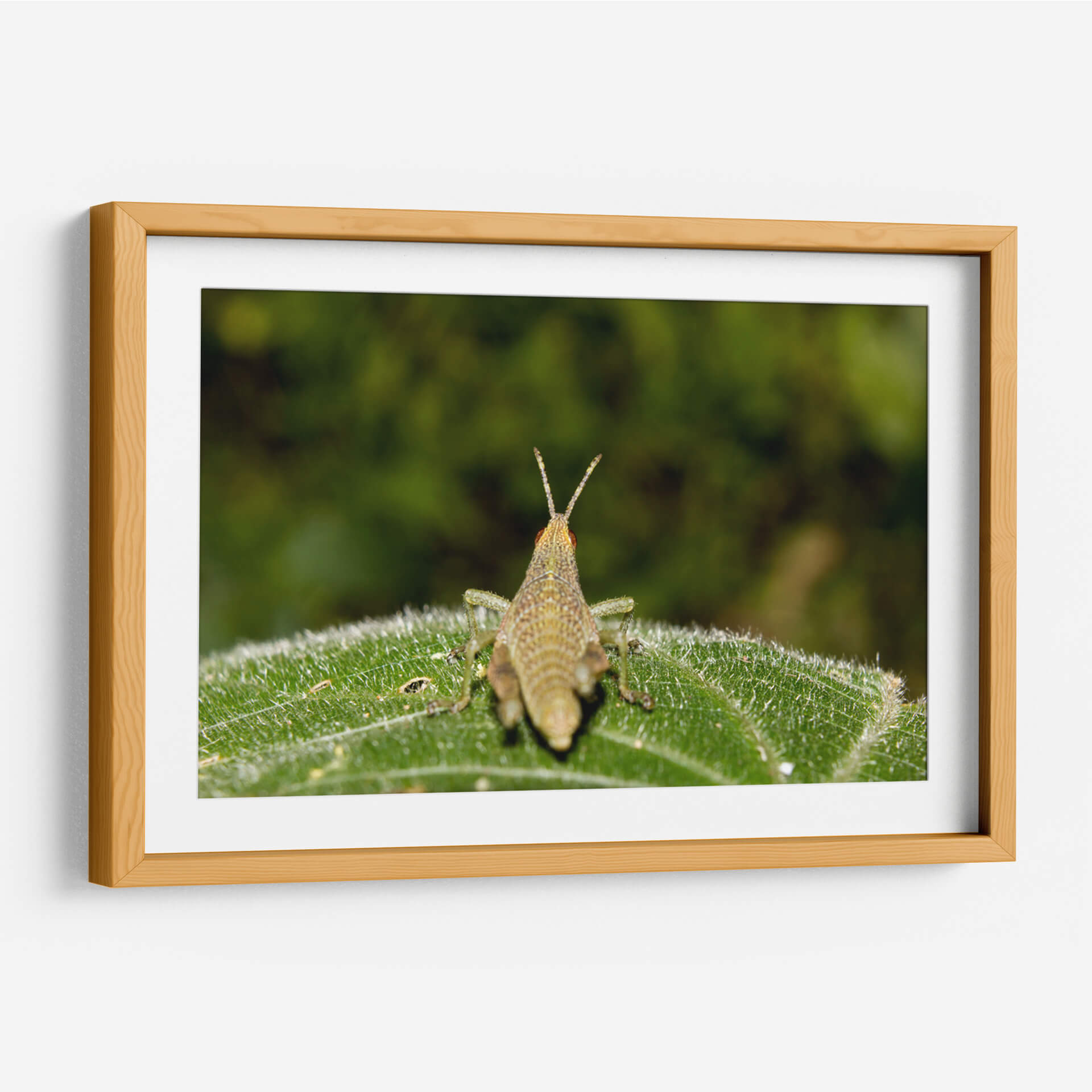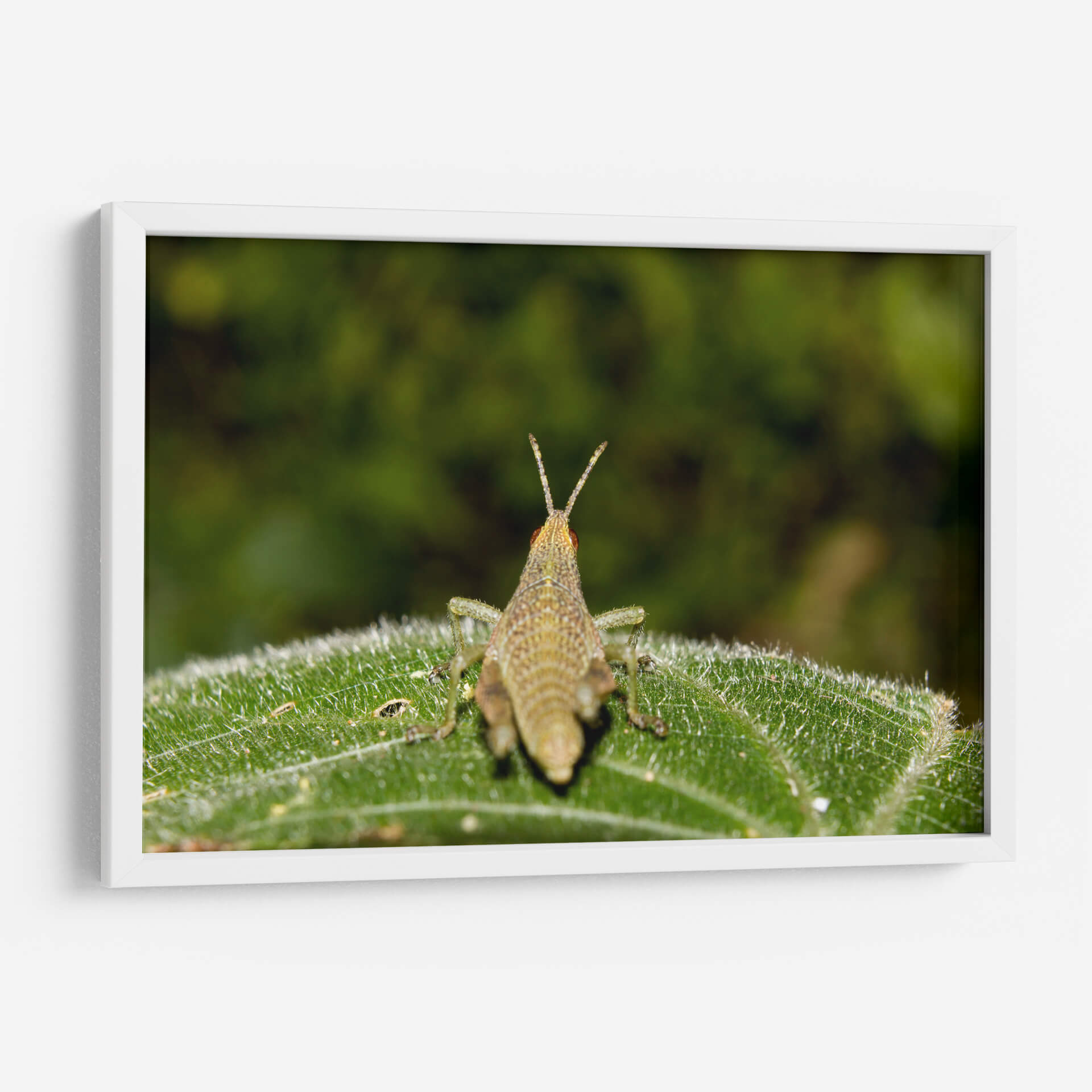 Sumérgete en el fascinante mundo de la naturaleza con este cuadro decorativo 'Minimundus07' del artista Jiván. La obra captura la esencia de la vida en miniatura, presentando un primer plano detallado de un saltamontes posado sobre una hoja verde vibrante. Los verdes profundos y texturizados del fondo crean una atmósfera serena y natural, mientras que la hoja, con sus finos vellos y venas marcadas, aporta una sensación de realismo y delicadeza. El protagonista, el saltamontes, exhibe una paleta de tonos tierra y ocres, con detalles intrincados en su exoesqueleto y sus distintivos ojos rojos que parecen mirar directamente al espectador, añadiendo un toque de vida y curiosidad a la composición. Este cuadro es una invitación a apreciar la belleza oculta en los pequeños detalles del entorno natural. Su estilo realista y macro fotográfico lo convierte en una pieza ideal para añadir un toque de frescura y vitalidad a cualquier espacio, desde una sala de estar moderna hasta un estudio o dormitorio que busque inspiración en la tranquilidad del campo. 'Minimundus07' no es solo una imagen, es una ventana a un universo detallado, un recordatorio de la complejidad y la maravilla que nos rodea.