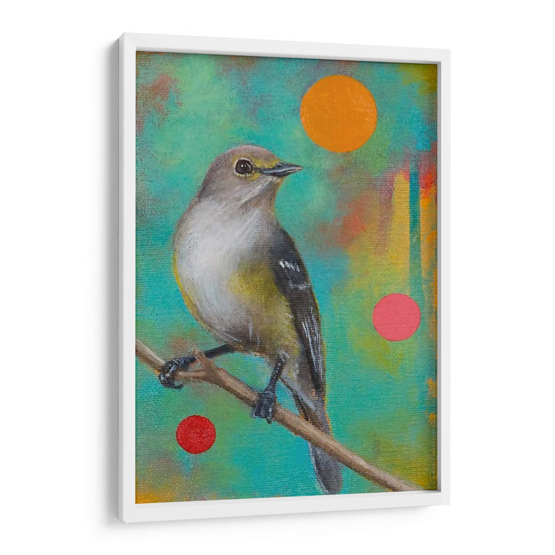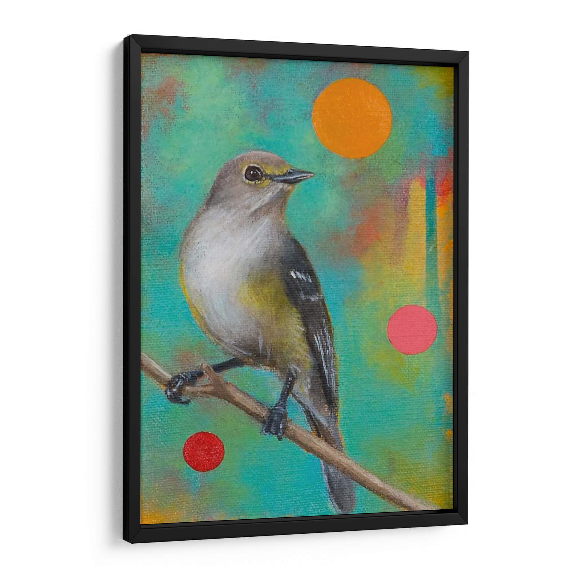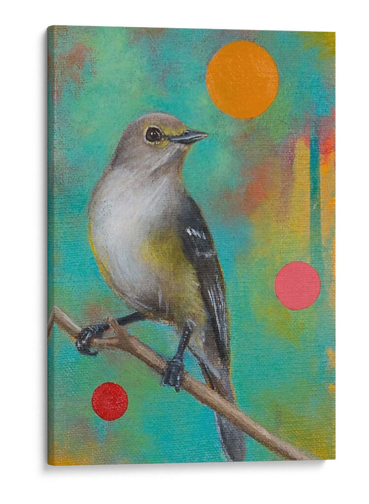 Sumérgete en la enigmática belleza de "Misterios Del Universo Xiii", una cautivadora obra de arte que captura la esencia de la naturaleza con un toque contemporáneo. Esta pieza presenta un delicado pájaro posado en una rama, con una mirada inquisitiva que invita a la contemplación. El fondo vibrante, salpicado de formas circulares en tonos naranjas y rosados sobre un lienzo turquesa, crea un contraste dinámico y moderno. La artista Bridget G. Evans utiliza una paleta de colores que combina tonos tierra y verdes exuberantes con toques audaces, generando una atmósfera de curiosidad y asombro. El estilo, que fusiona elementos realistas con abstracción, hace que este cuadro decorativo sea una adición fascinante para cualquier espacio. Ideal para quienes buscan infundir vitalidad y un sentido de exploración en su hogar u oficina, este cuadro es perfecto para salas de estar, dormitorios o estudios, añadiendo un punto focal de interés visual y un diálogo con los elementos cósmicos sugeridos por su título. Añade un toque de arte contemporáneo y misterio a tu decoración.