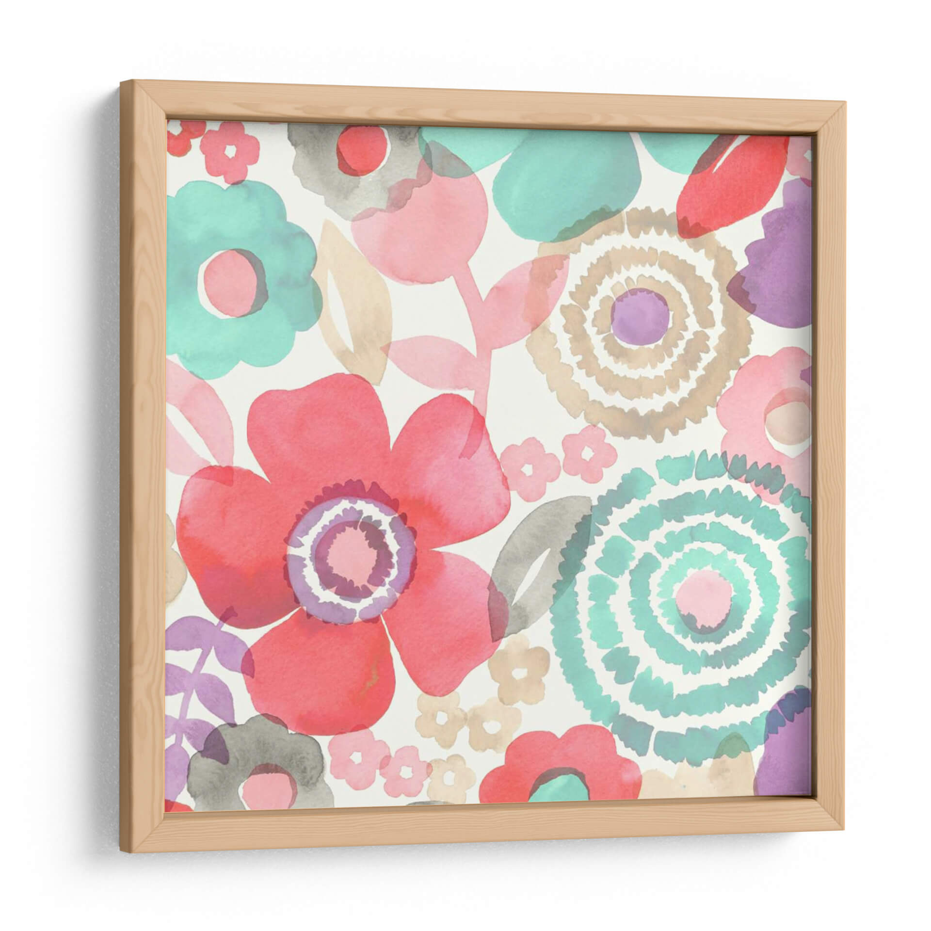 Sumérgete en la frescura vibrante de "Ocean Shores Floral II", una obra de arte contemporáneo que captura la esencia de un jardín exuberante con un toque moderno. La pieza presenta una composición audaz y orgánica, dominada por flores estilizadas y hojas en acuarela, donde pinceladas sueltas y translúcidas crean una sensación de movimiento y ligereza. La paleta de colores, que combina intensos rosas y corales con serenos turquesas, púrpuras delicados y toques neutros de gris y beige, evoca una atmósfera alegre y a la vez relajante. Cada flor, con sus contornos suaves y centros detallados, parece emerger del fondo con una vitalidad propia, invitando a la contemplación. Este cuadro decorativo es perfecto para infundir vida y color en cualquier espacio, desde una sala de estar moderna hasta un dormitorio acogedor o una oficina luminosa. "Ocean Shores Floral II" no es solo una decoración de pared, sino una ventana a un oasis floral que trae la belleza de la naturaleza al interior con un estilo artístico único. Su diseño dinámico y su armoniosa combinación de colores lo convierten en una pieza focal atractiva que complementa diversos estilos decorativos, aportando un aire de sofisticación y vitalidad.